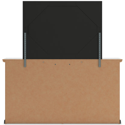 Clean, simple and beautiful. The Maribel dresser and mirror is a reflection of understated elegance. This easy-to-love look makes just the right statement, whether your taste leans toward classic or contemporary. Pewter-tone hardware is a pure pop of sophistication.