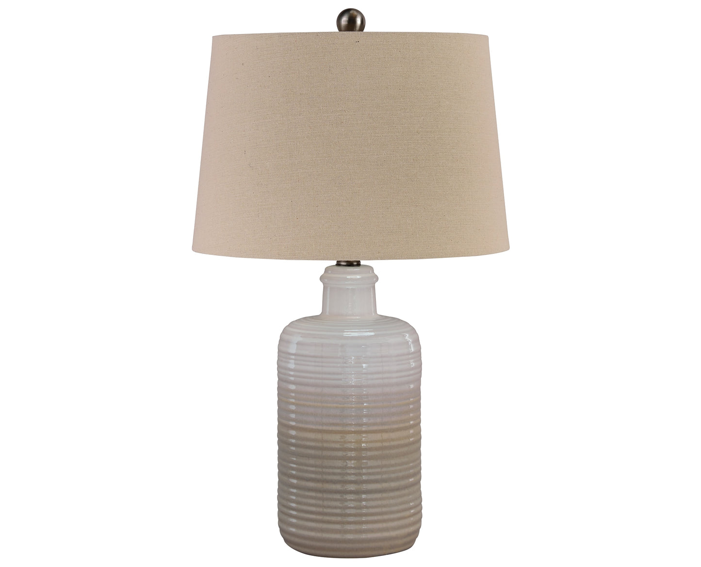 Wowing with shades of taupe and white, this table lamp lights up our world. The glazed, textural base encompasses casual-cool beauty beside any sofa or bed—what a well-rounded pair.