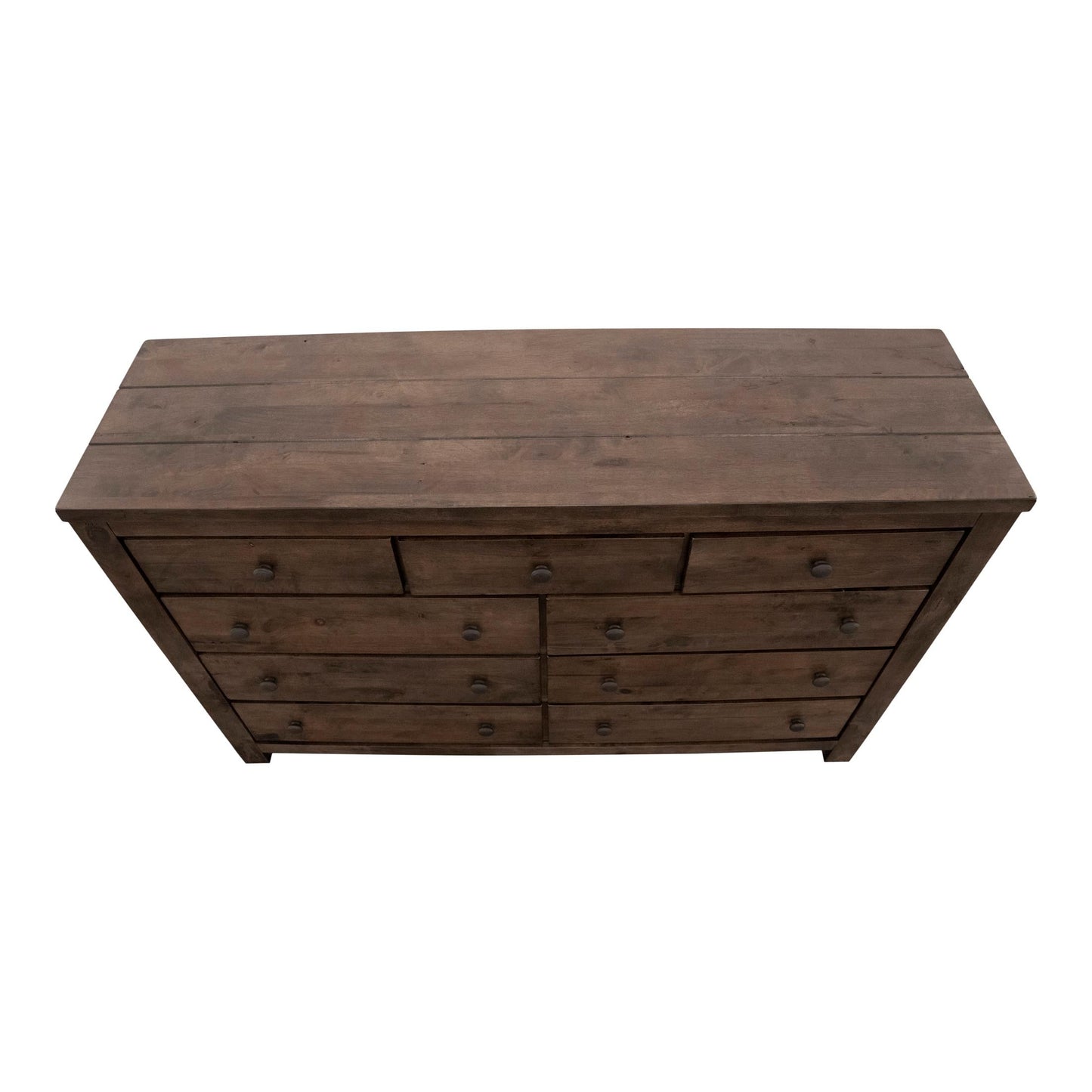 Clean and simple lines define this transitional bedroom 9 drawer dresser. The updated rustic grey finish on hardwood solids invoke a casual and cozy warmth.