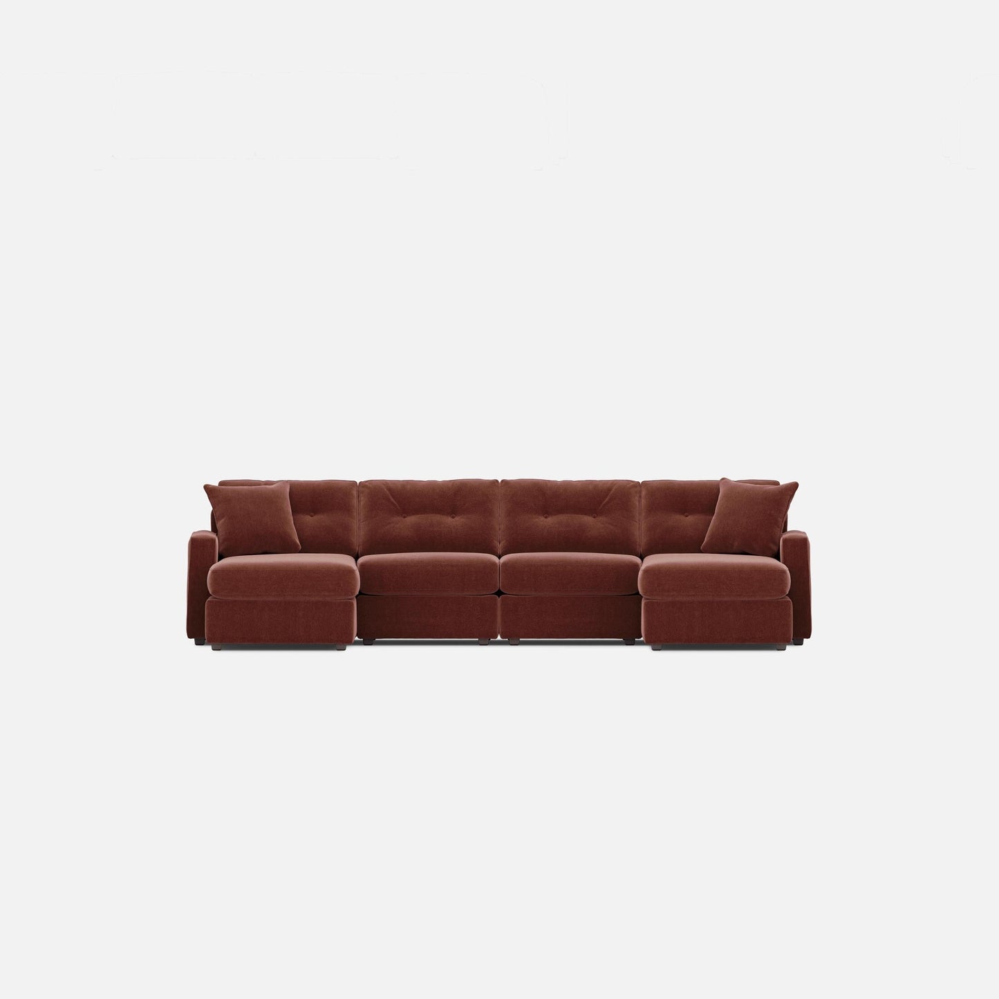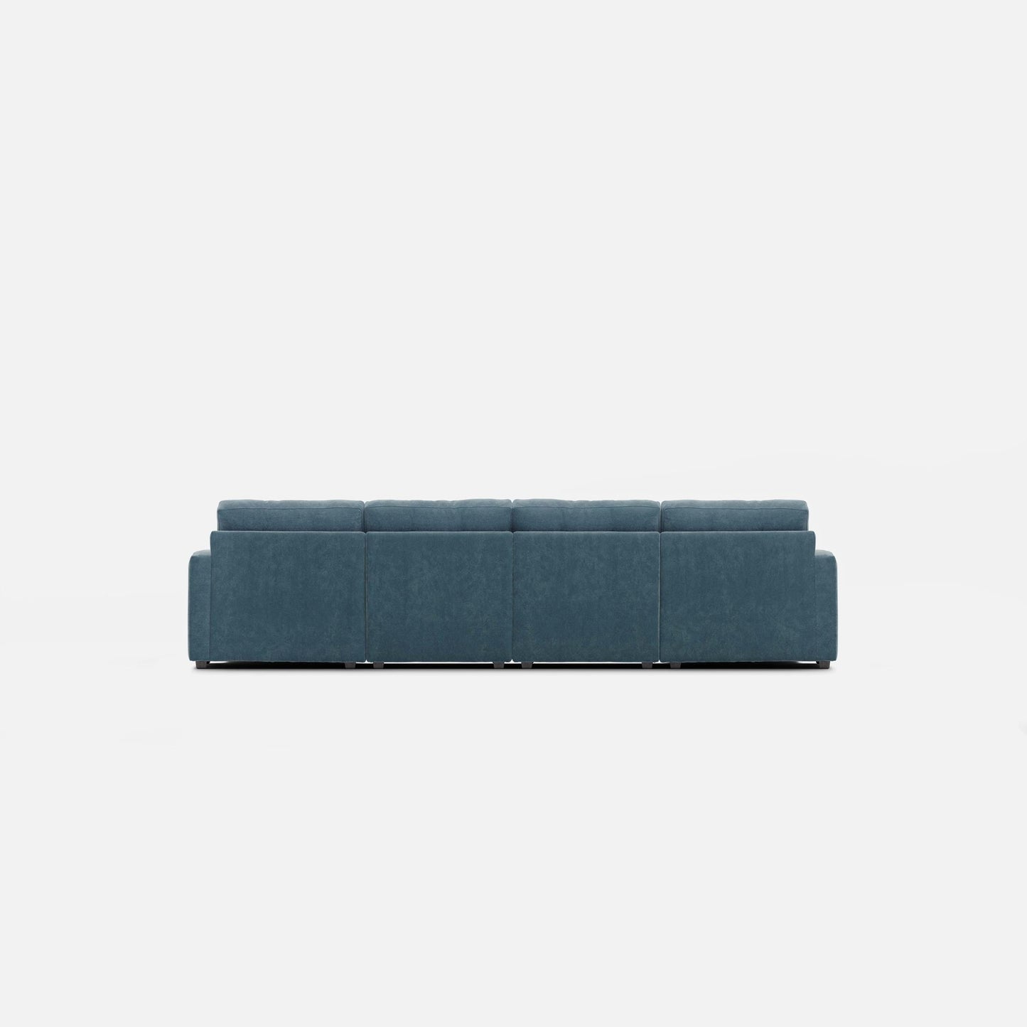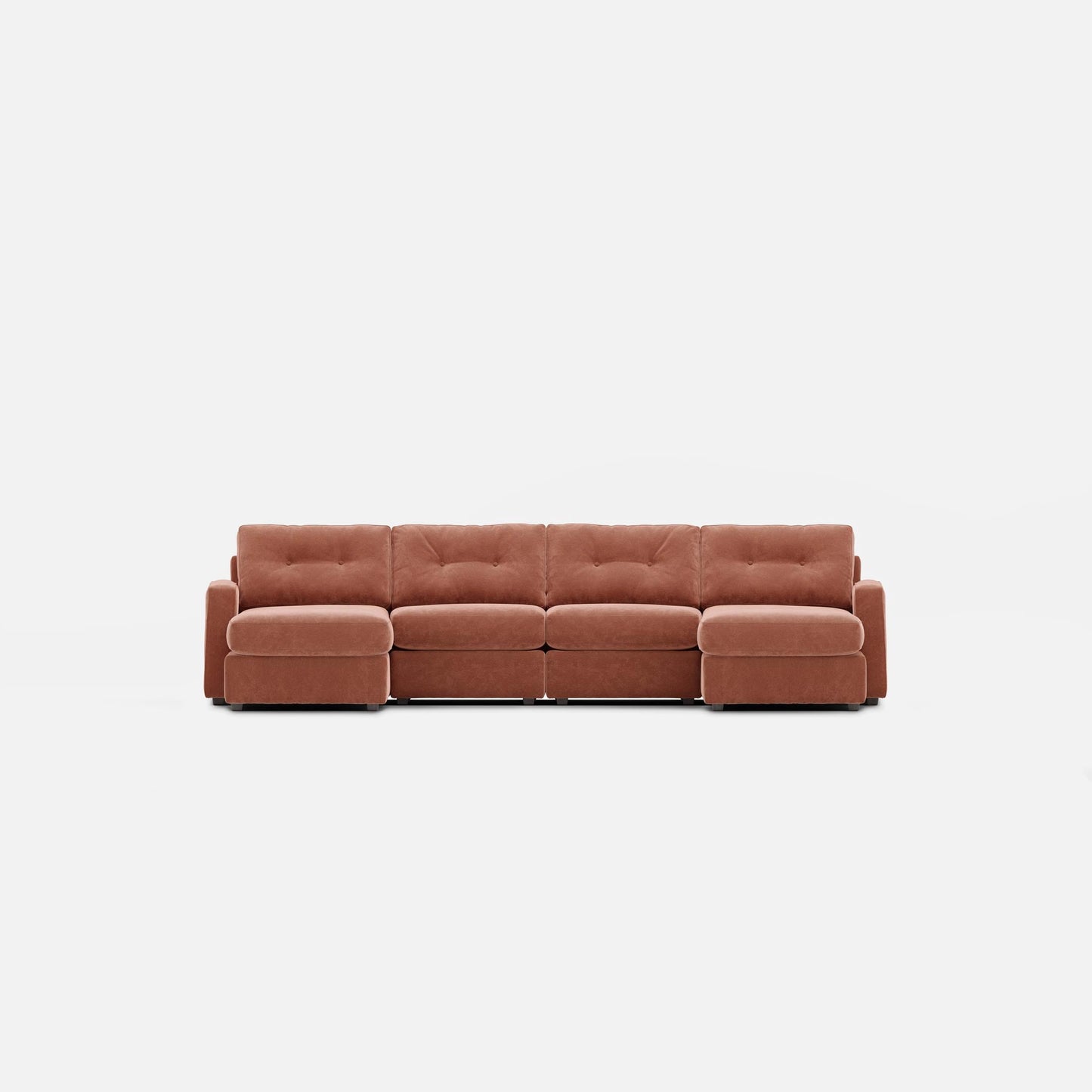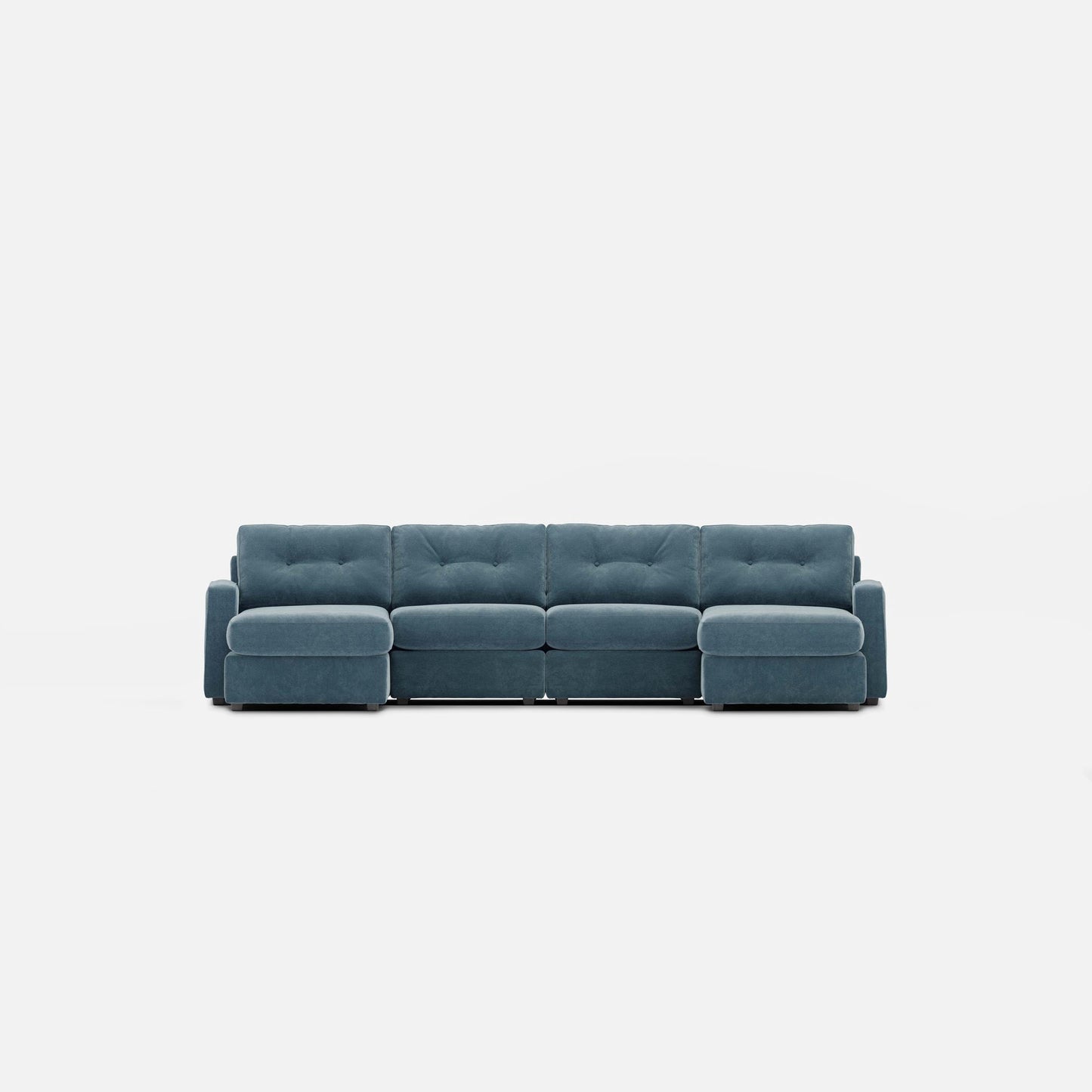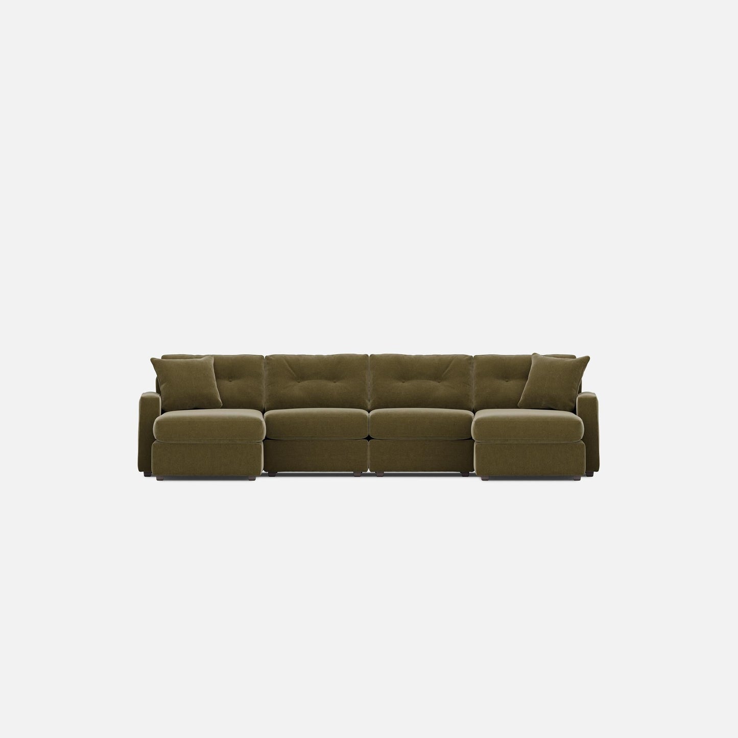 True modular designed with maximum versatility and functionality. A new modern basic, this tailored silhouette features welted track arms, top stitched seat cushions and button tufted backs. Soft environmentally conscious Repreve fabric that uses approximately 9 recycled plastic bottles for each yard of fabric. Build a version for any room requirement.