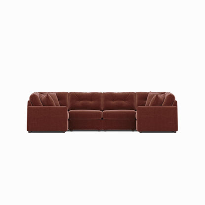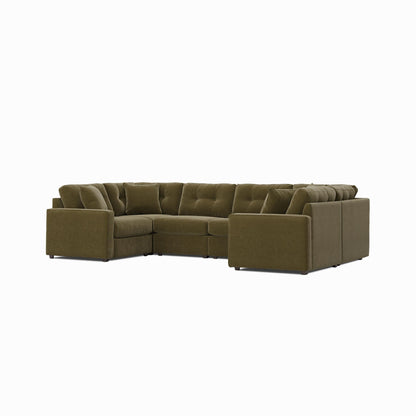True modular designed with maximum versatility and functionality. A new modern basic, this tailored silhouette features welted track arms, top stitched seat cushions and button tufted backs. Soft environmentally conscious Repreve fabric that uses approximately 9 recycled plastic bottles for each yard of fabric. Build a version for any room requirement.
