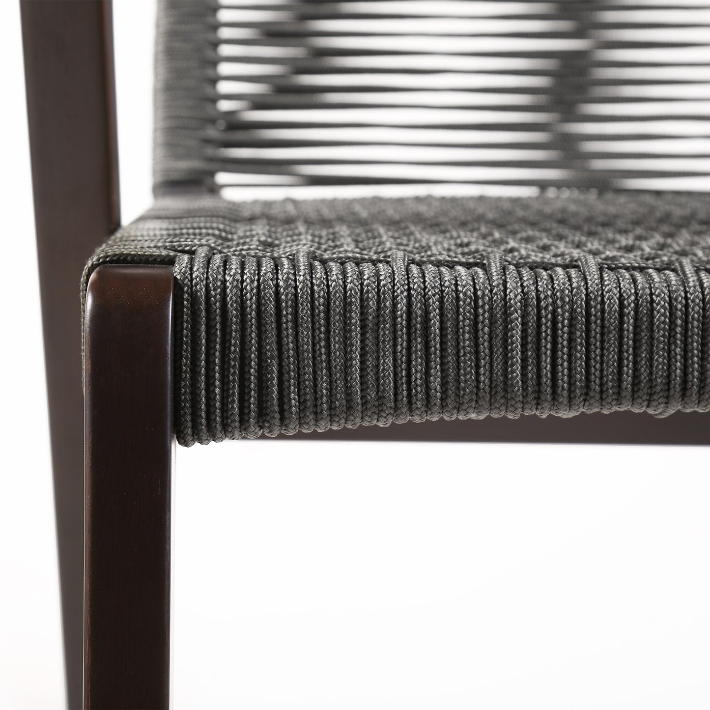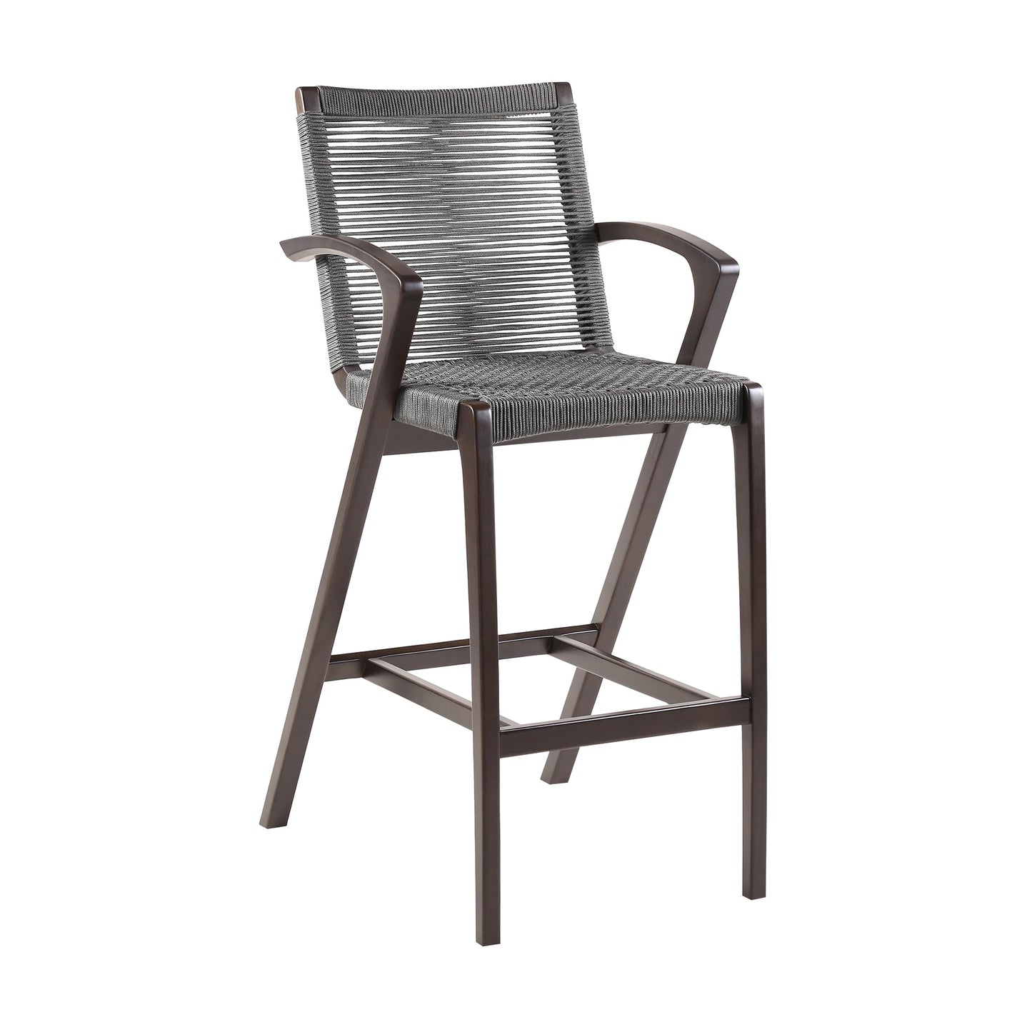 Nabila Outdoor Dark Eucalyptus Wood and Gray Rope Counter and Bar Height Stool