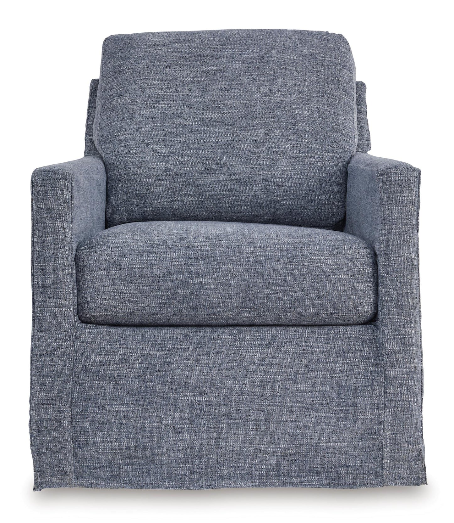 This swivel glider accent chair makes everyday lounging incredibly low-maintenance. Have a hectic home with kids or pets? Handle spillage and stains effortlessly with a machine-washable slipcover. Effortless clean-up. Simple, universal style. This chair delivers form and function all in one, keeping messes manageable so you don’t have to.