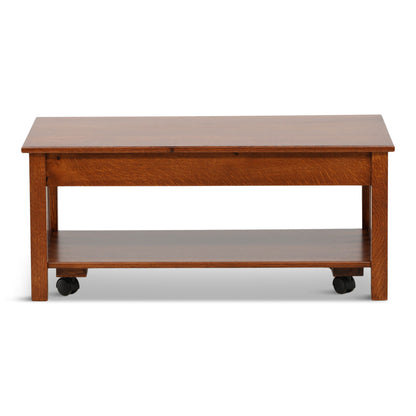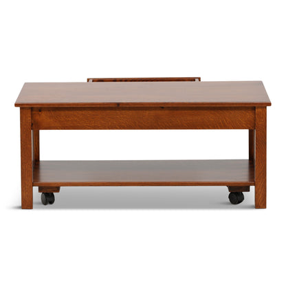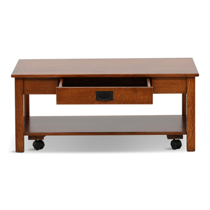 Cherry oak wood looks so good on the Oxford Mission coffee table. This table's design is sure to elevate the aesthetic of any room it is in. A fixed shelf provides display space for your favorite whatnots, while a drawer keeps essentials out of sight.