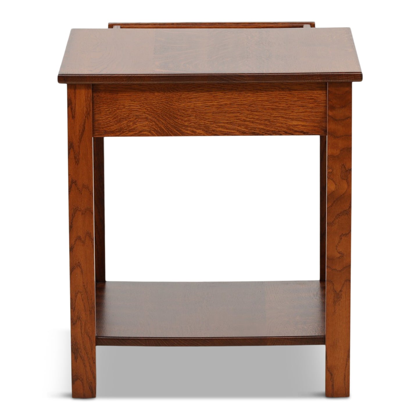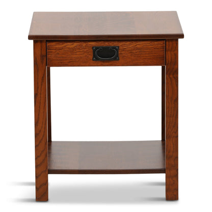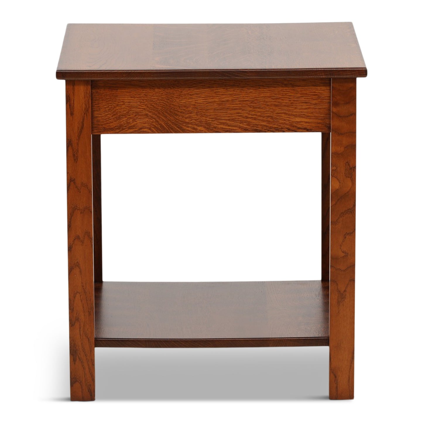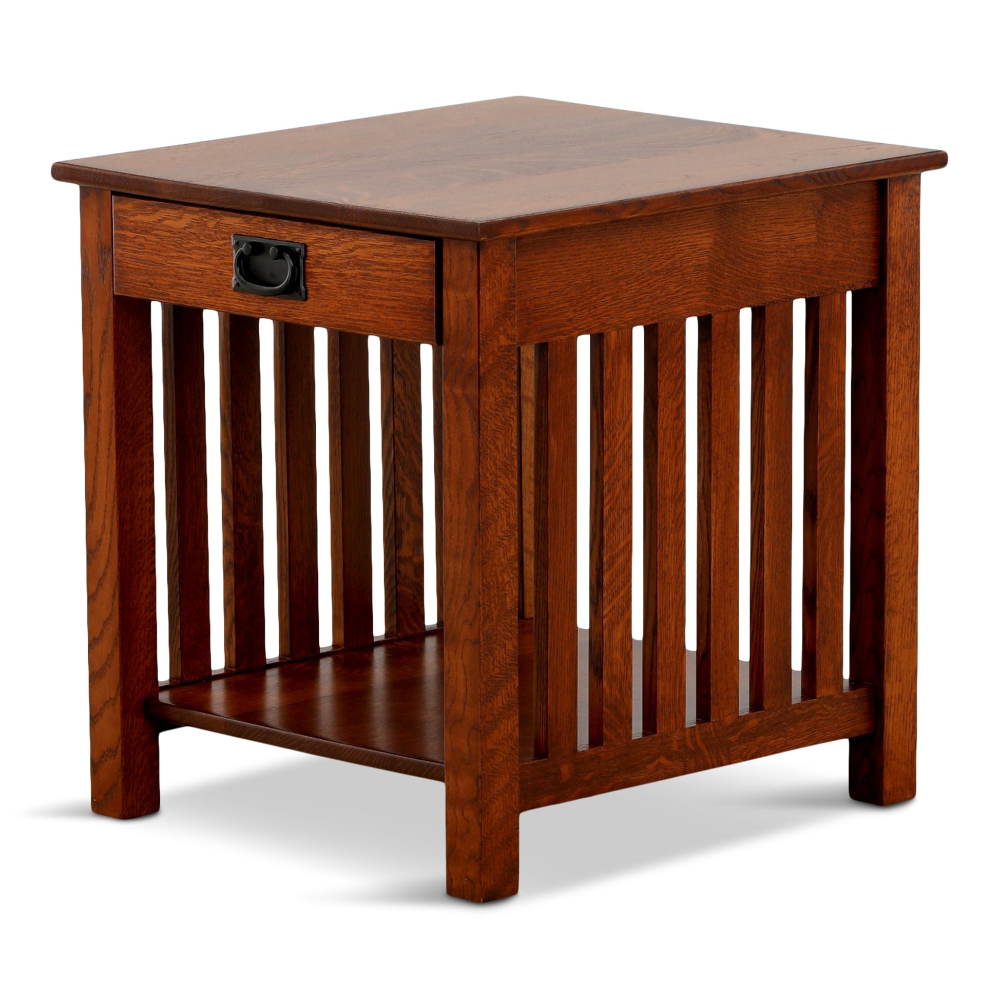 Cherry oak wood looks so good on the Oxford Mission end table. This table's design is sure to elevate the aesthetic of any room it is in. A fixed shelf provides display space for your favorite whatnots, while a drawer keeps essentials out of sight.
