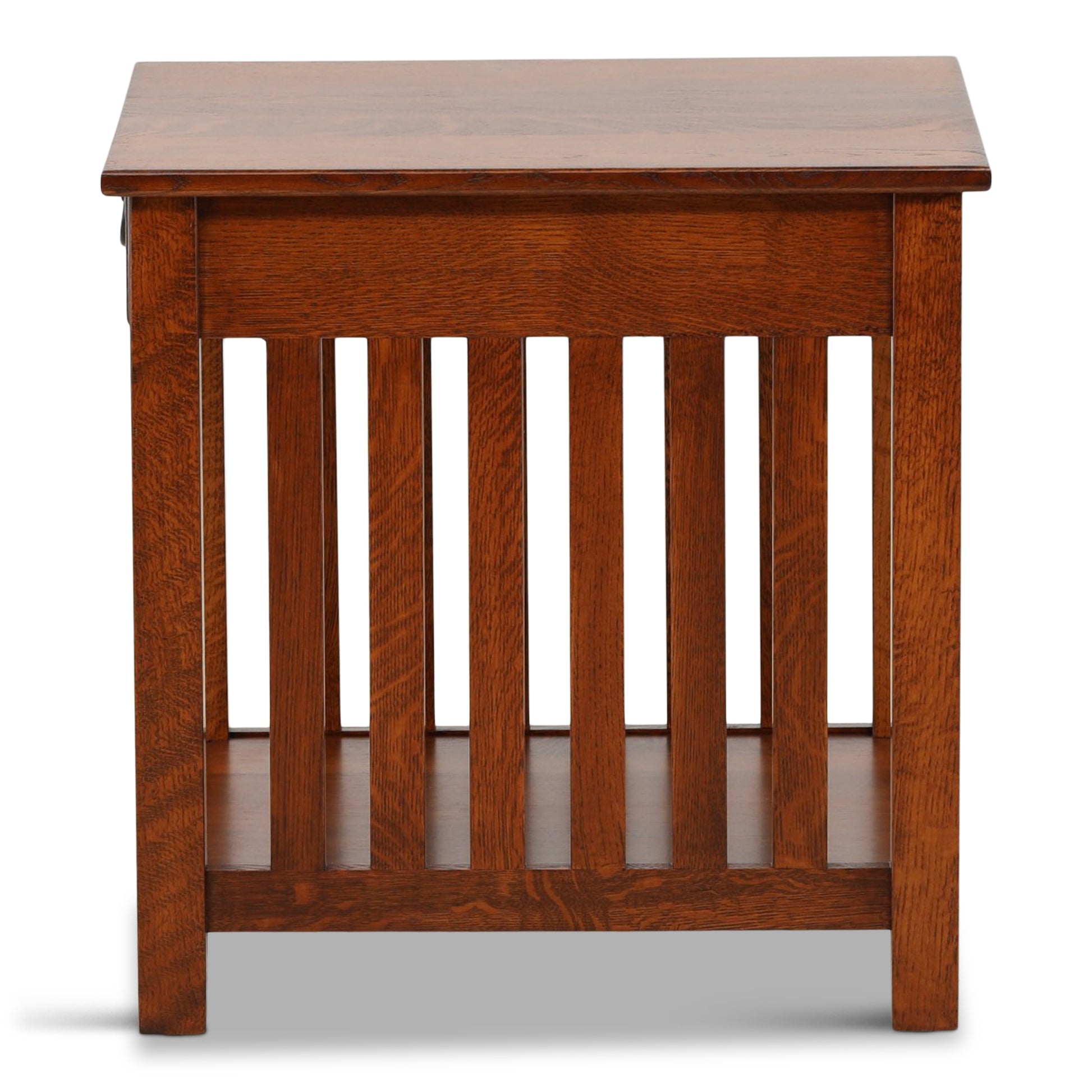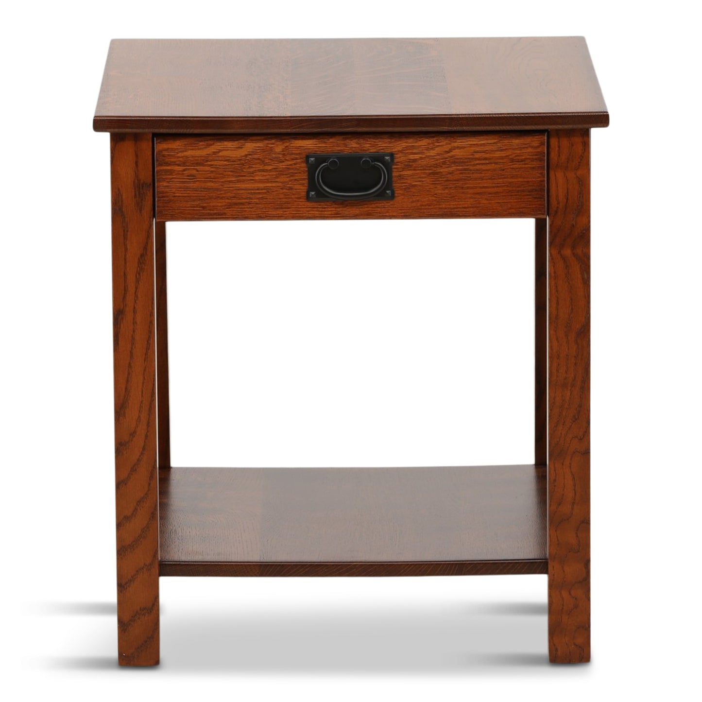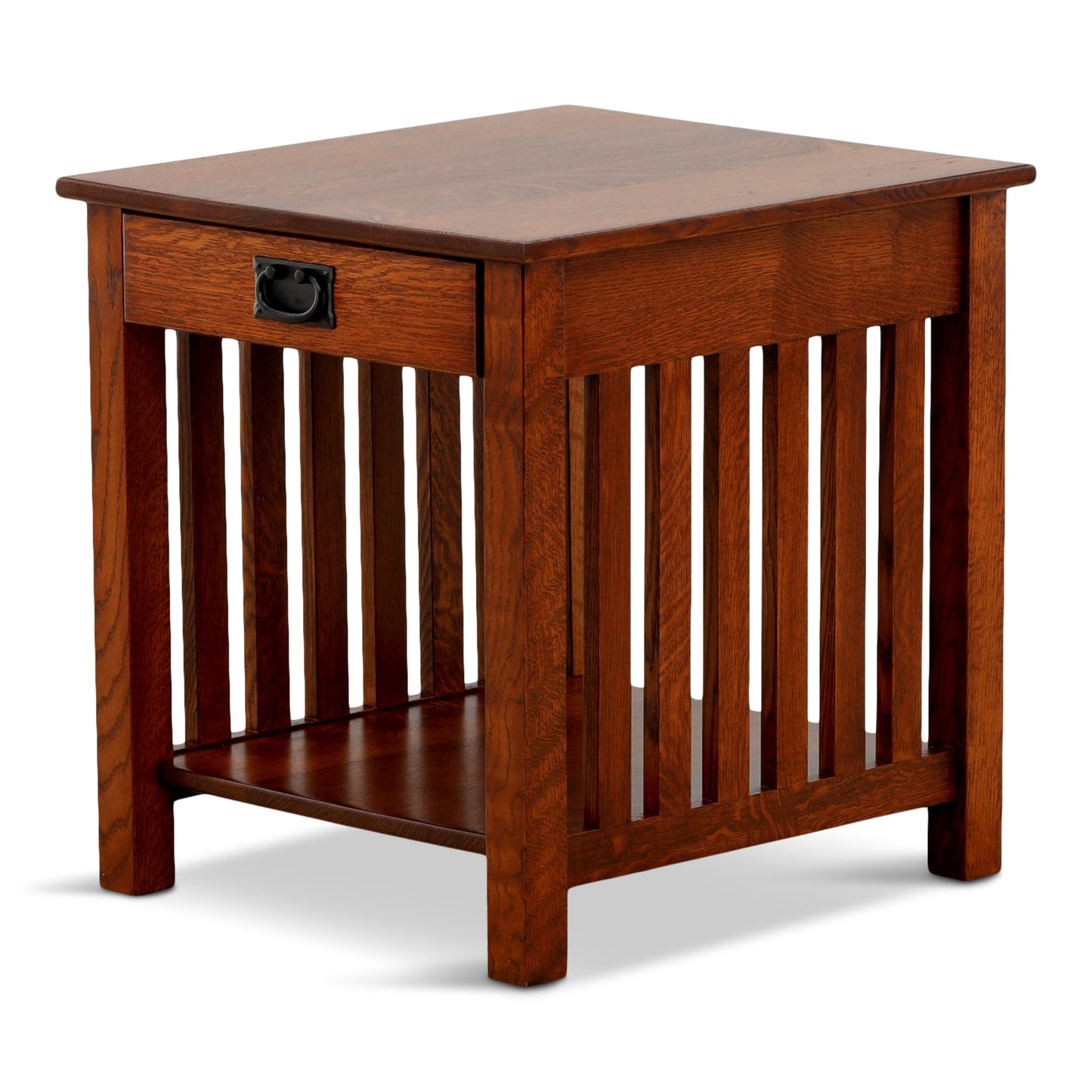 Cherry oak wood looks so good on the Oxford Mission end table. This table's design is sure to elevate the aesthetic of any room it is in. A fixed shelf provides display space for your favorite whatnots, while a drawer keeps essentials out of sight.