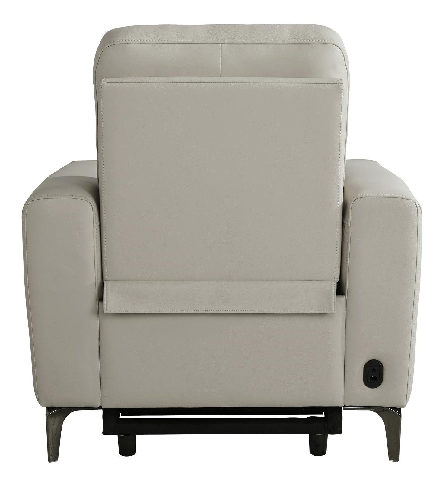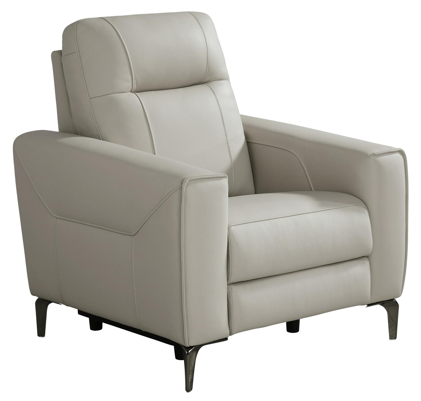 A sleek design and upscale vibe make the Parkside Heights reclining sofa the ultimate lounging experience for your living space. Upholstered in top grain leather where the body touches, this modern piece features sophisticated track arms, textured stitching for a provocative visual element and tapered legs with a nickel finish. The dual power reclining function allows adjustment in the headrest and footrest for optimal relief and relaxation. Wide, plush cushions make for a supportive, cozy sit, while dual power reclining functions allow for custom comfort at the push of a button. USB charging ports in the control panel add high-tech convenience.