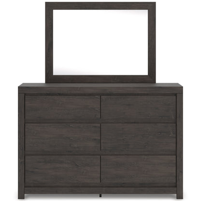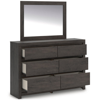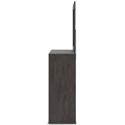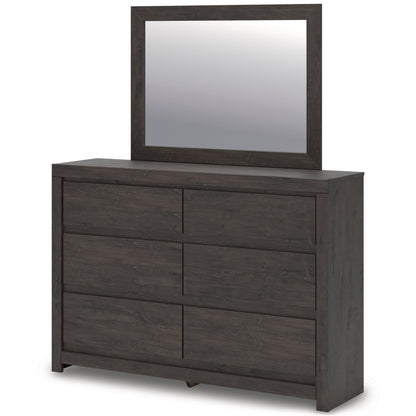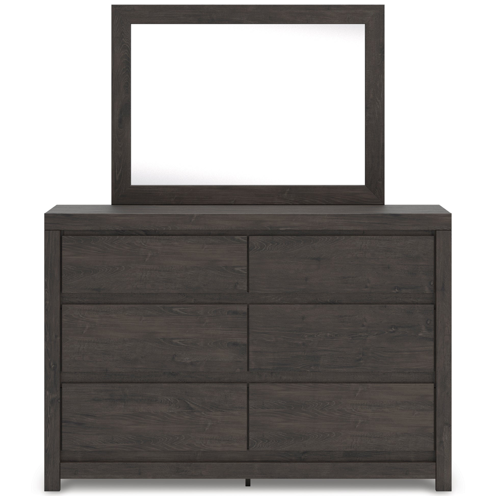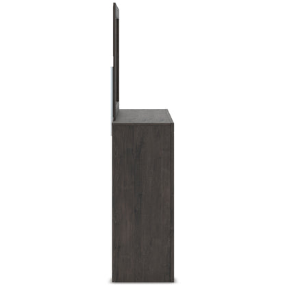 Find serene simplicity in the clean lines and dark neutral tones of this dresser with mirror. It’s a sincere approach to modern elegance, giving you high style at a great value. A sleek hardware-less design creates a fuss-free look. Short on storage? This dresser’s smooth-gliding drawers keep clothes and clutter neatly tucked away.
