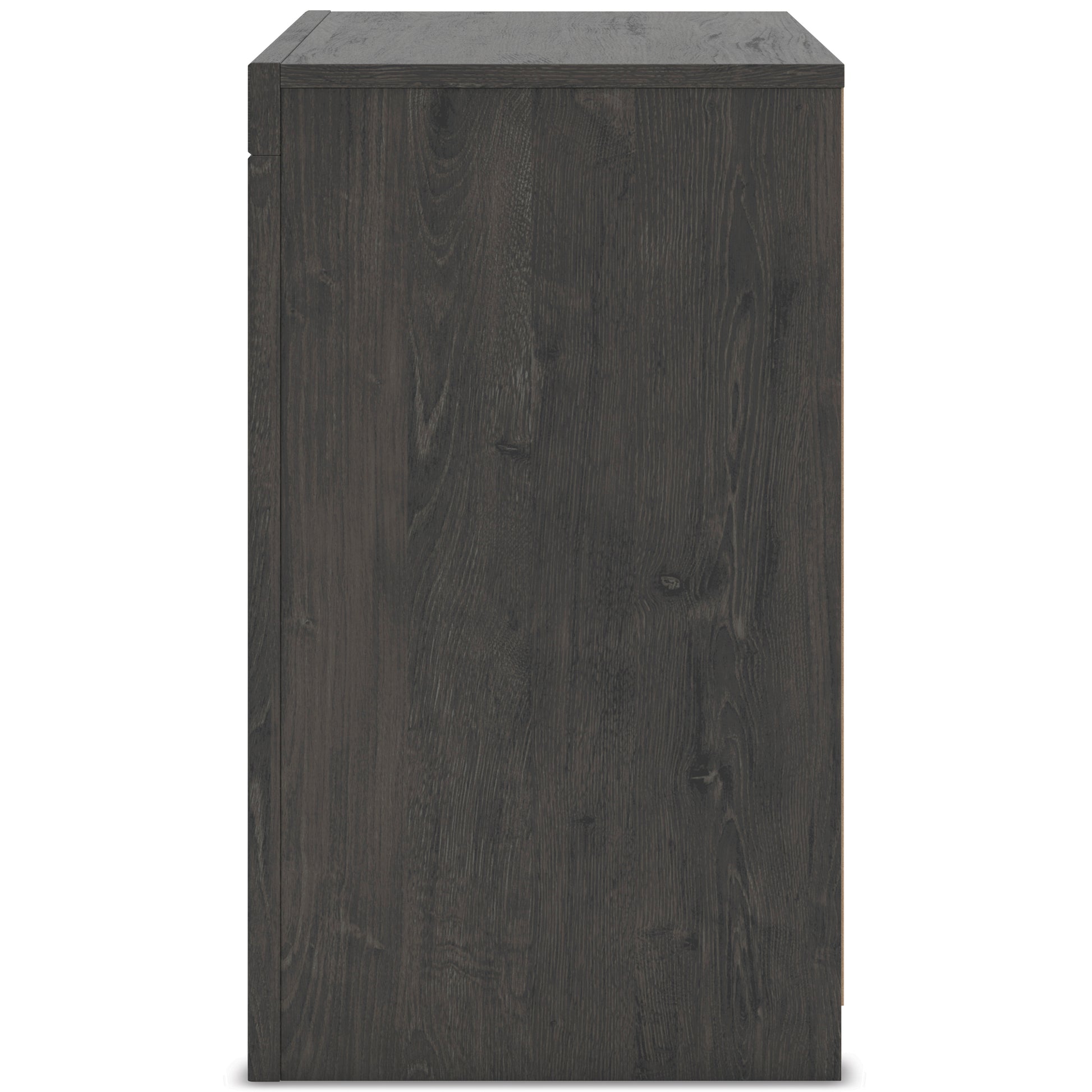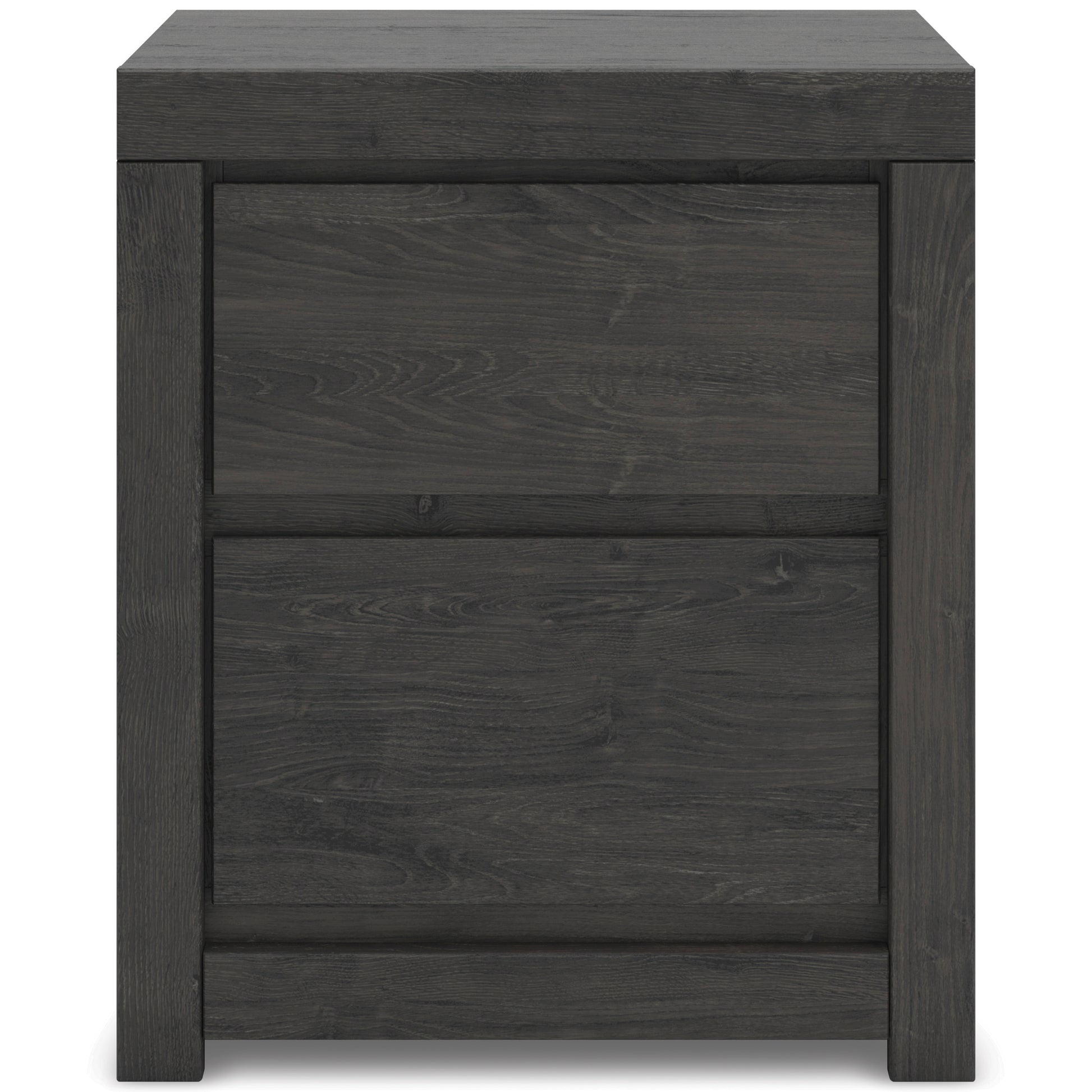 Find serene simplicity in the clean lines and dark neutral tones of this nightstand. It’s a sincere approach to modern elegance, giving you high style at a great value. A sleek hardware-less design creates a fuss-free look. Winding down before bed? Keep essentials close with the nightstand’s smooth-gliding drawers and USB charging.