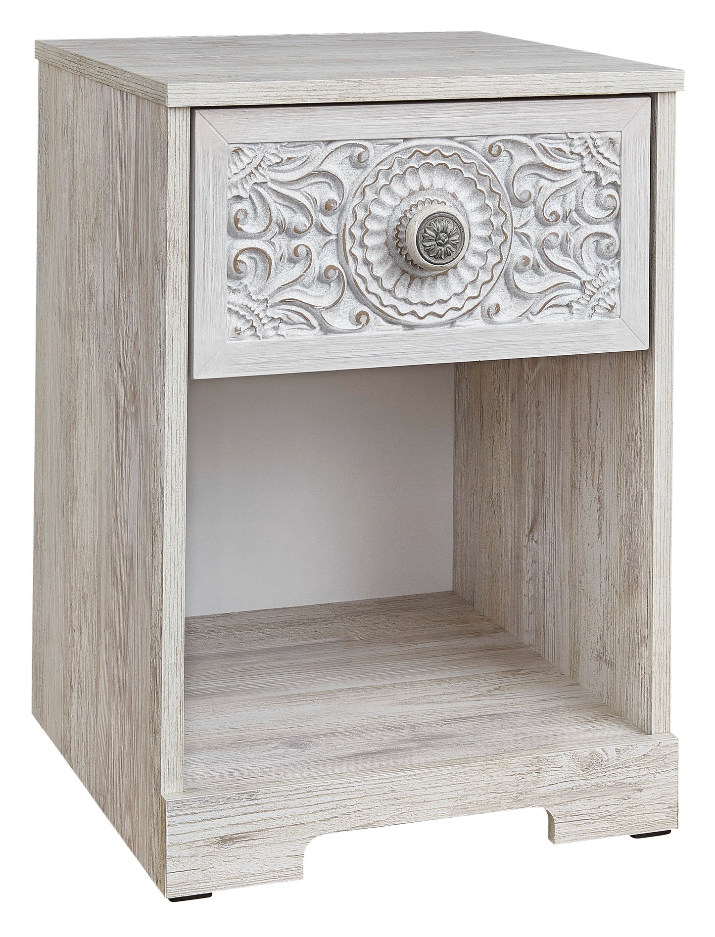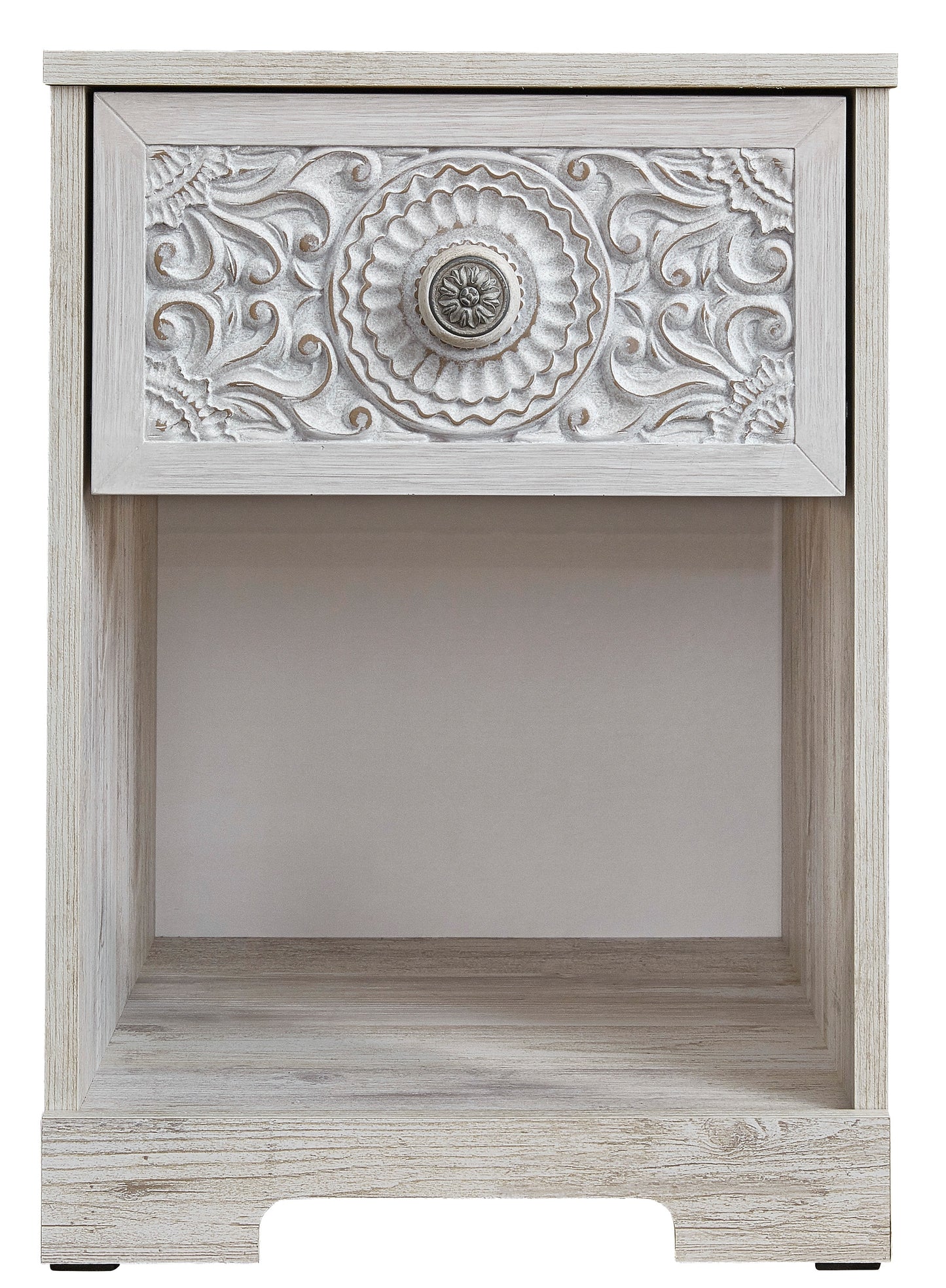If it's coastal chic or cottage quaint style you long for, this whitewashed nightstand invites you to go to town. Its distinctive weatherworn finish conveys an easy-breezy sensibility, perfect for a restful bedroom retreat. Tastefully edited lines and a medallion drawer pull give this attractively priced nightstand a high-end aesthetic.