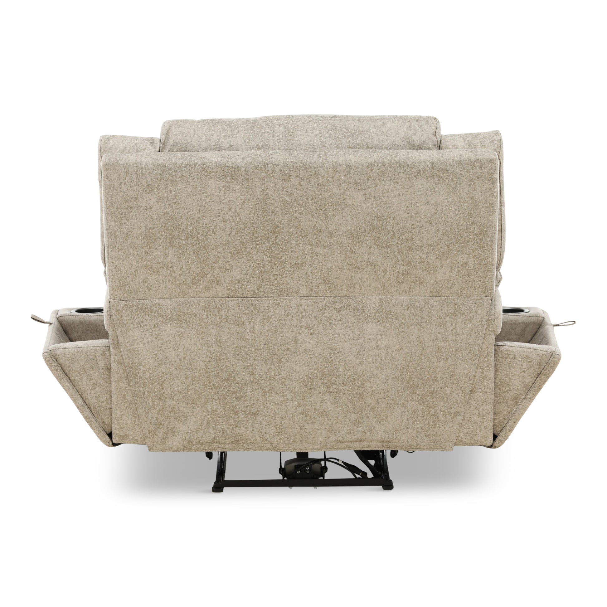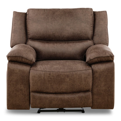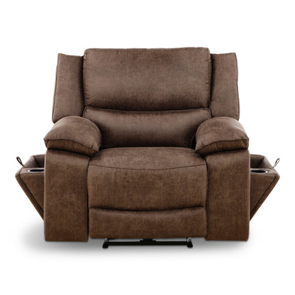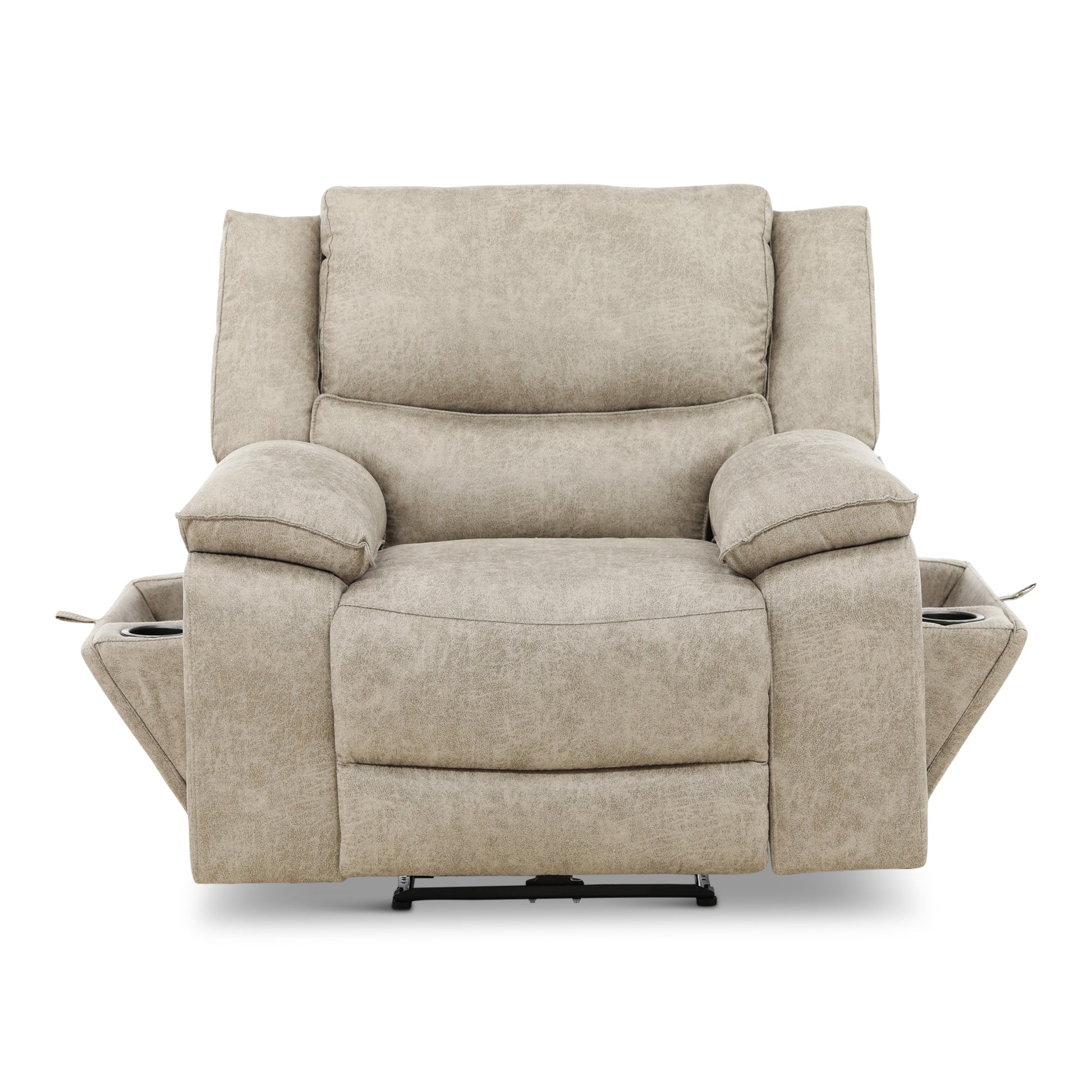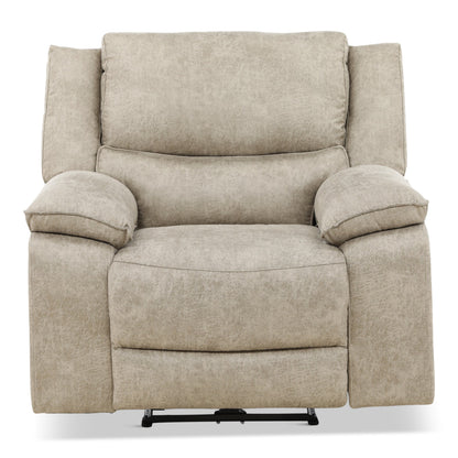 This transitional reclining living room group features a large seated two over two reclining sofa with power. On each side of the sofa there are pop out for drink holders and a magazine storage area. The loveseat also features power reclining seats and has a console for storage. The single recliner that matches features power reclining as well. The density foam provides years of comfort and the all-wood frame ensures durability for years to come.
