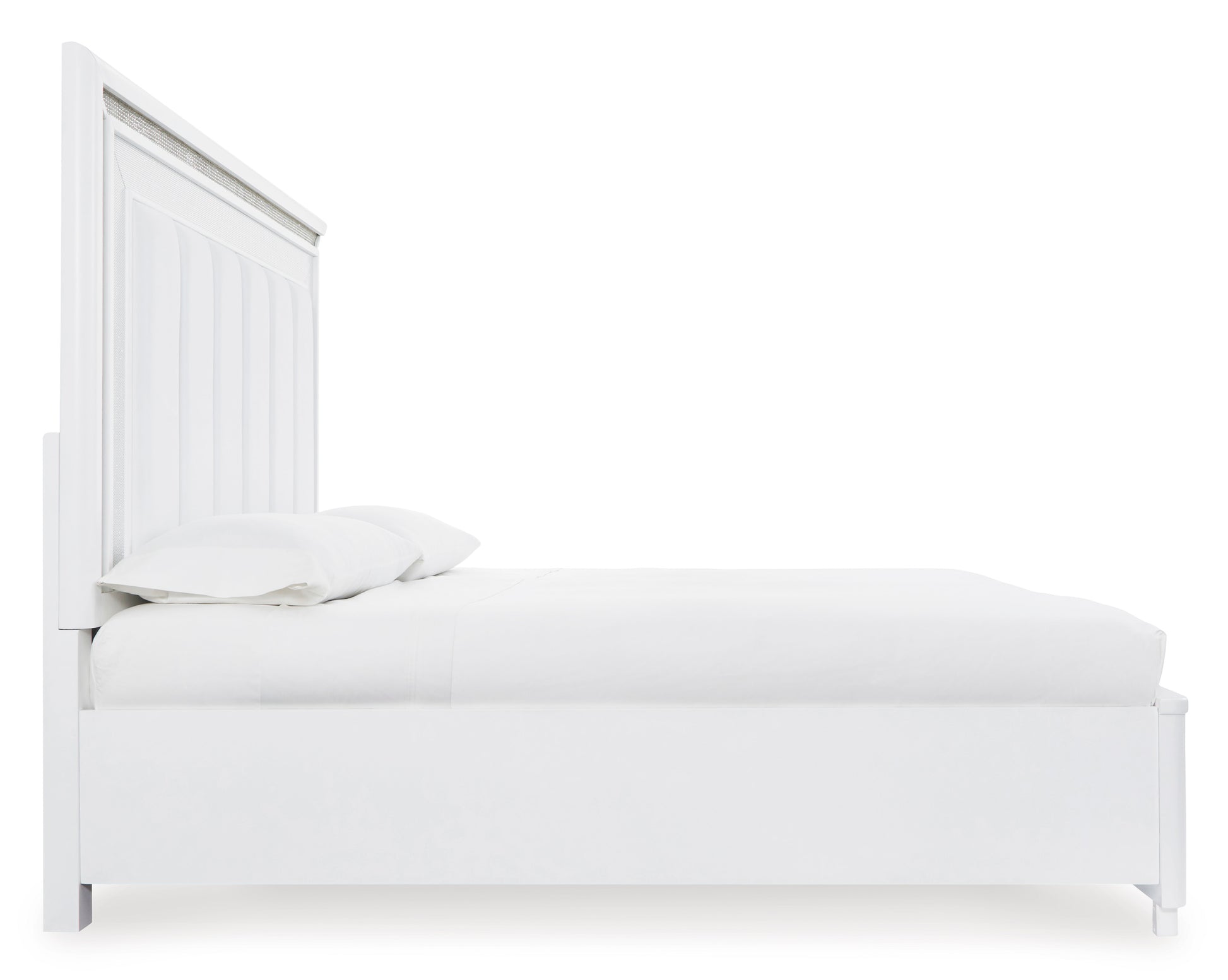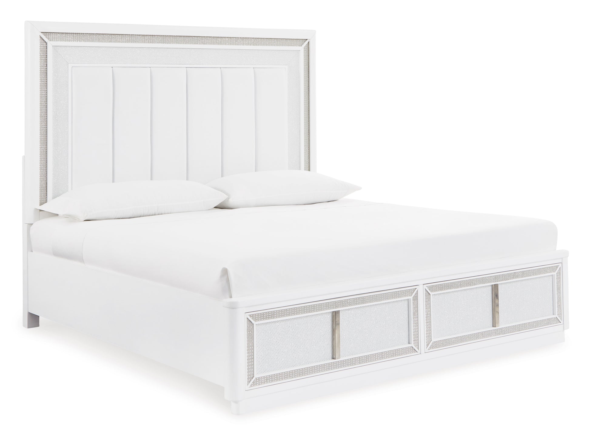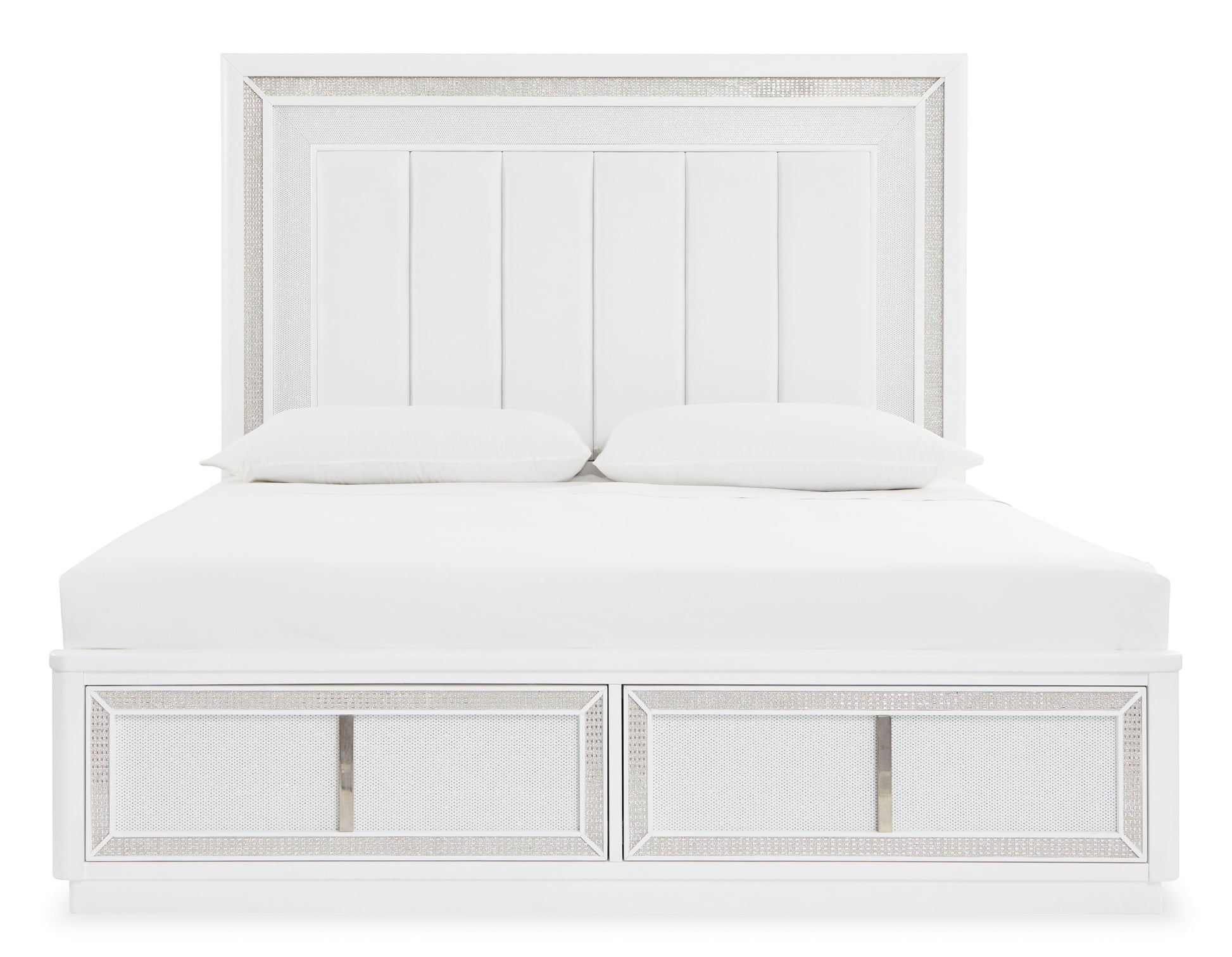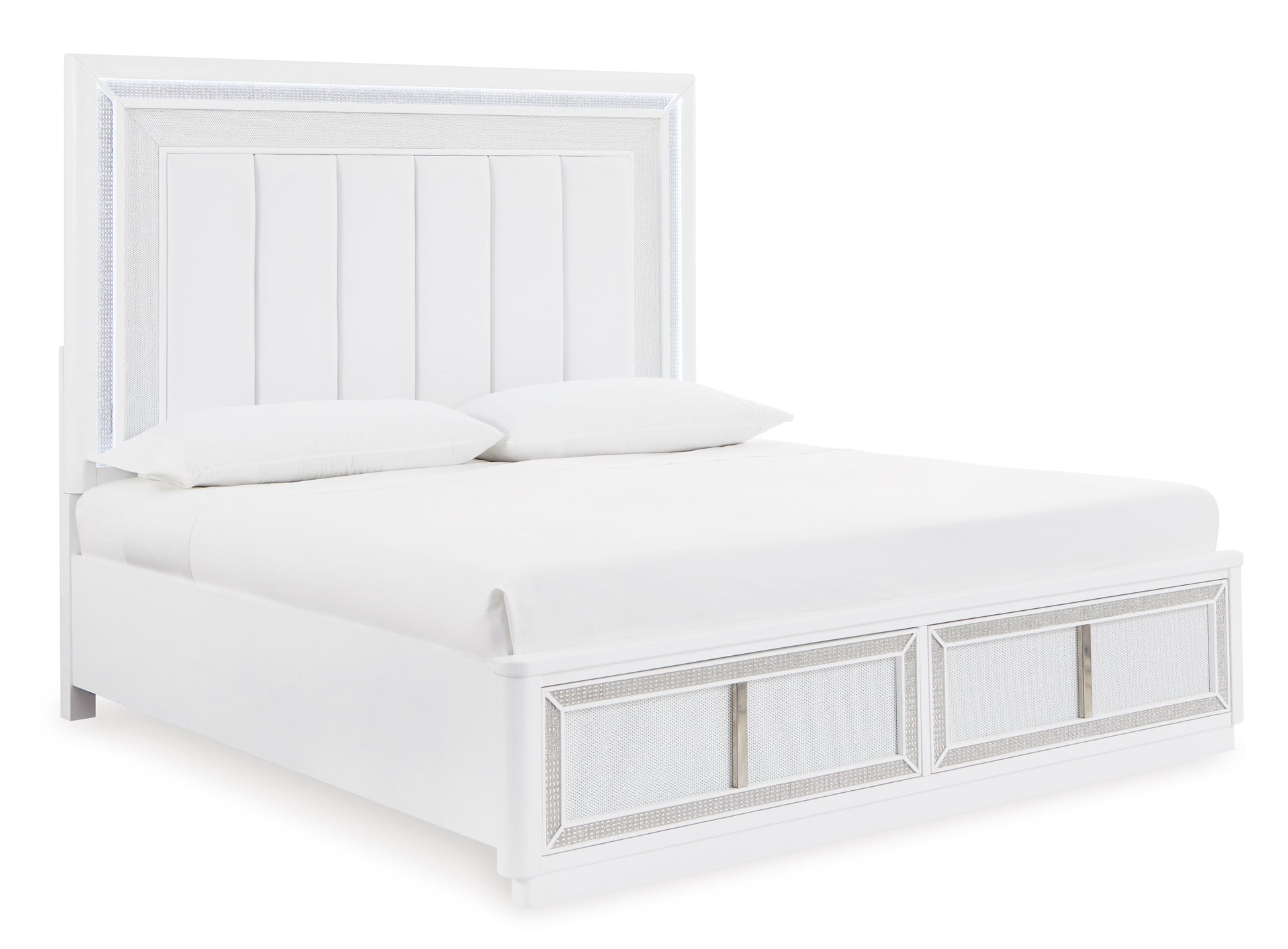 Transform your bedroom with this upholstered storage bed. Its LED lighting, rhinestone framing and faux leather panels exude modern glamour. And the convenient storage footboard offers a practical solution for organizing and accessing belongings. Let your sanctuary shine—and never let anyone dull your sparkle.