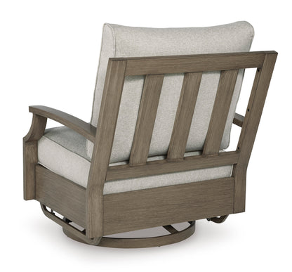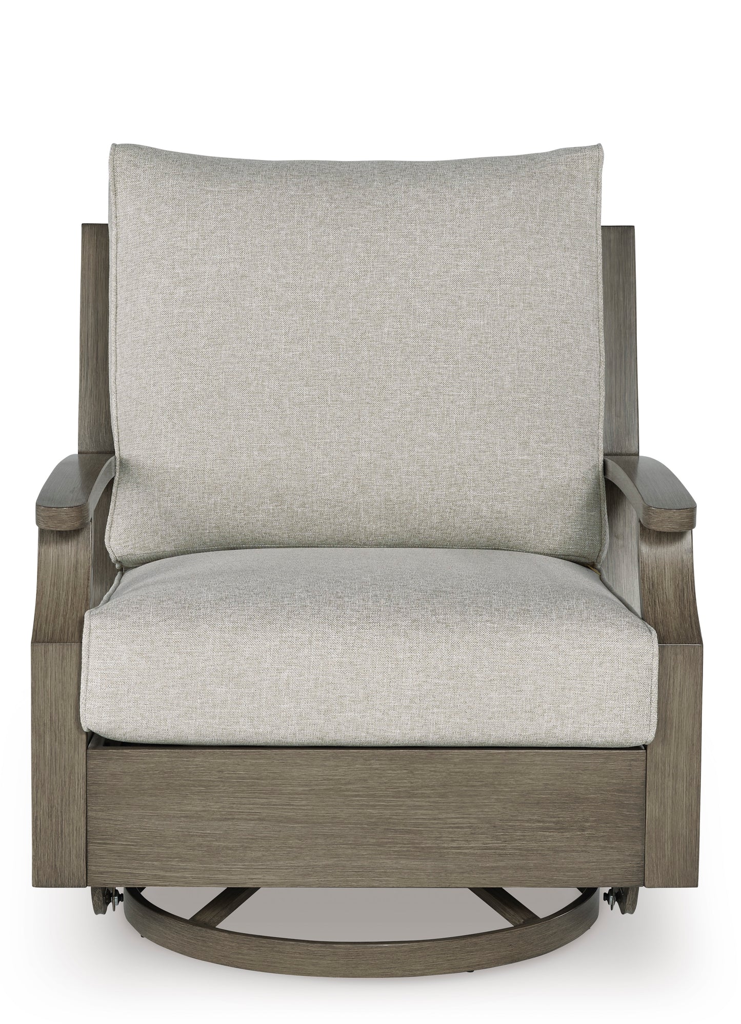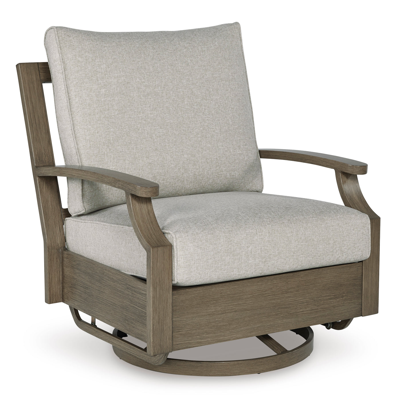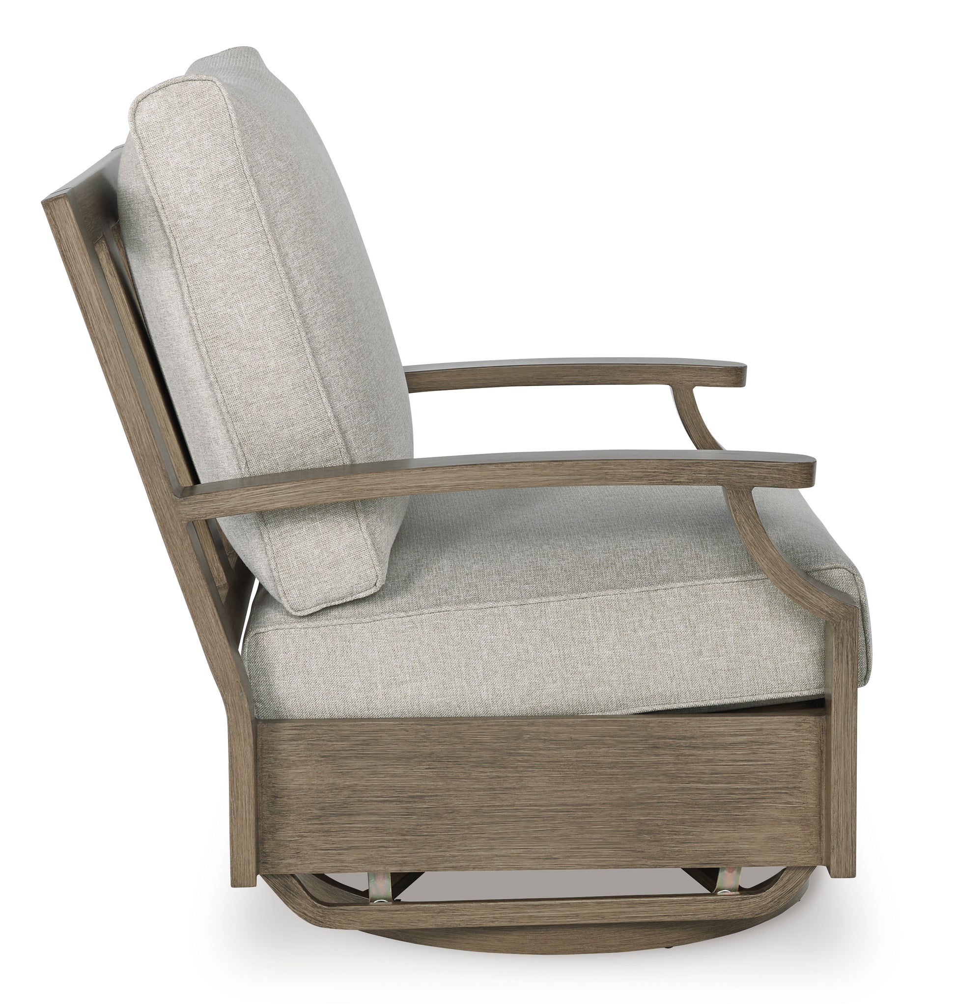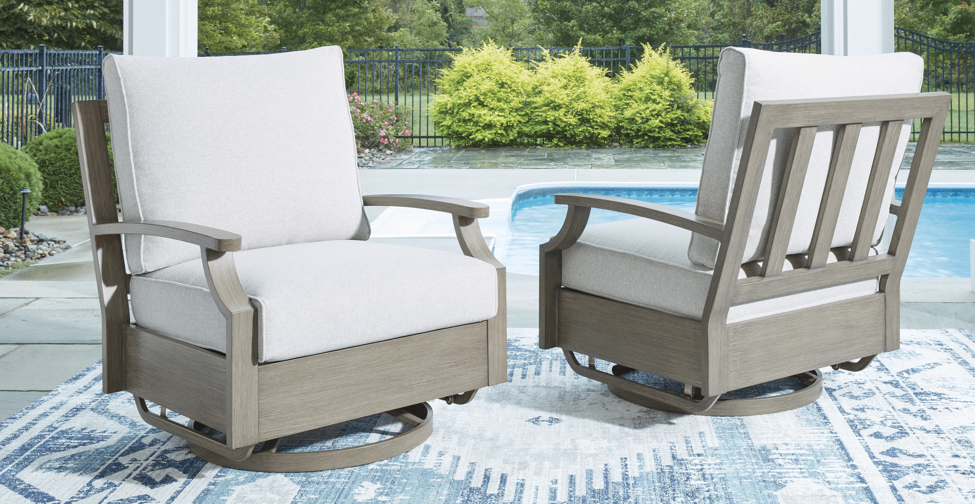 Experience the perfect combination of durability and style with this outdoor swivel glider chair. Enhanced by sumptuously soft cushions and throw pillows wrapped in high-performing, low-maintenance Nuvella+™ fabric, it's designed to provide you with years of enjoyment. This delightful addition to your outdoor space creates an oasis where comfort and beauty thrive.