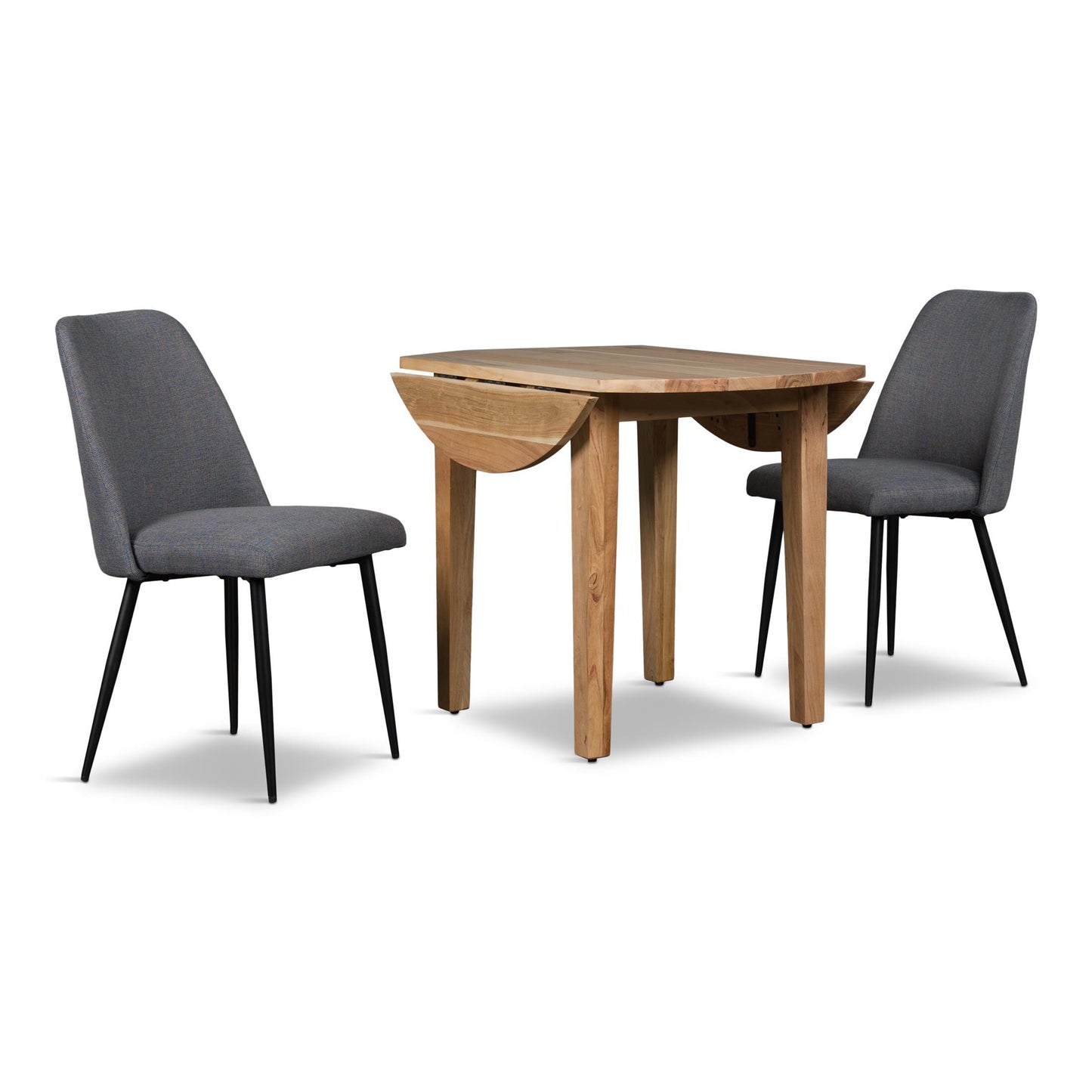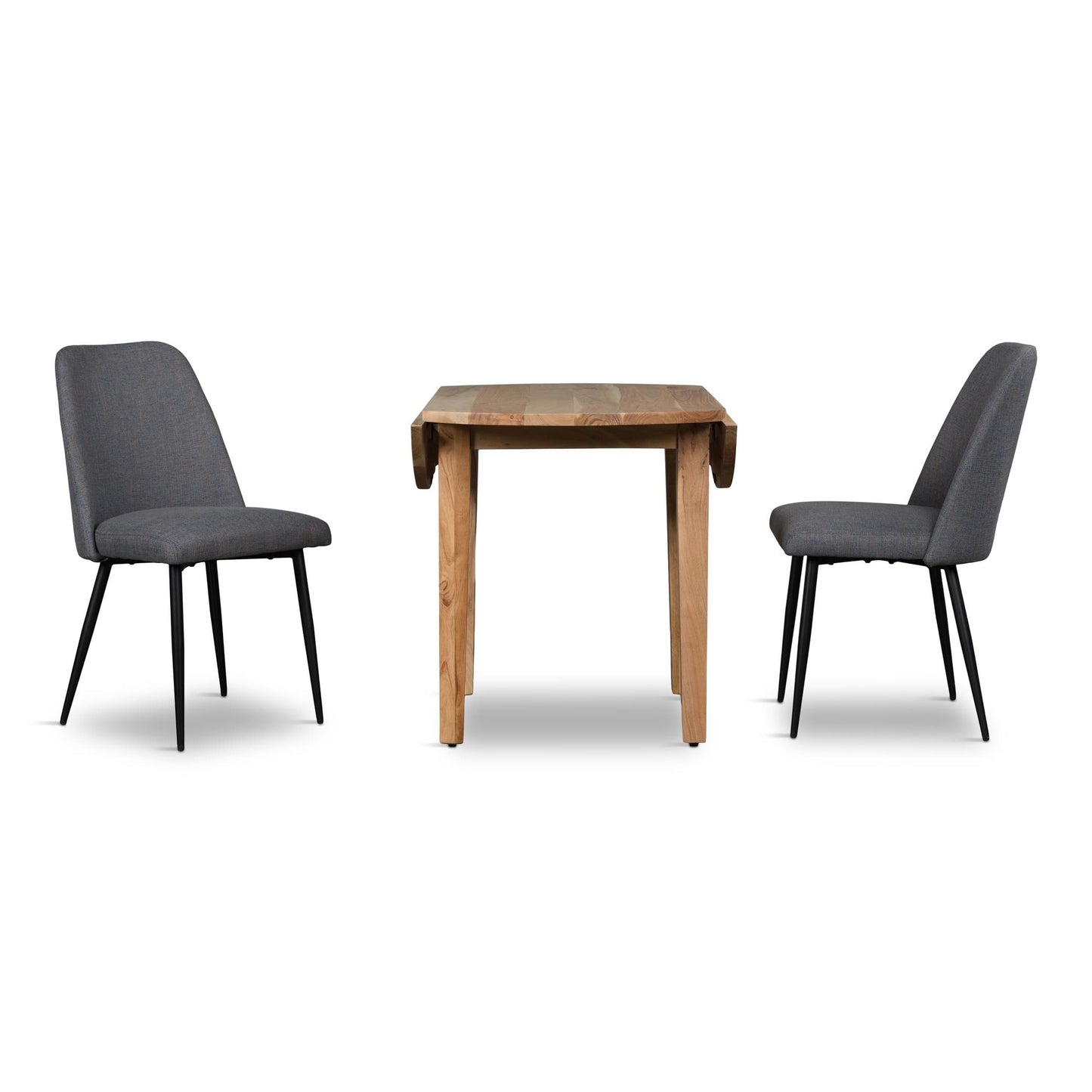 Clean lines, splashes of color, and fresh style are just some of the reason to love the Remy 3-Piece Drop Leaf Dining Set. It's a fashion fresh, color rich mix and match dining collection. The casual comfort of an upholstered chair that fits any home on any budget.