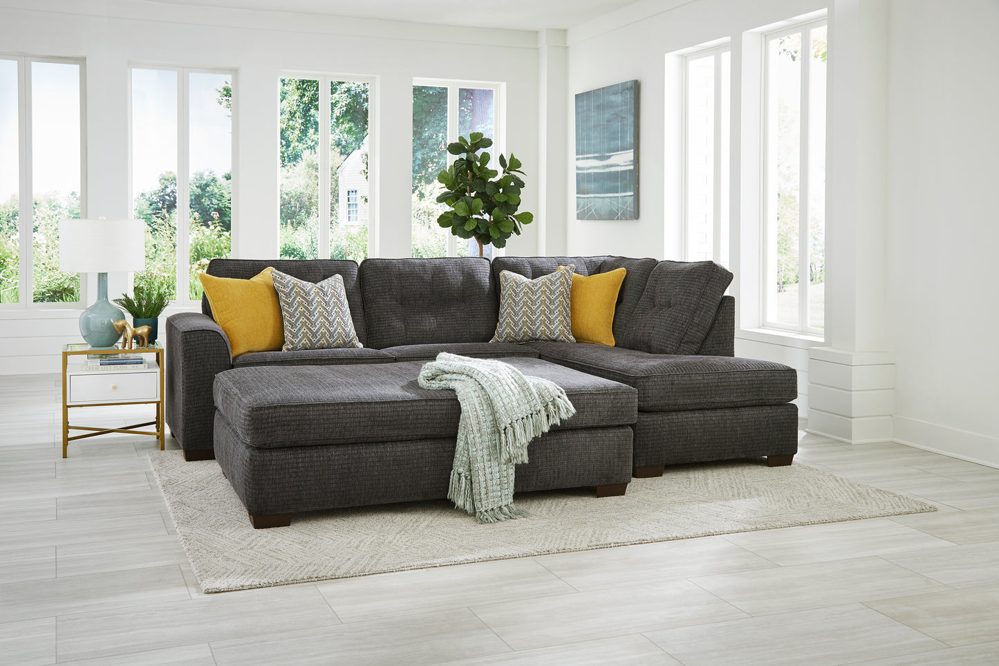 Anchor your living room with the Rex Sectional. This sprawling sectional offers stylish, expansive seating space with supportive, plush cushions, a high back and wide track arms. Its polyester upholstery is super soft and durable, guaranteeing long-lasting performance.