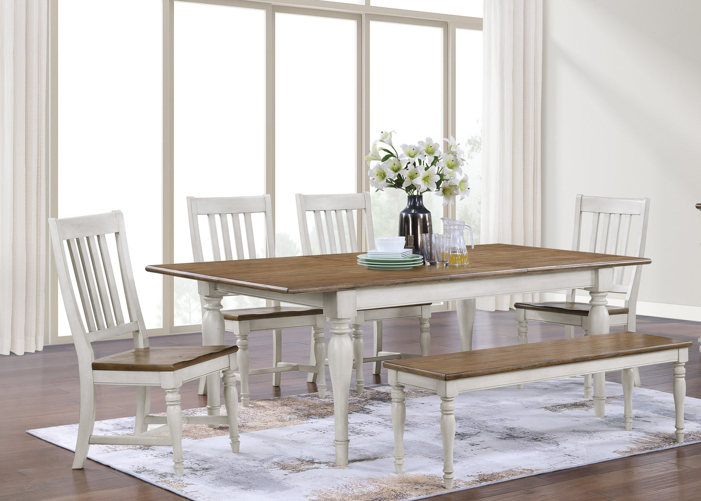 The Rhett collection depicts the essence of Farmhouse and Coastal styling. Featuring an Antique white handmade finish that is paired with a warm oak Farmhouse finished top, the Rhett collection reproduces many characteristics of vintage handmade furniture. With classic authenticity that looks as though it has been loved and treasured for many years.