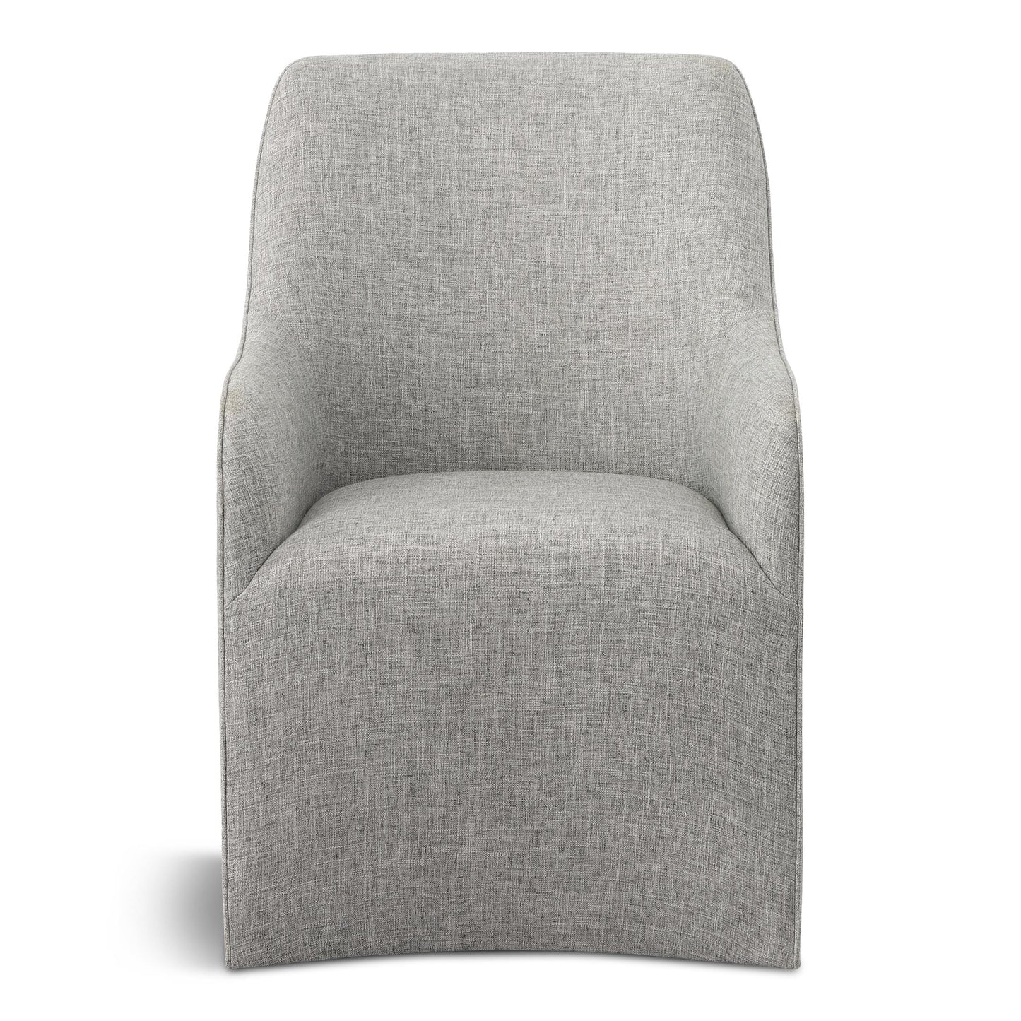 The graceful slope-arm styling of the Riley arm chair sets the tone for all proclaimed casually cool spaces. A natural gray finish and soft linen upholstery complete the look and make this chair a must have.