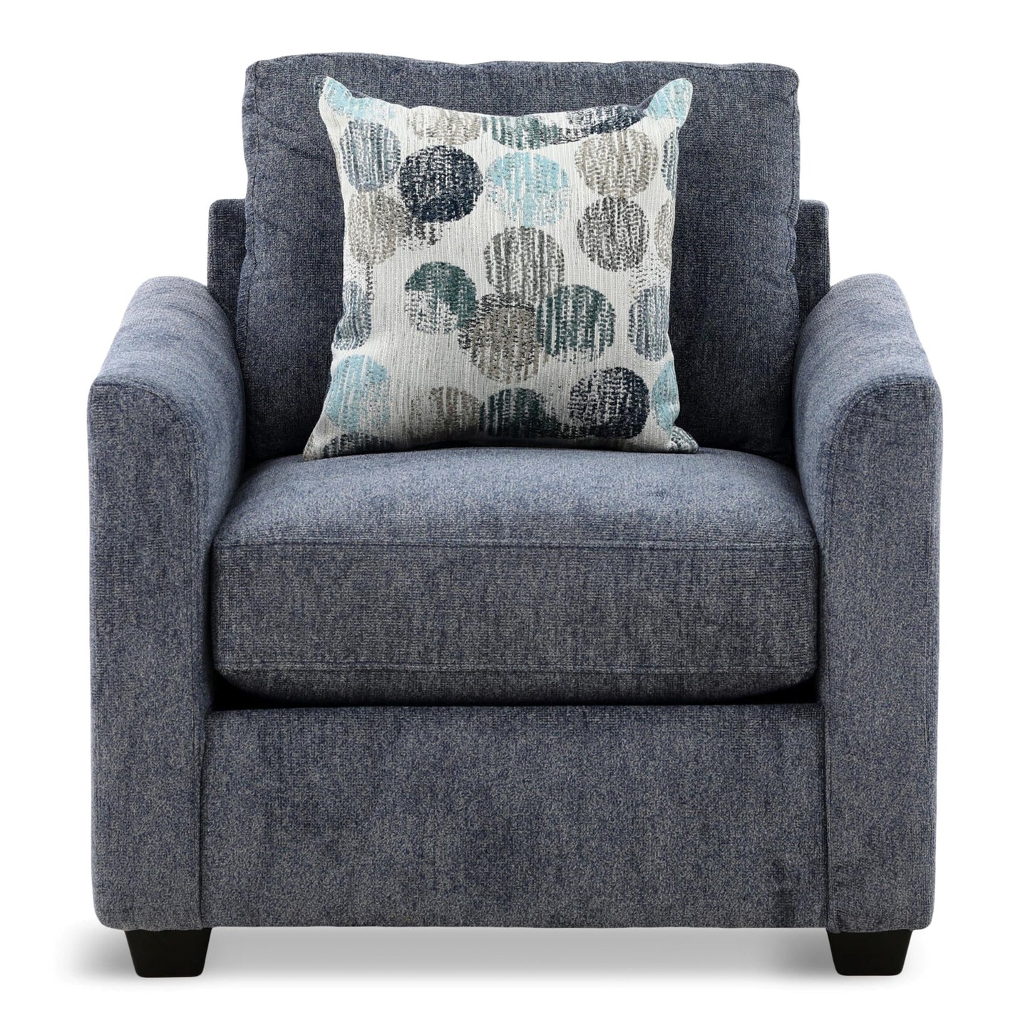 Clean, confident lines with a delightfully understated style, the casual warmth of the Ringold collection makes any room feel open and inviting. Featuring sloped wedge arms alongside reversible seat cushions, this group is upholstered with soft chenille fabric. Cylindrical legs ground the furniture with a dark brown finish that compliments the fabric color. The cheerful pattern on the fabric of the included toss pillows amp up the contemporary collection's playful style by balancing the darker tones of the color palette.