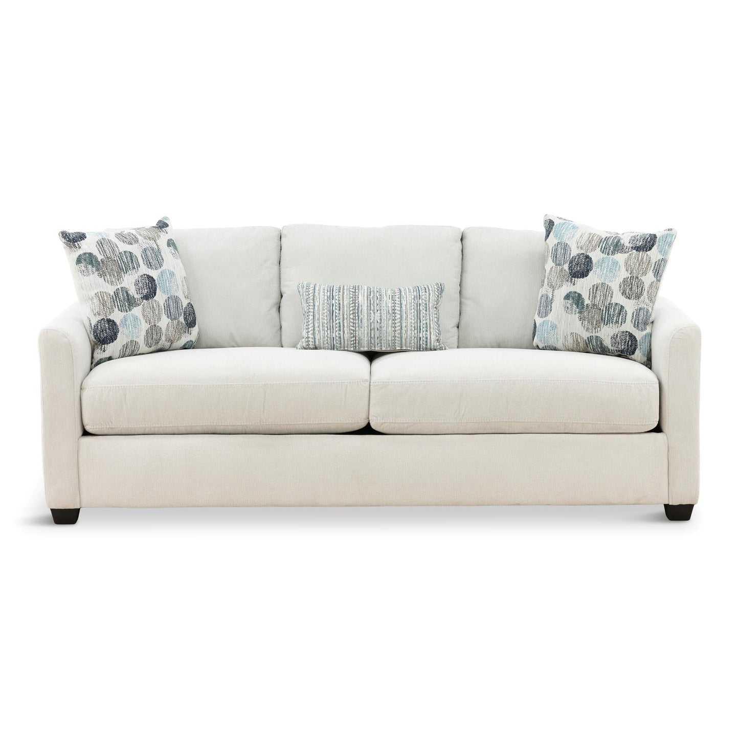 Clean, confident lines with a delightfully understated style, the casual warmth of the Ringold collection makes any room feel open and inviting. Featuring sloped wedge arms alongside reversible seat cushions, this group is upholstered with soft chenille fabric. Cylindrical legs ground the furniture with a dark brown finish that compliments the fabric color. The cheerful pattern on the fabric of the included toss pillows amp up the contemporary collection's playful style by balancing the darker tones of the color palette.