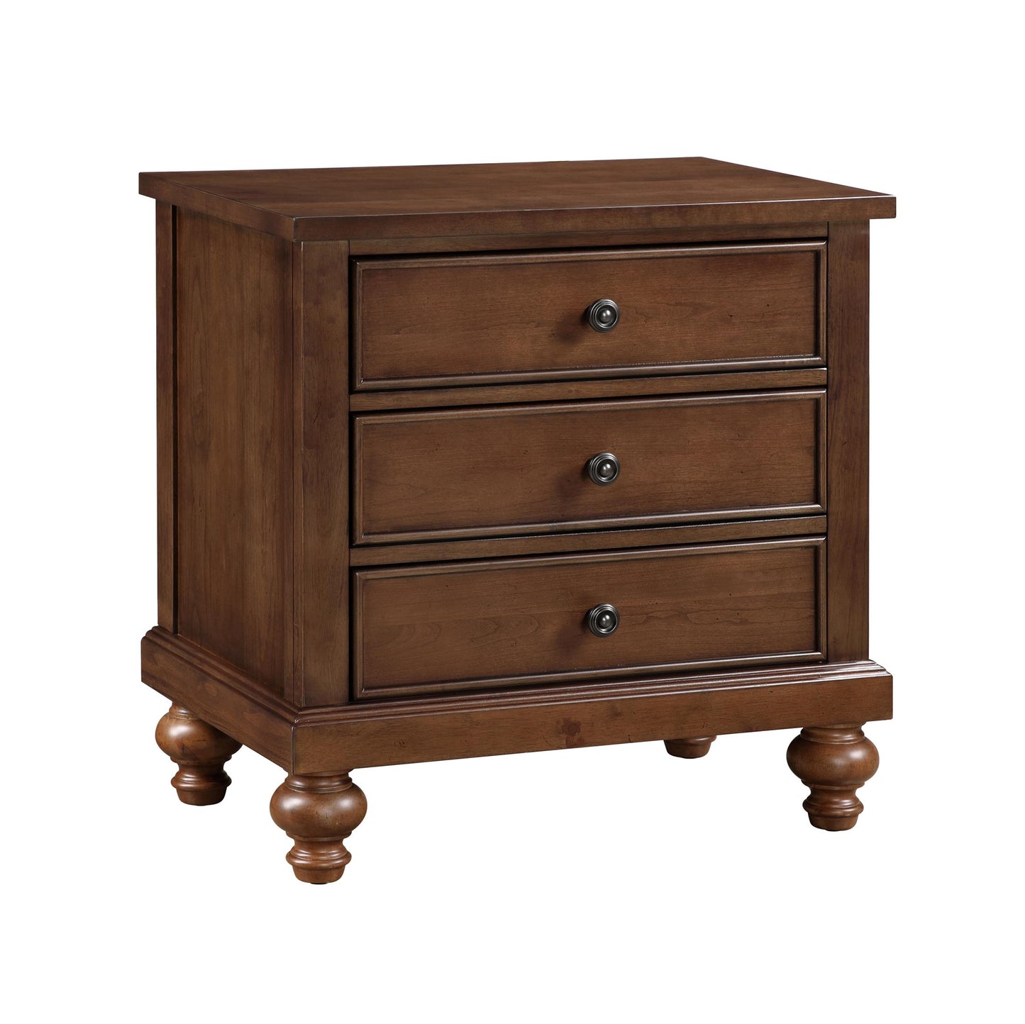 The Roland nightstand introduces a new sense of elegance to your bedroom. With its classic design and rich red-brown finish, this nightstand embodies traditional style with modern functionality. With 3 deep storage drawers, there is a flexibility of choices for keeping essentials neatly tucked away. Crafted with attention to detail, this collection features English bun-style feet that enhance its refined, stately appearance. The Roland nightstand will create a cozy and sophisticated atmosphere to retire to at the end of the day.