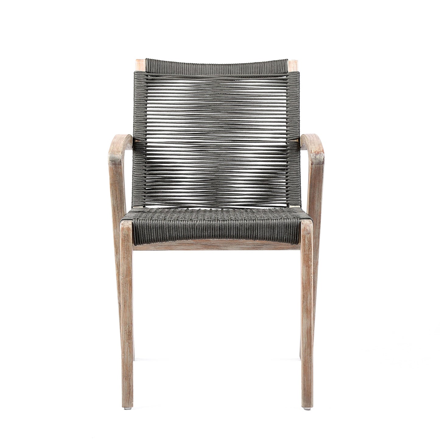 The Armen Living Sachi and Nabila 5 Piece Light Eucalyptus and Stone Outdoor Patio Dining Set is ideal for any outdoor space. The beauty of this pairing lies in the subtle interplay of soft and neutral colors with a contemporary design structure. The Sachi and Nabila dining set is available in your choice of dark or light Eucalyptus. The Sachi table comes with 4 Nabila chairs, wrapped in resilient regatta rope cording, the seat and back provide a remarkable level of comfort while still allowing the elements to pass through. Built from solid eucalyptus, the Sachi naturally repels moisture to keep the elements from affecting its resilient design. Below, crossed legs maximize leg space while maintaining a solid foundation for the table above. Each individual table surface slat expands geometrically outward, while a super stone concrete center tastefully juxtaposes the rest of the table.