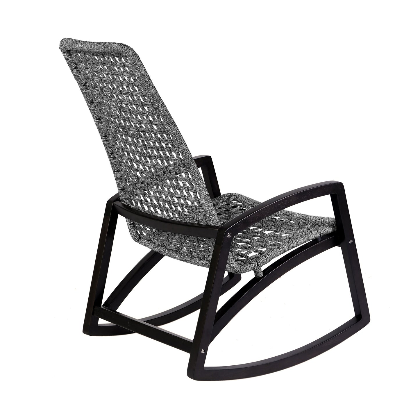 Step up the relaxation and comfort of your patio, front porch, pool area, back yard, or anywhere inside your home with the Sequoia outdoor rocking chair in eucalyptus wood and rope. Neatly weaved with resilient and weather resistant rope, the seat harmoniously pairs with bold and striking Eucalyptus legs. The arms and legs embrace a natural finish to accentuate the grains and warm color of the wood while creating a mid-century modern style silhouette. The tall and supportive back is weaved with rope to perfectly contour your body. One of the best reasons to choose Eucalyptus wood for your outdoor furniture is that it is exceptionally resistant to decay and rot. It naturally resists the influence of moisture because of the high oil content it naturally contains. That means it can get damp without you worrying about whether damage will occur. It can withstand several different outdoor elements while lasting for many years if it receives proper care.
