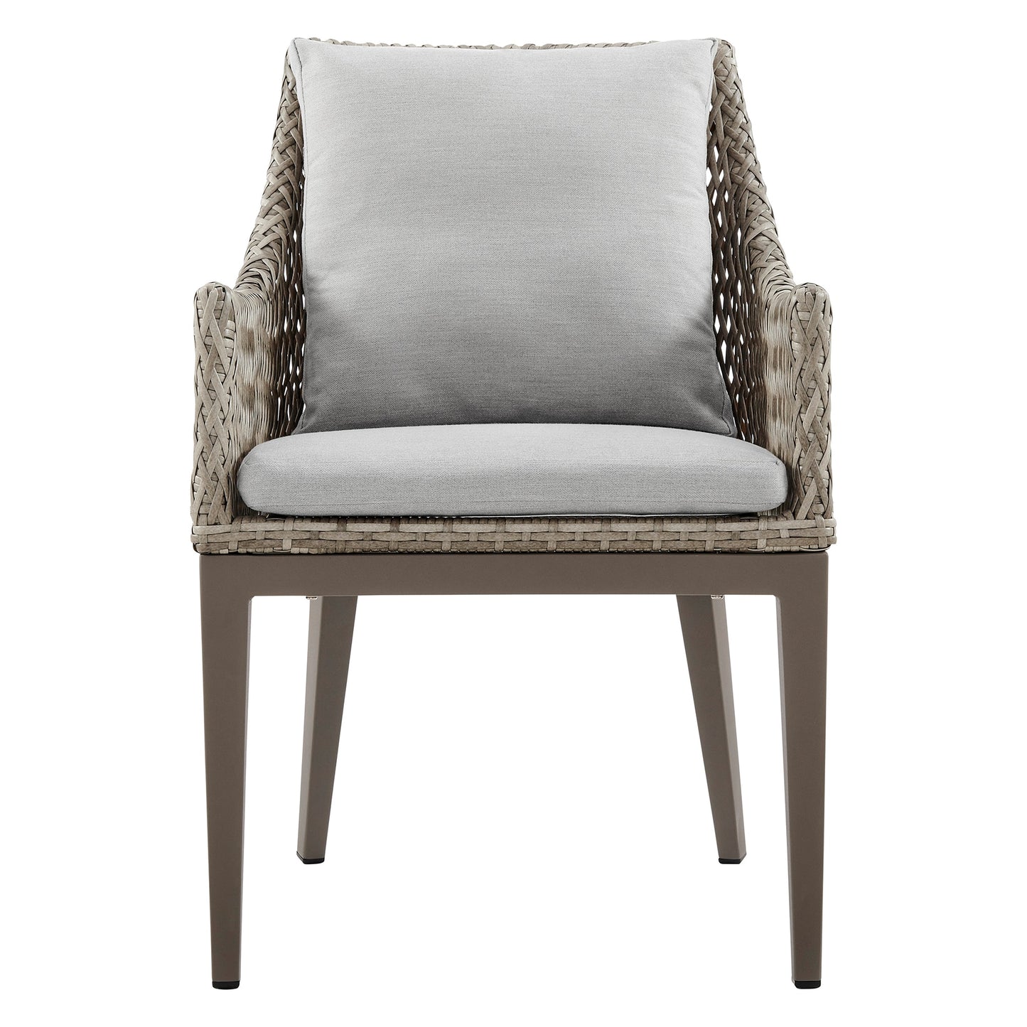The Silvana Outdoor Wicker and Gray Aluminum Dining Accent Chair with Beige Cushions from Armen Living is the most comfortable and durable seating option for you and your outdoor patio area. These chairs feature removable cushions that can also be unzipped, making for an easy and simple cleaning process. The plush seat cushions will keep you relaxed for as long as you are seated! The durable wicker and a solid aluminum frame are lightweight and long-lasting, our outdoor chairs keep all your needs in mind.
