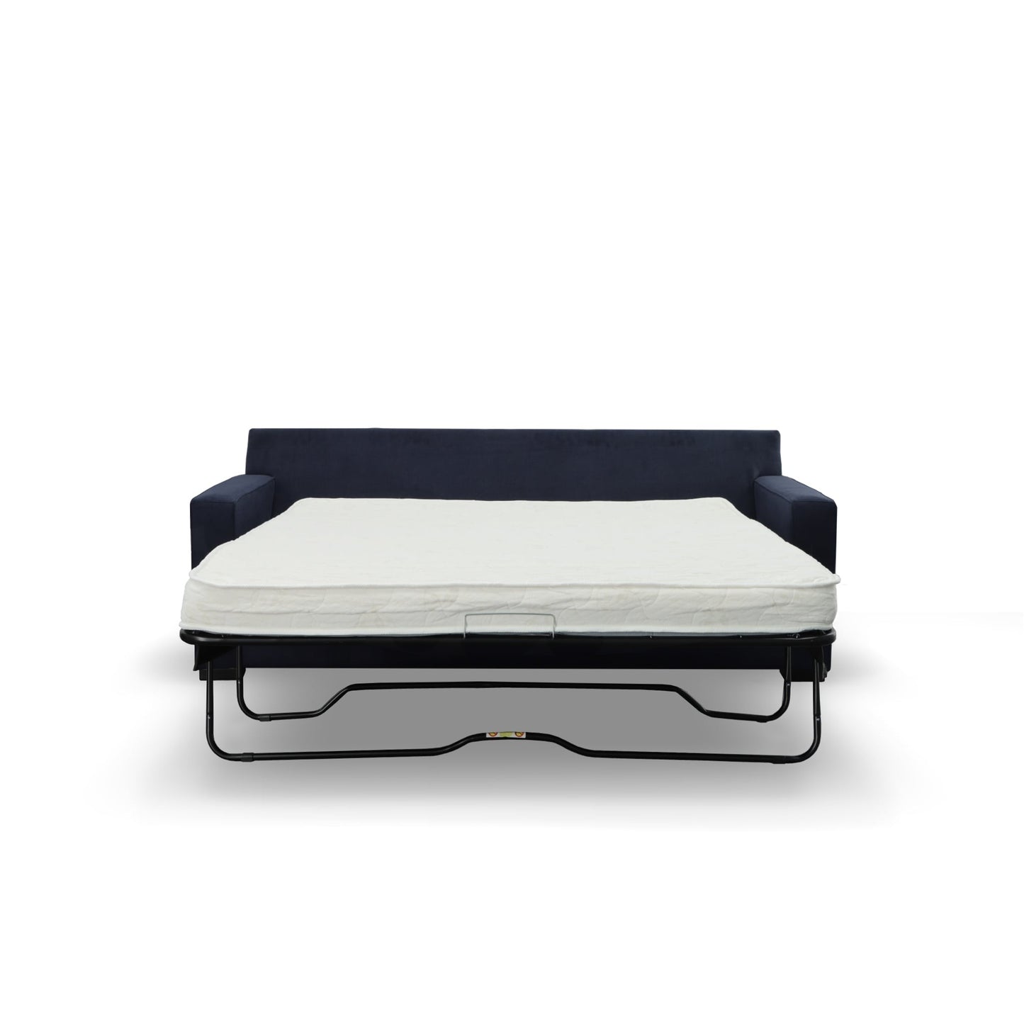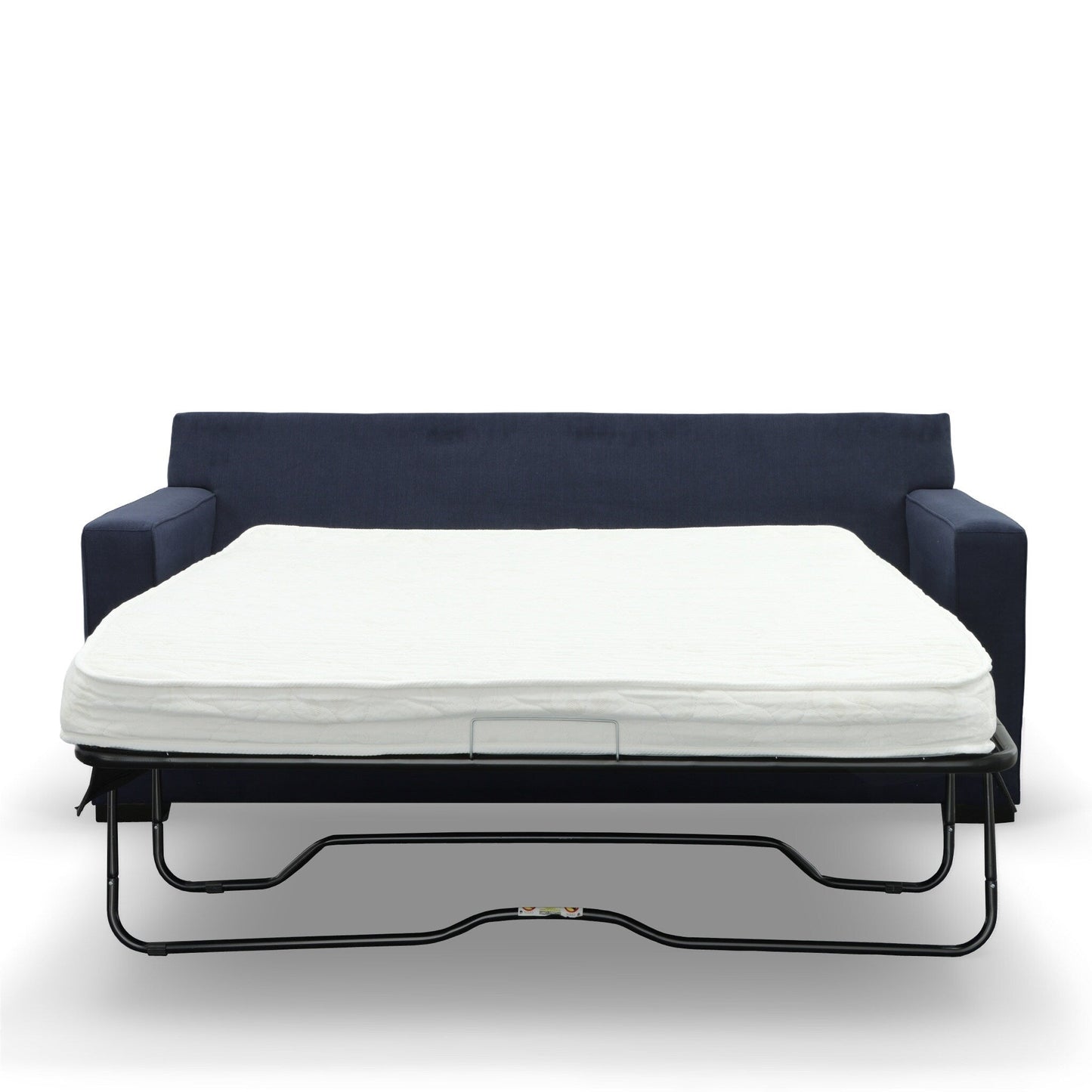 If style is the question, then the Snoozy queen sofa sleeper is the answer. Sporting clean lines and sleek track arms, the decidedly contemporary profile is enhanced with plump cushioning and a chenille-feel upholstery, so pleasing to the touch. Sure to play well with so many color schemes, this sofa sleeper in a navy finish includes a pair of matching pillows for fashionably fresh appeal. Pull-out queen mattress in quality memory foam comfortably accommodates overnight guests.