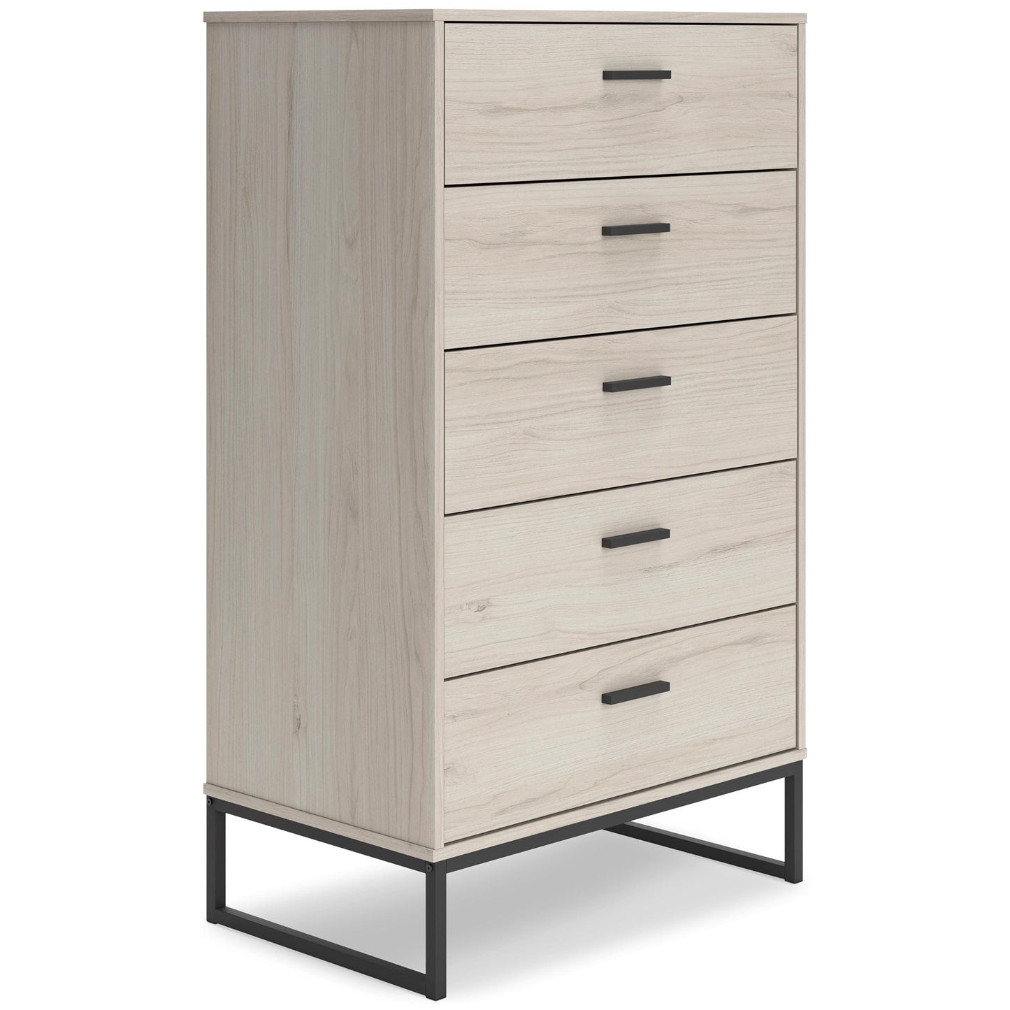 Light and bright, this chest of drawers is inspired by chic design. A light natural finish over replicated oak grain offers an authentic touch to this so-cool piece. It beautifully blends the hues of natural living with the edginess of your modern lifestyle.