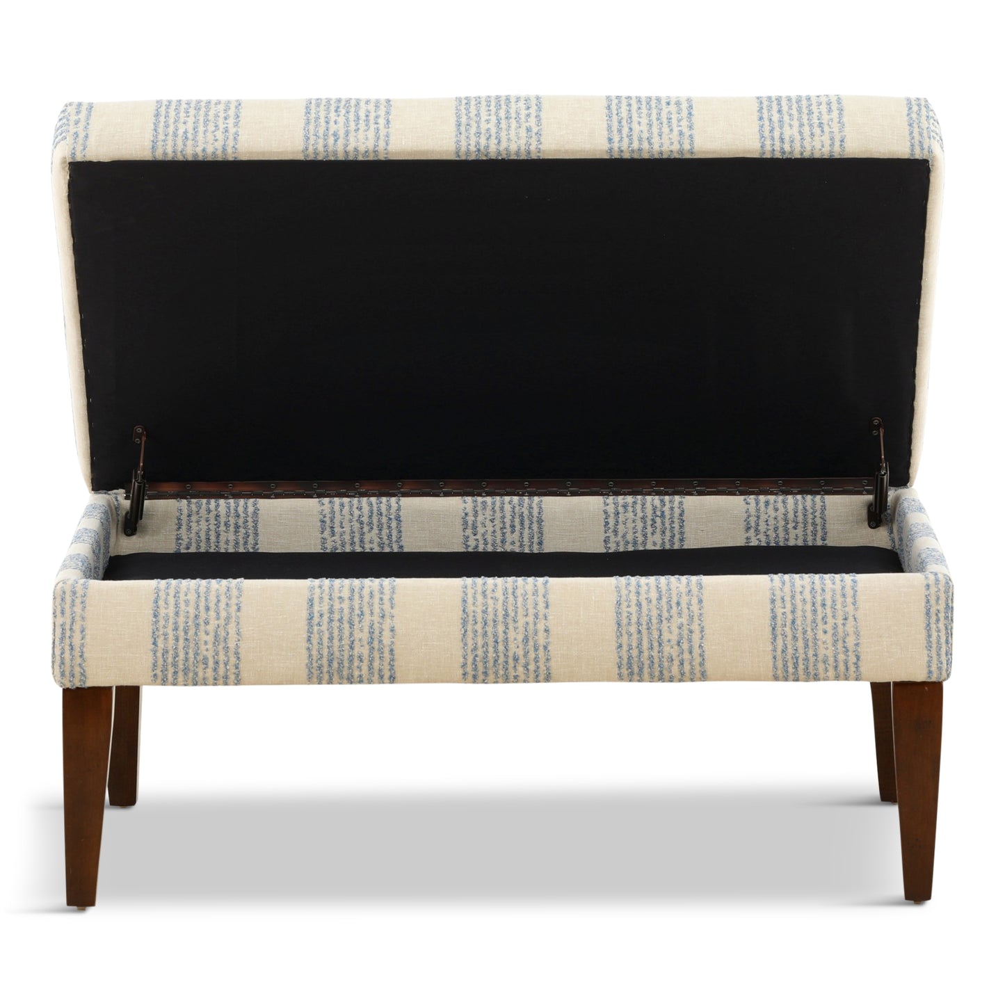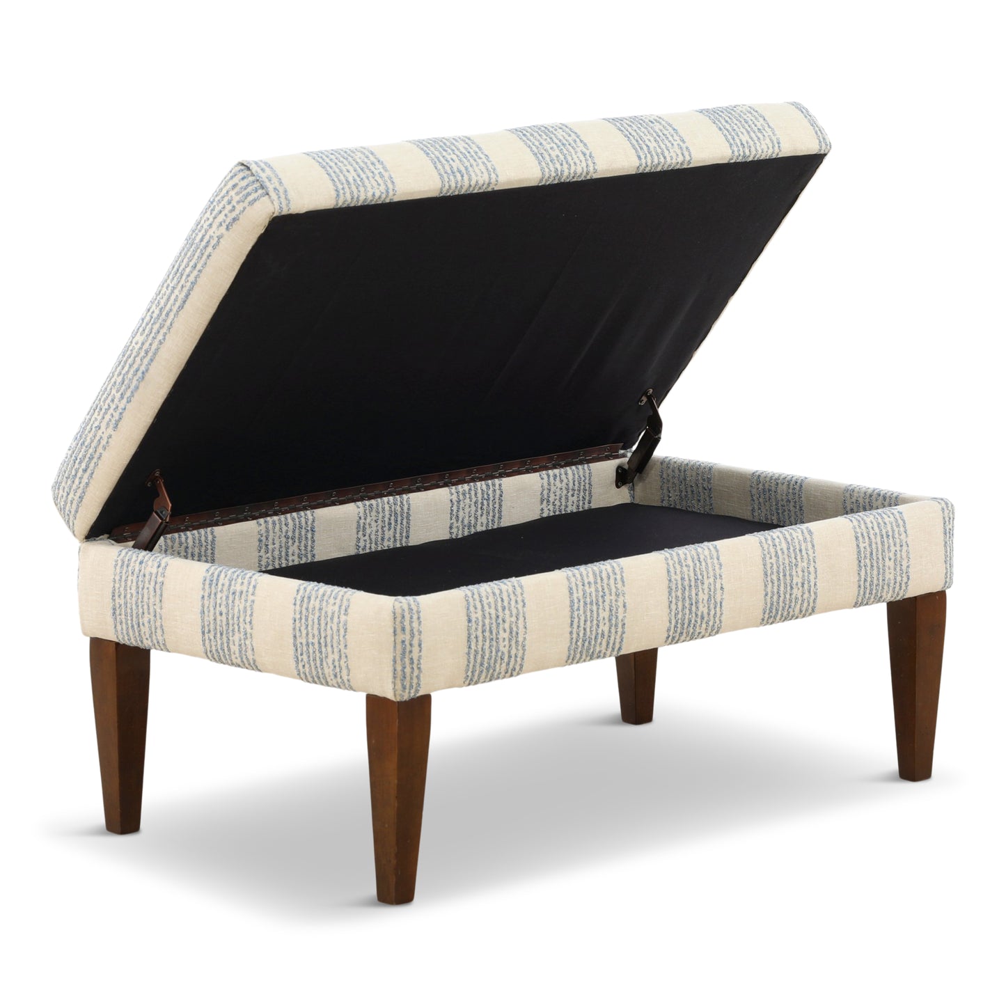 Just what you need to round out your space, this storage ottoman pulls double duty as an extra spot to store all your coziest throws. Upholstered in a classic stripe you’ll love forever, with a hinging lid and ash wood legs.