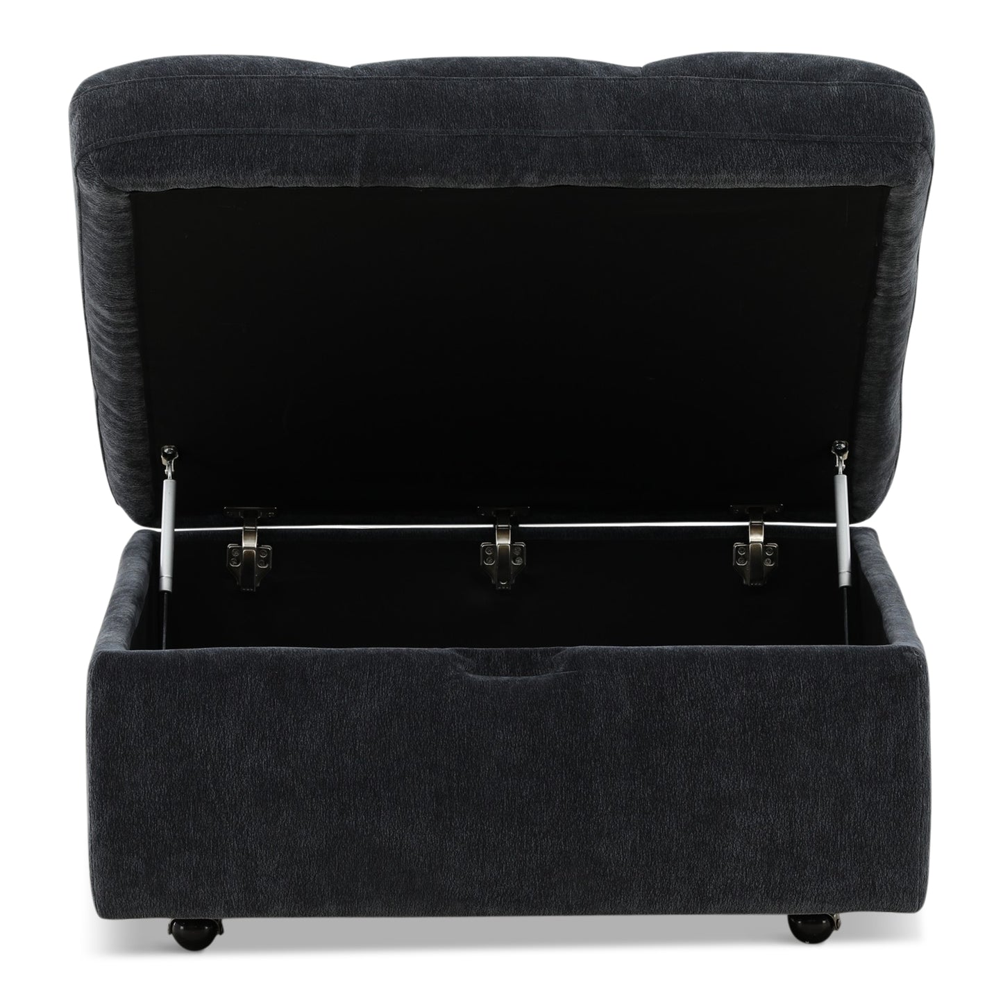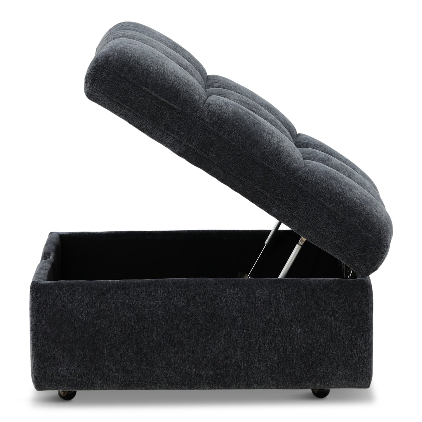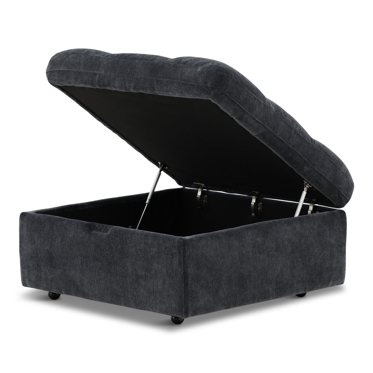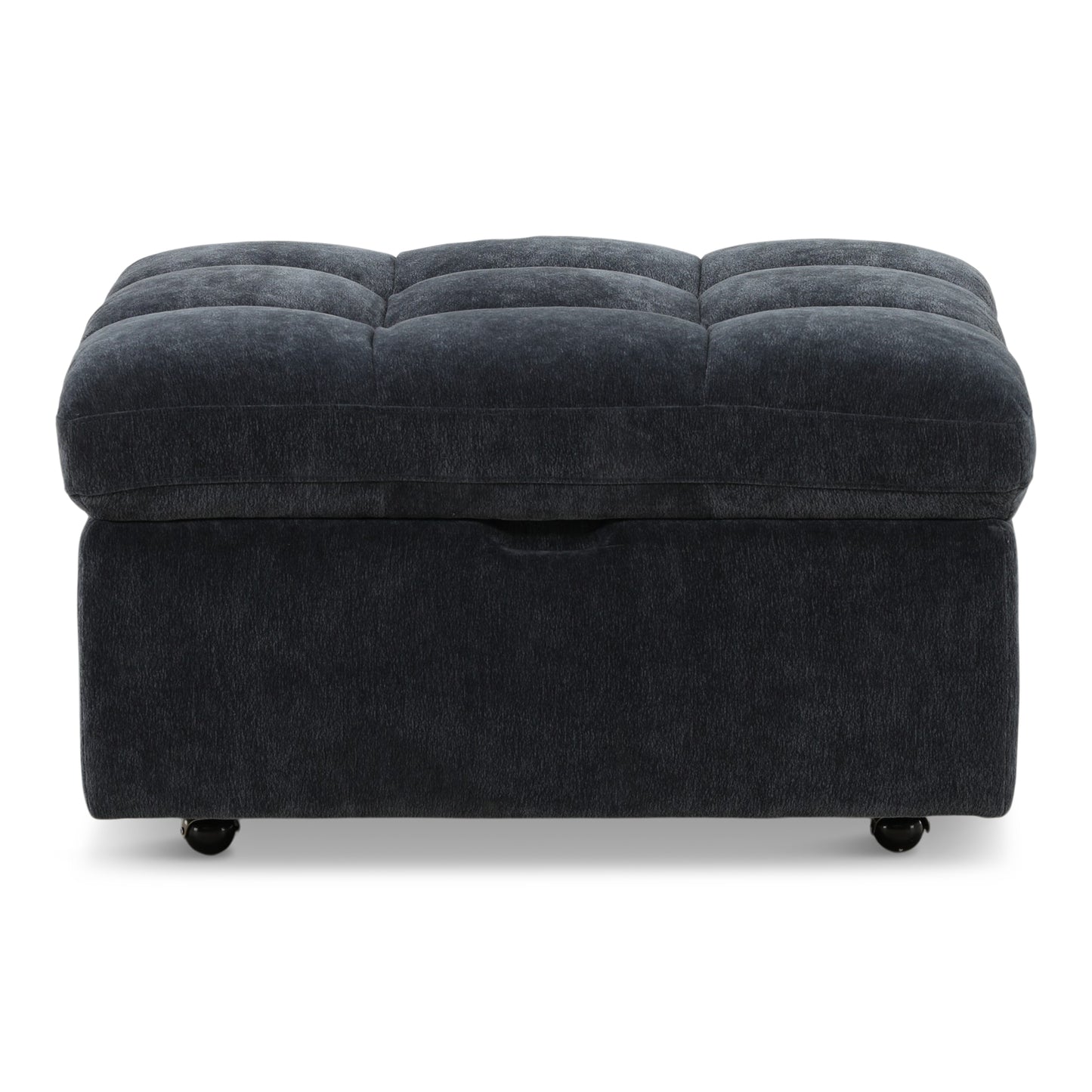 Unclutter your home and elevate the style of your decor all in one go by bringing home our charming storage ottoman. This ottoman features smooth, refined upholstery and delicate tufted waffle stitching in its lid which makes this perfect for any room in your home in need of a handy and contemporary upgrade. Finished with a simple, clean design and soft-closing pressure hinges, this ottoman will blend seamlessly with your interior space while also boasting convenient storage space for you to utilize.