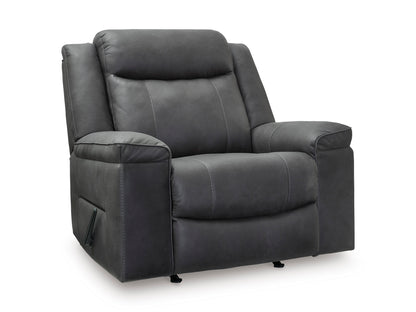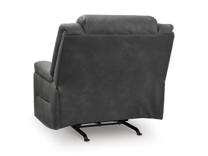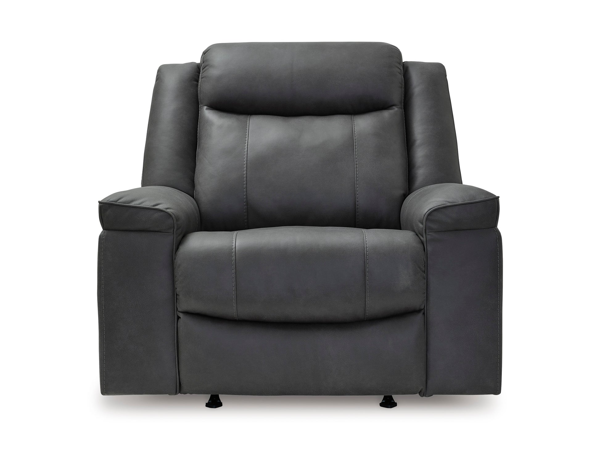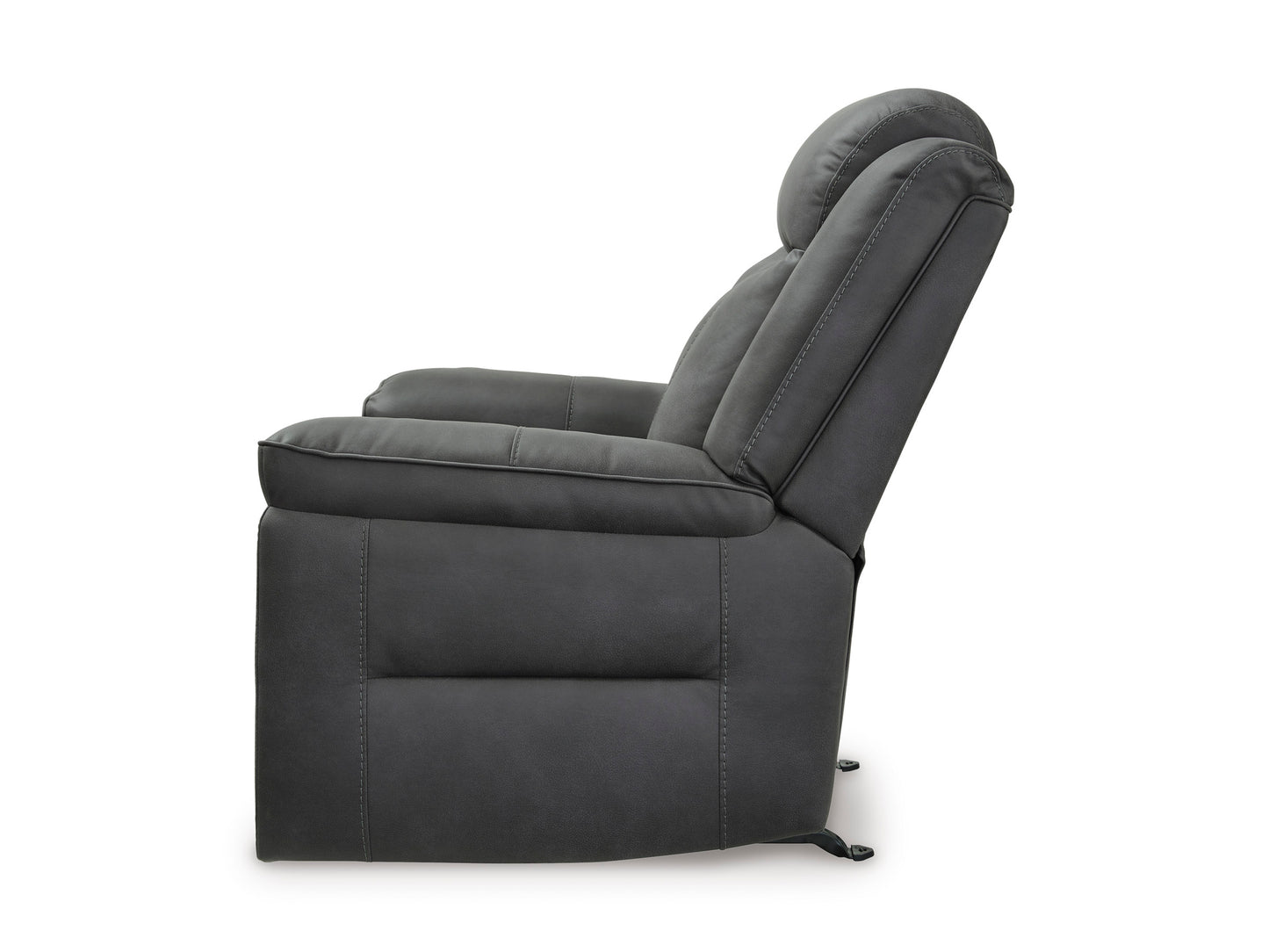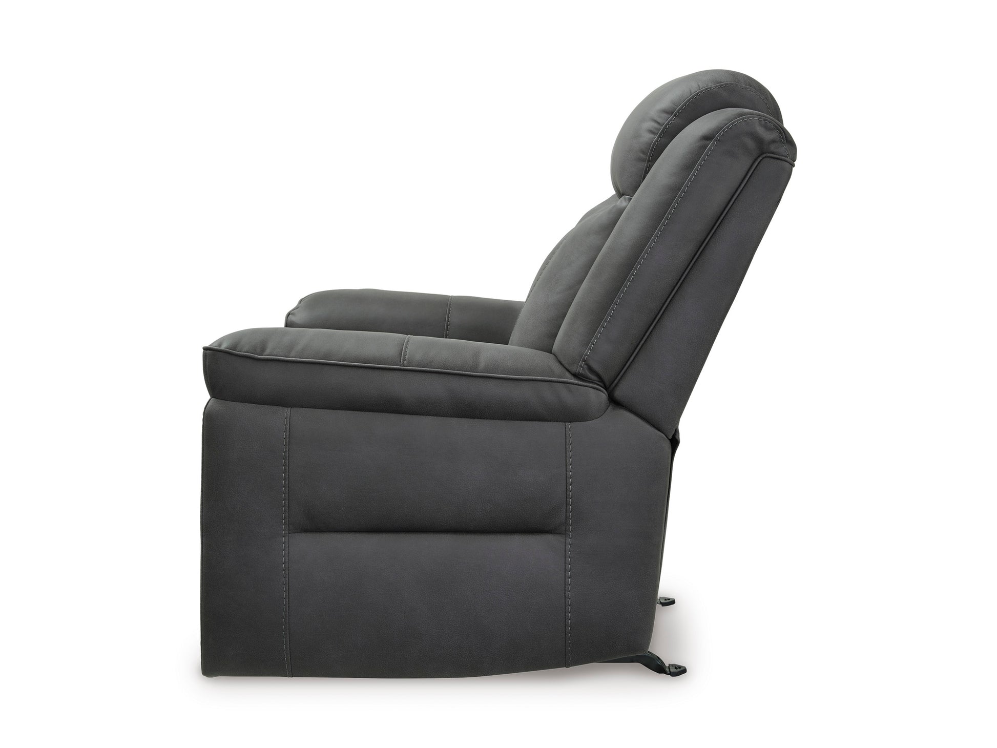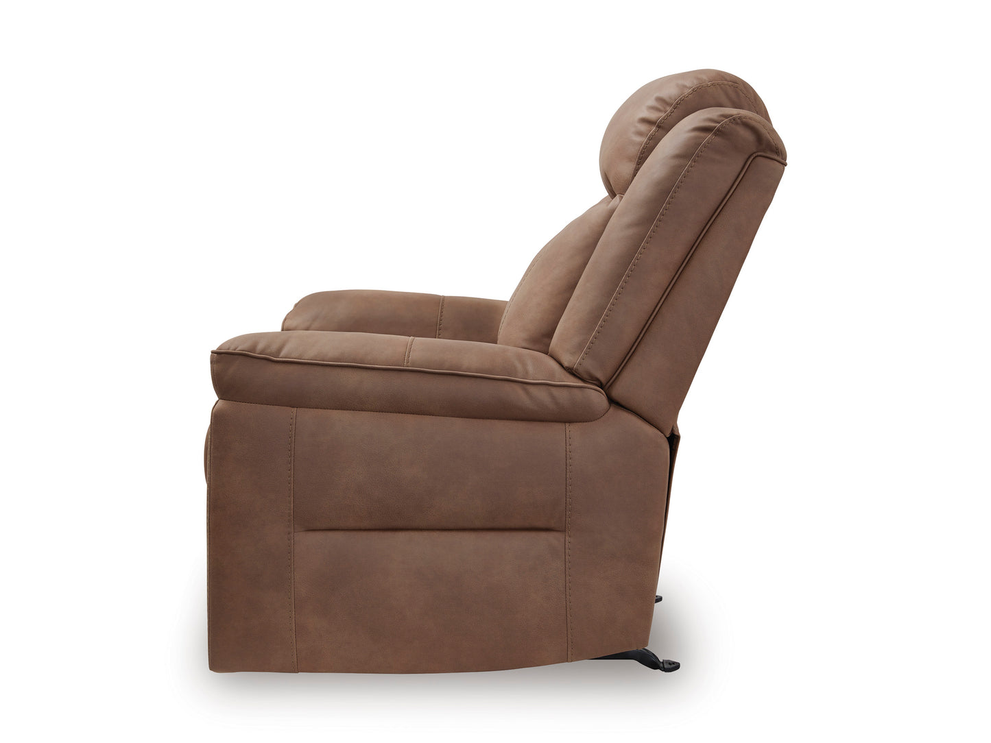 Indulge in larger-than-life style with this recliner. Intentionally crafted to provide extra support, its generously sized seat and high back invite you to sit back and settle in. When you’re ready to recline, a smooth one-pull motion puts you in the comfort zone. And your luxurious lounging experience is made complete with soft faux leather in a richly neutral contemporary hue.