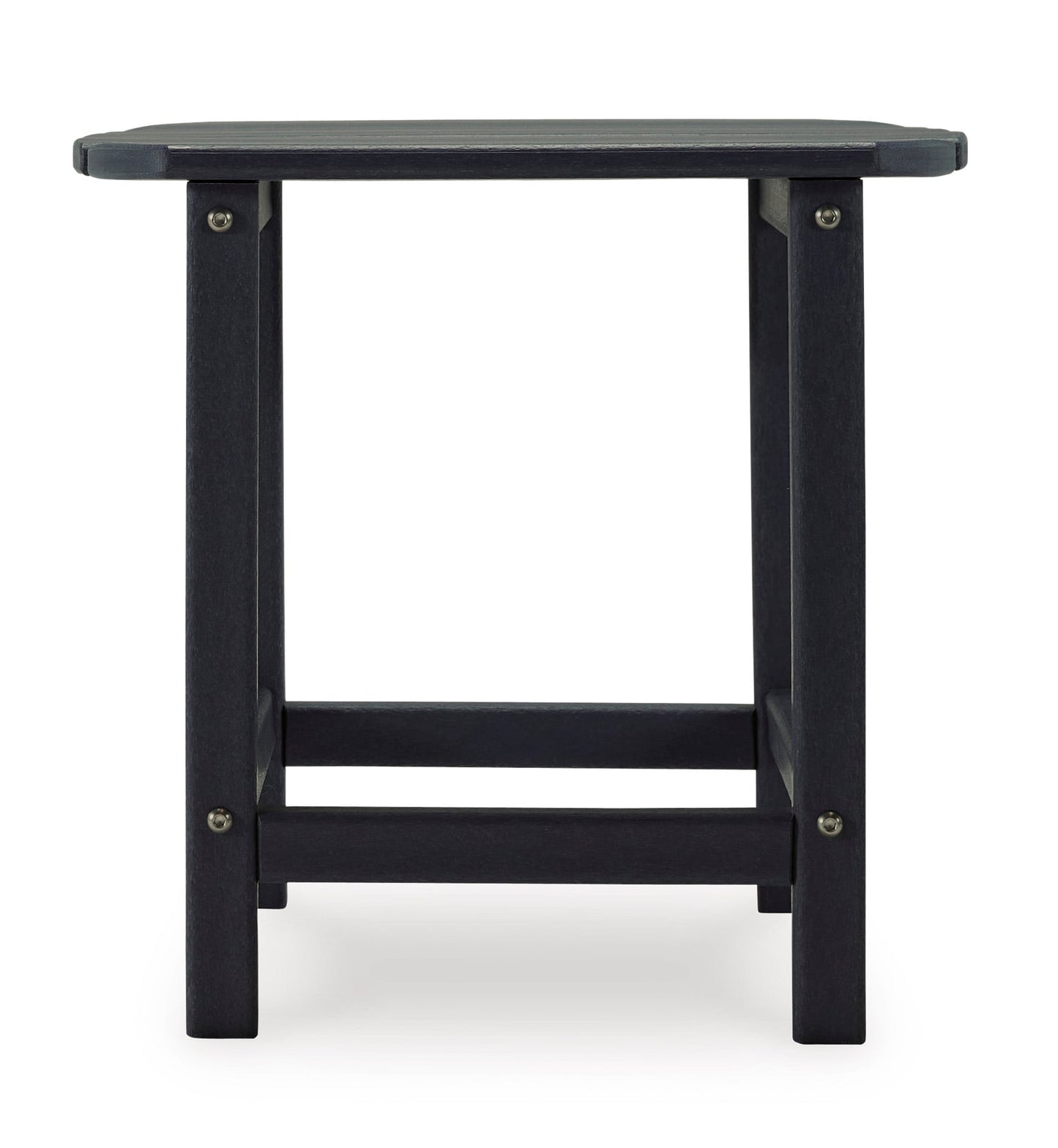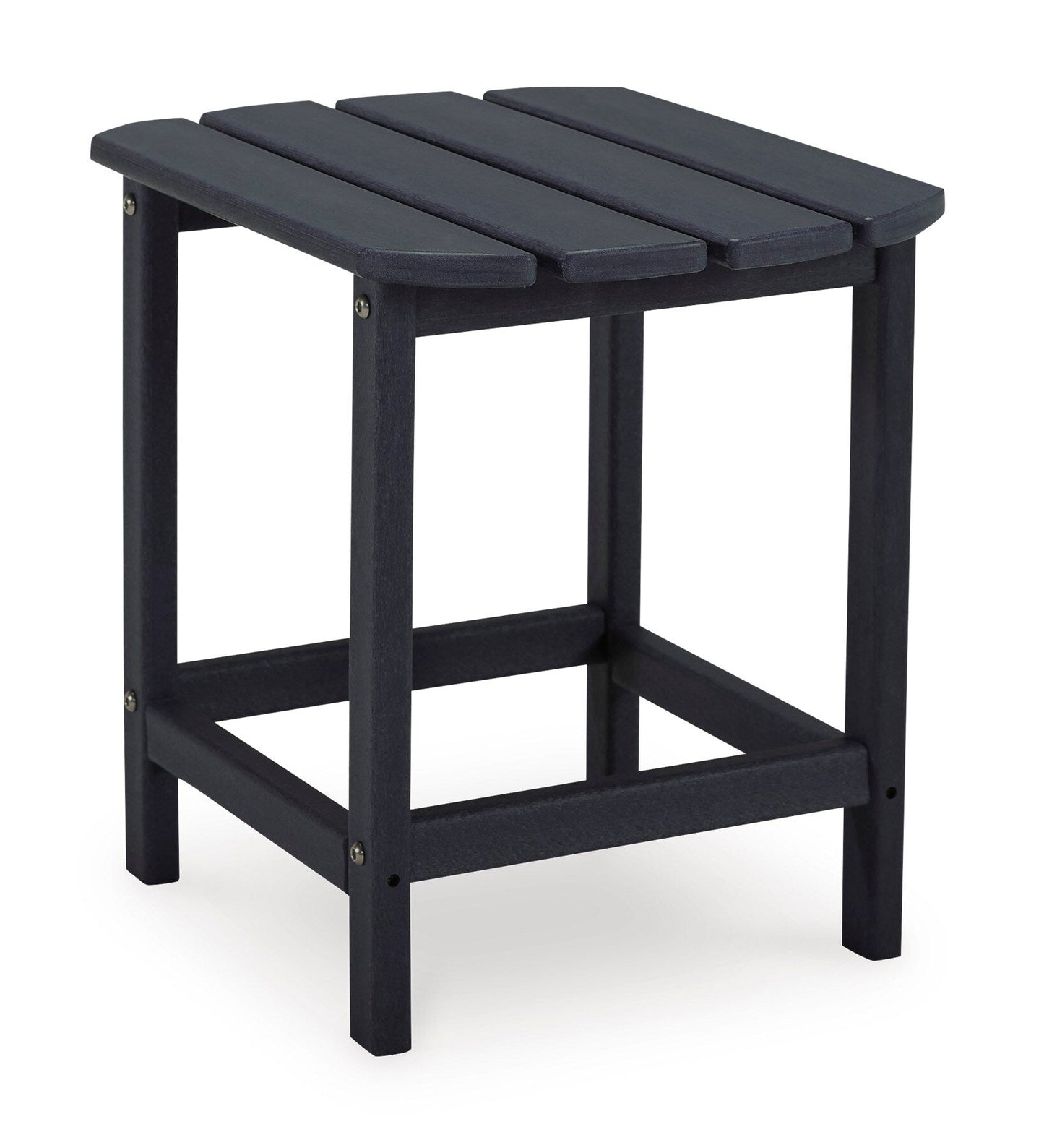 Add cottage-quaint charm to your outdoor oasis with the Sundown Treasure outdoor end table in black. Made of MEGA TUFF™ high-density polyethylene material, it’s sure to weather the seasons beautifully. Designed to shed rainwater, the table’s slatted top with gently rounded corners provides exceptional form and function.