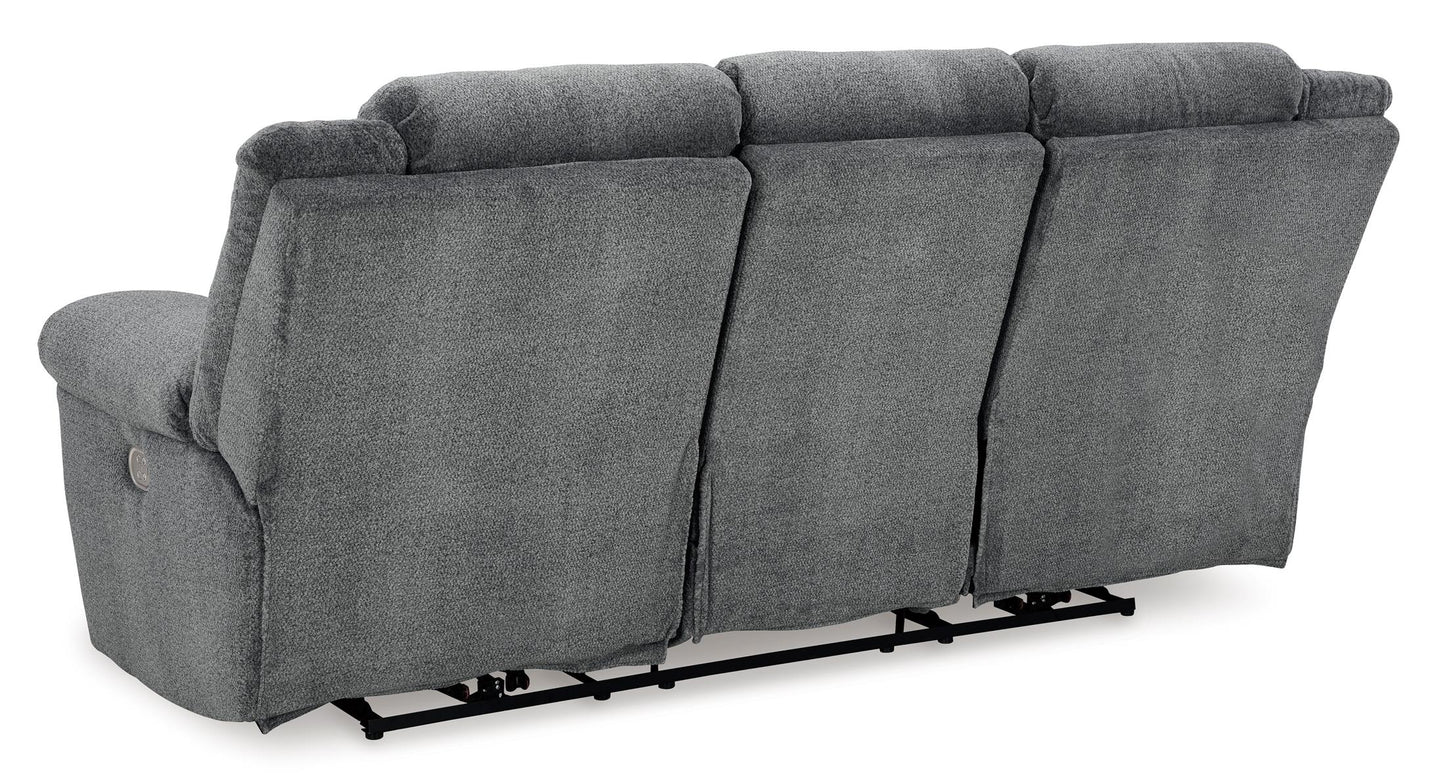 Big, bold comfort. Game time and movie nights meet their match with this power reclining sofa. Made for ultimate indulgence, an extra-deep seat encourages you to sit back and bliss out. Customize the recliner and headrest to find your ideal viewing position with effortless one-touch controls. And with plush upholstery in a trendy hue, you won’t need to sacrifice style for cozy seating.