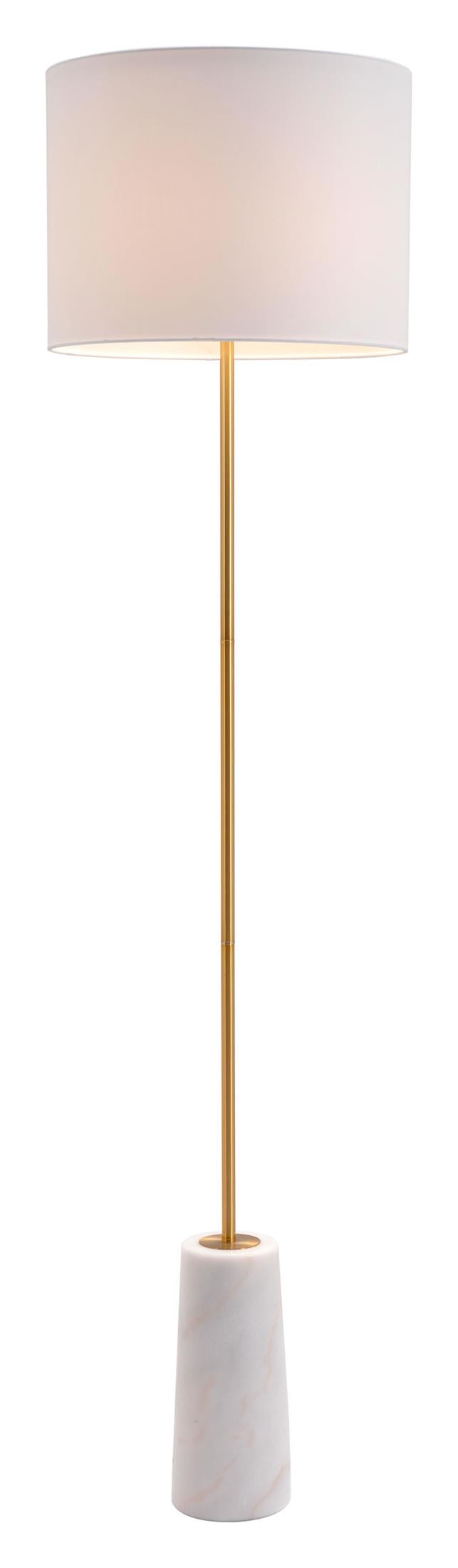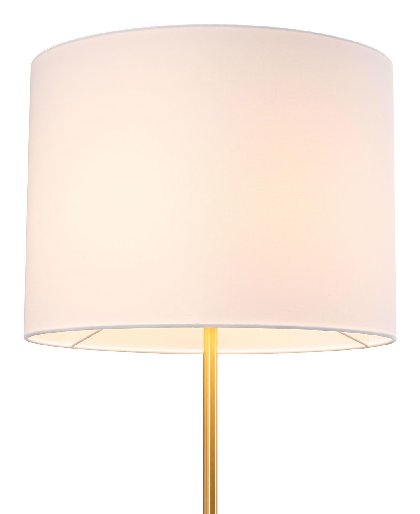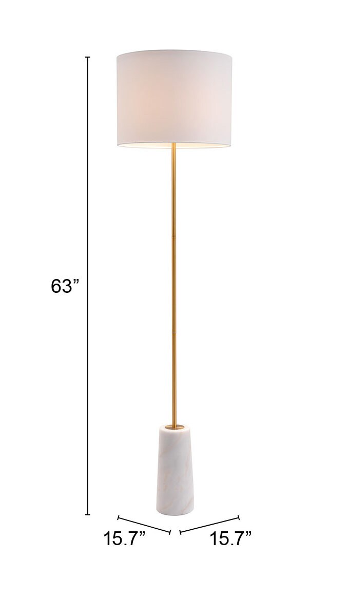 The Titan Floor Lamp has a marble base, steel frame, and a polyester covered shade. This lamp makes a statement in any style of space, glam, modern, or Boho Chic.