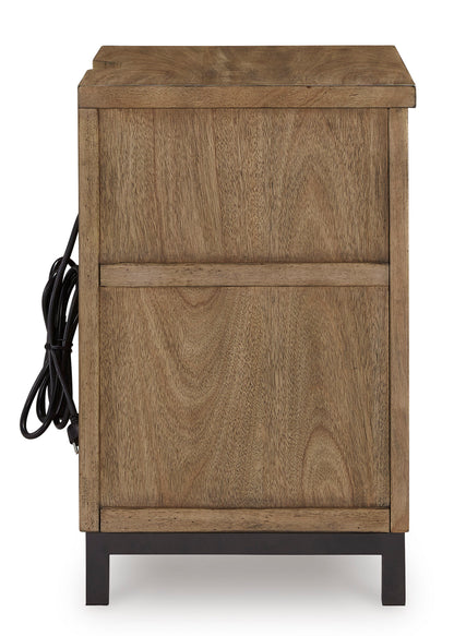Sleek in its simplicity, this nightstand takes a relaxed approach to refinement. Its mixed-material design brings a trendy urban-chic feel to your bedtime routines, while functional features keep your bedroom clutter-free. Clothes and linens are easily tucked away in the smooth-gliding drawers.
