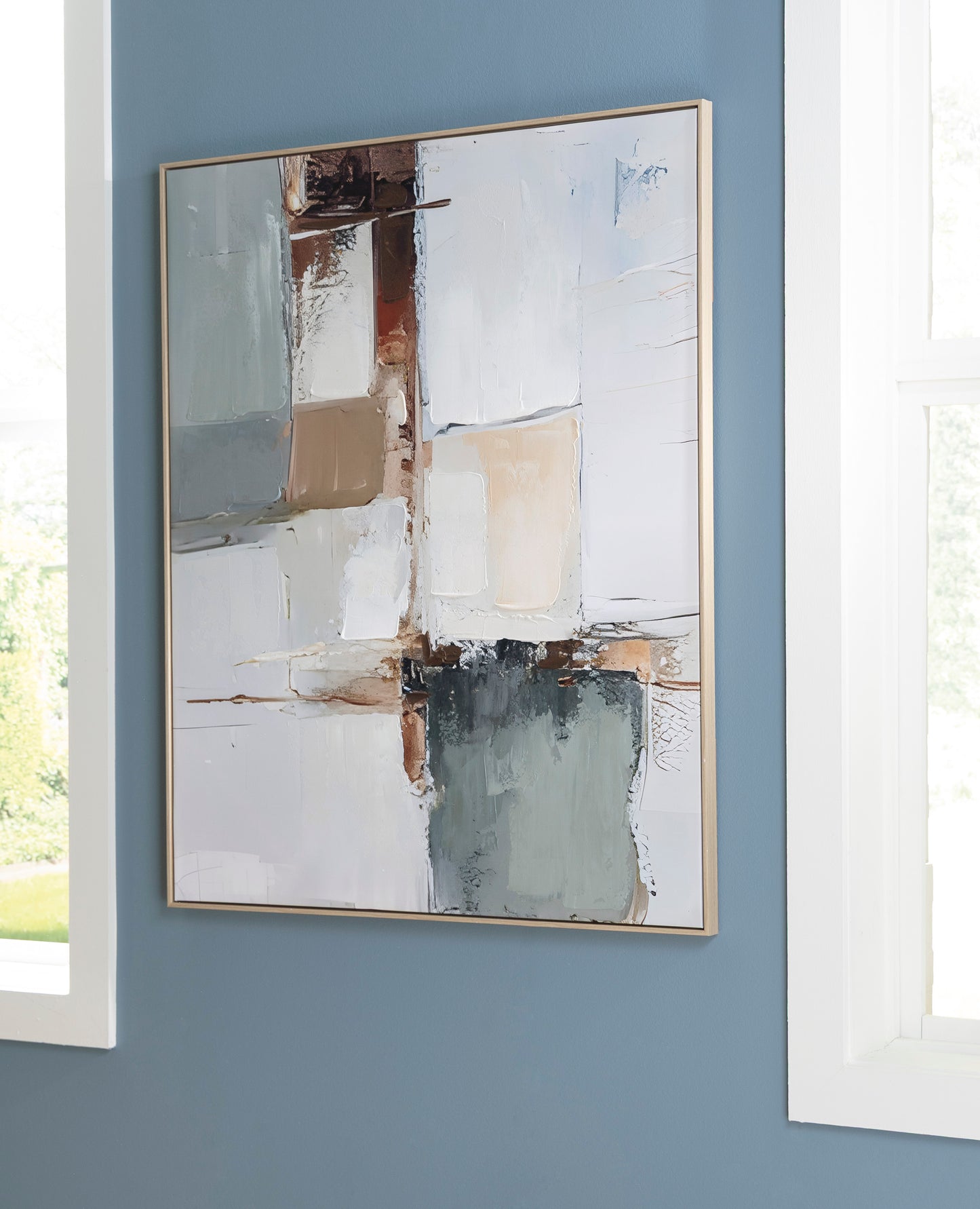 Muted tones make a big visual impact in this wall art. Exuding a contemporary sensibility, its abstract design brings dynamic visual interest to your decor while remaining subtle in style.