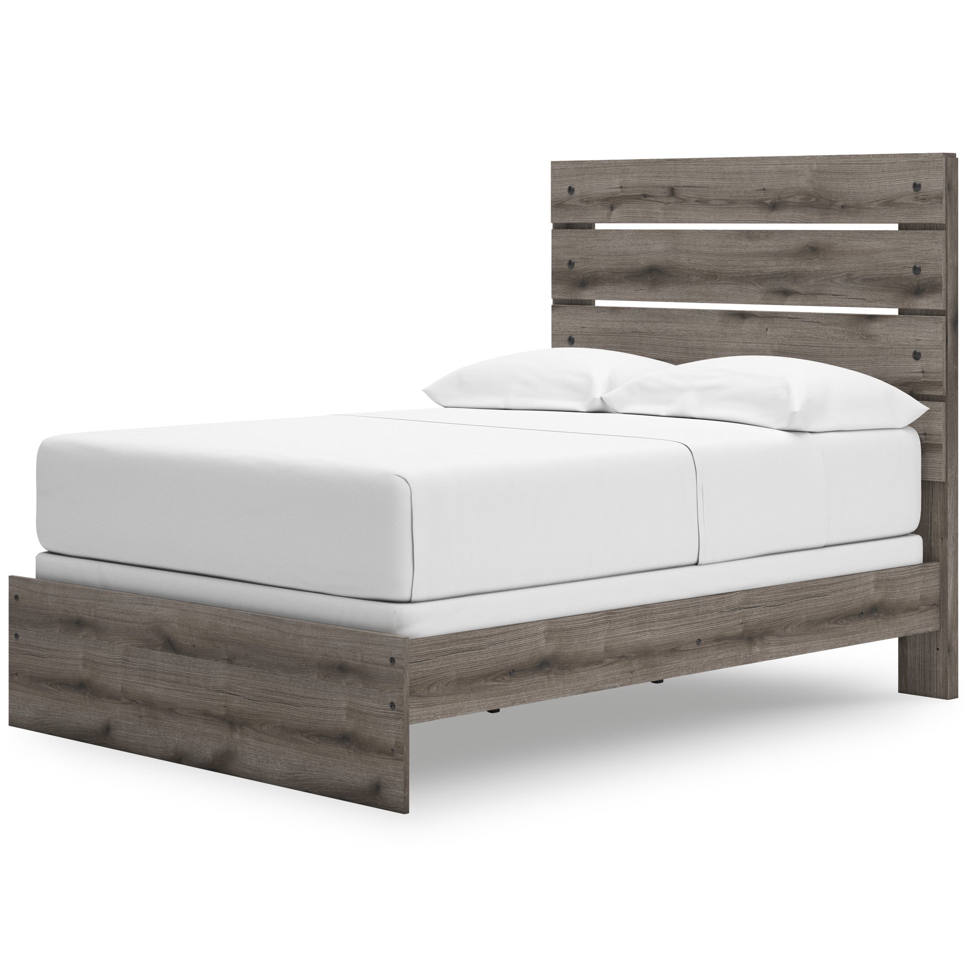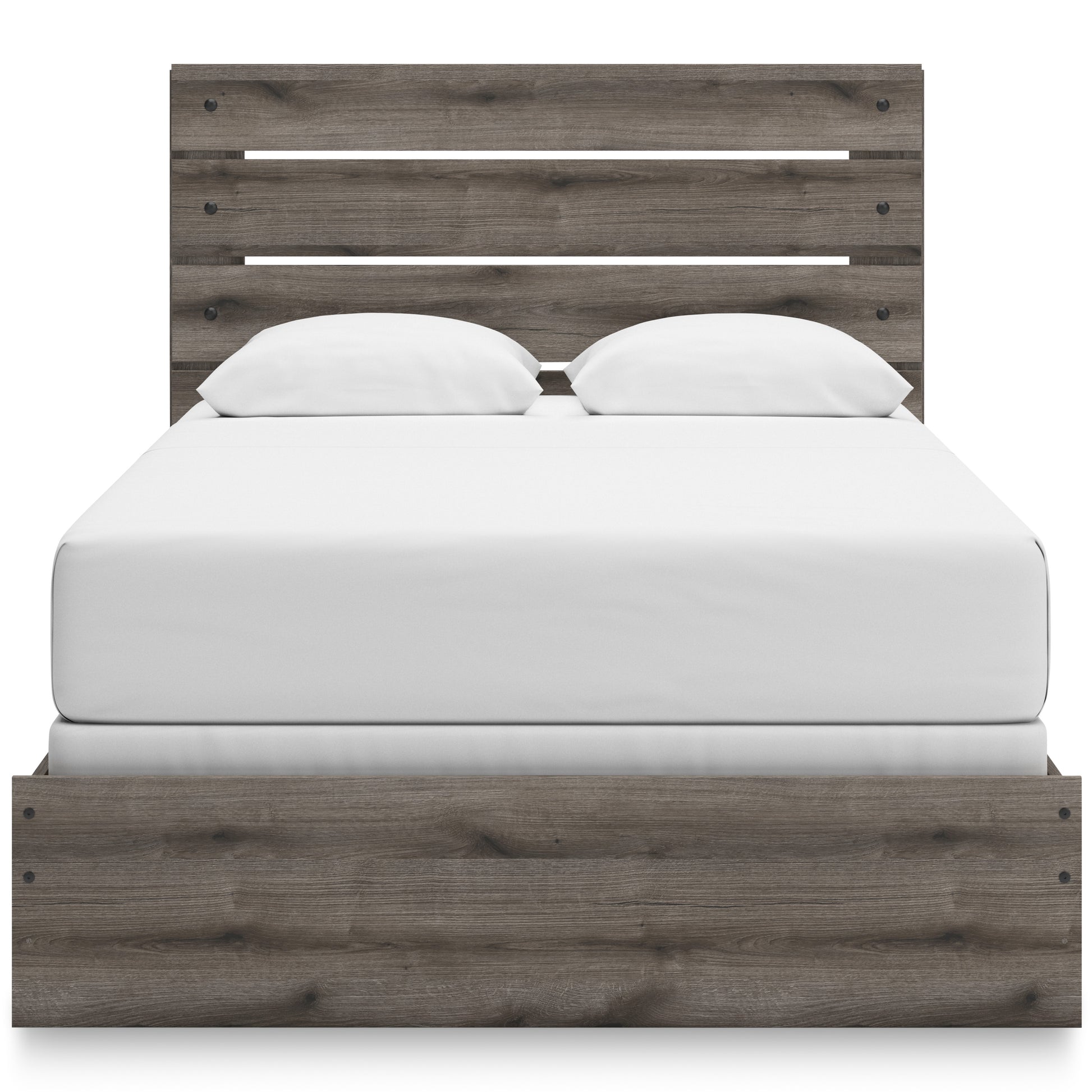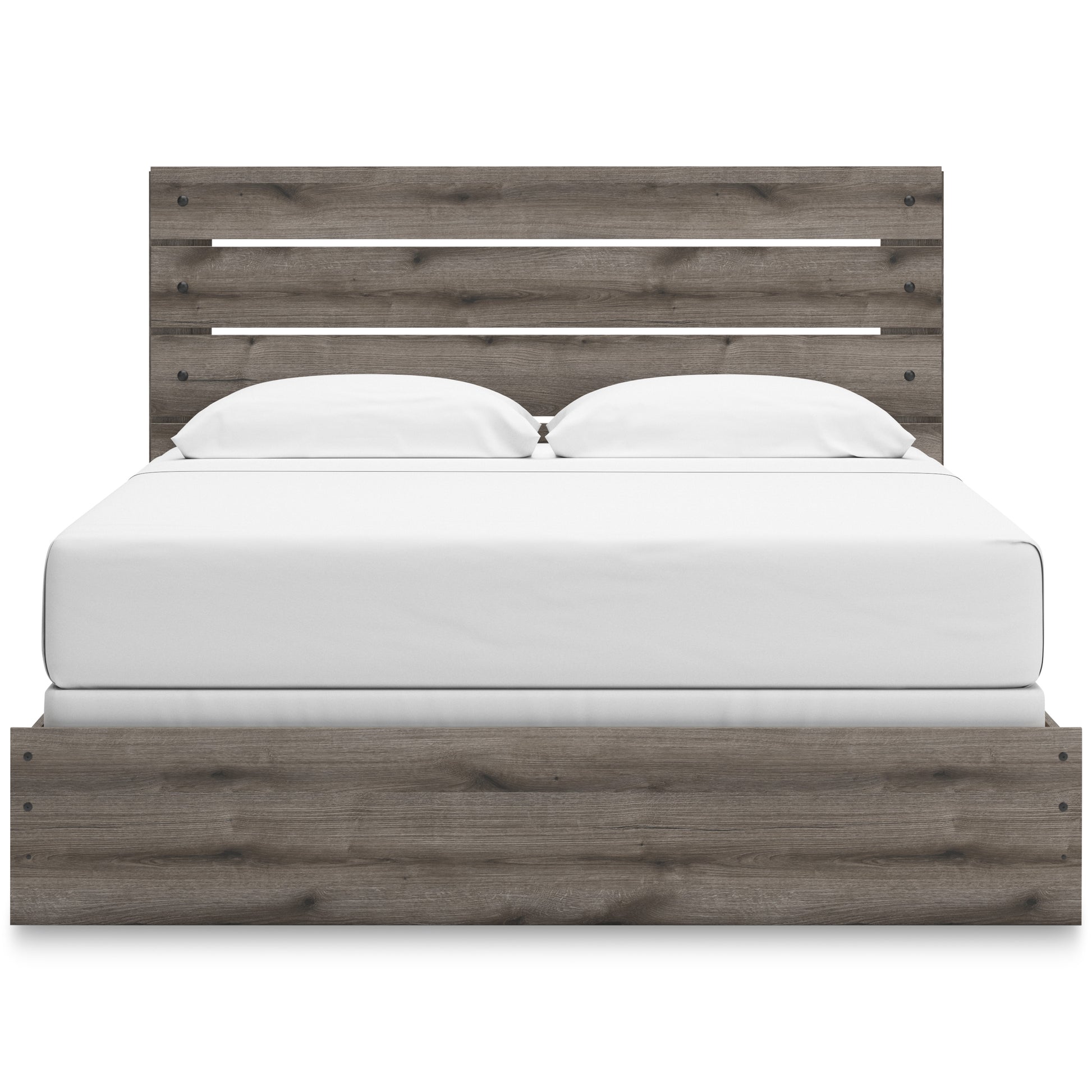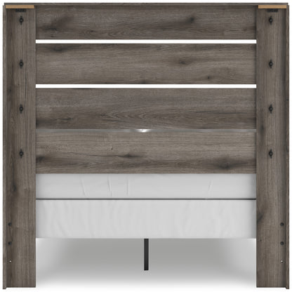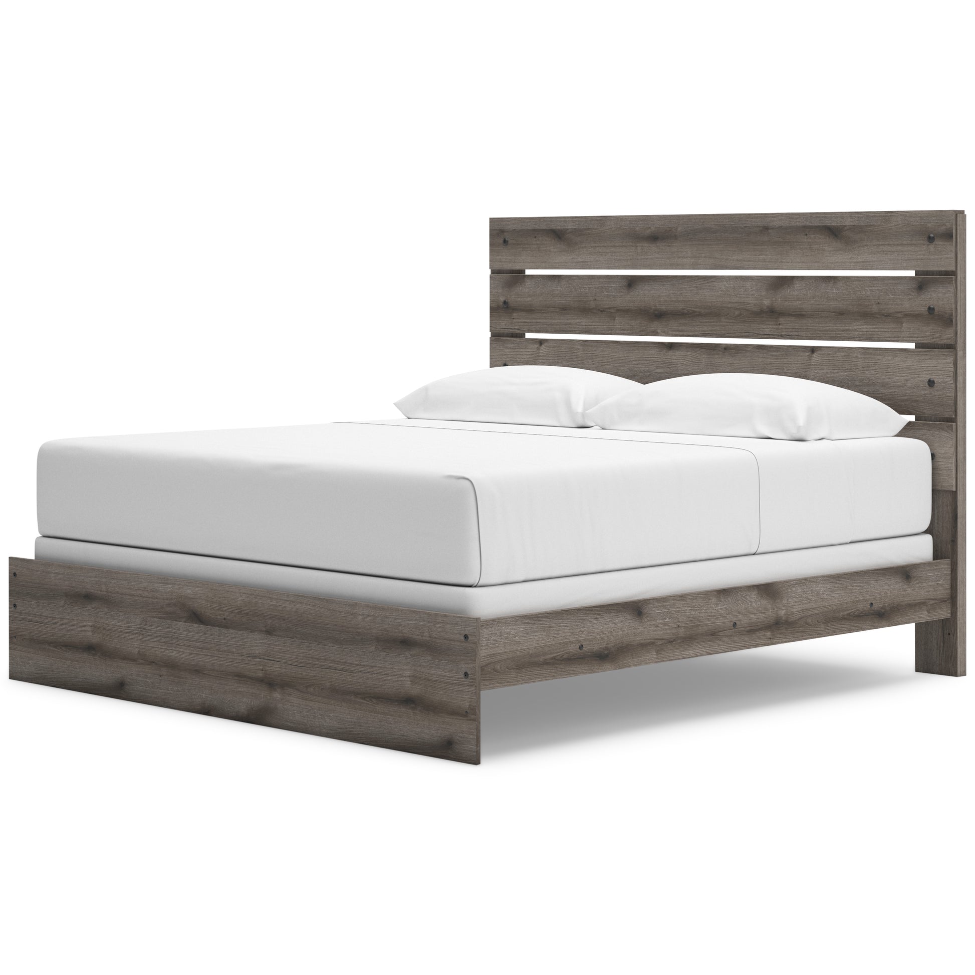 Combining a casual aesthetic with functional flair, this panel bed suits styles from rustic to industrial. The headboard's slatted panel design has an easygoing character that's sure to please. Dressed in a chic weathered gray hue, it brings a charmingly curated vibe to bedtime.