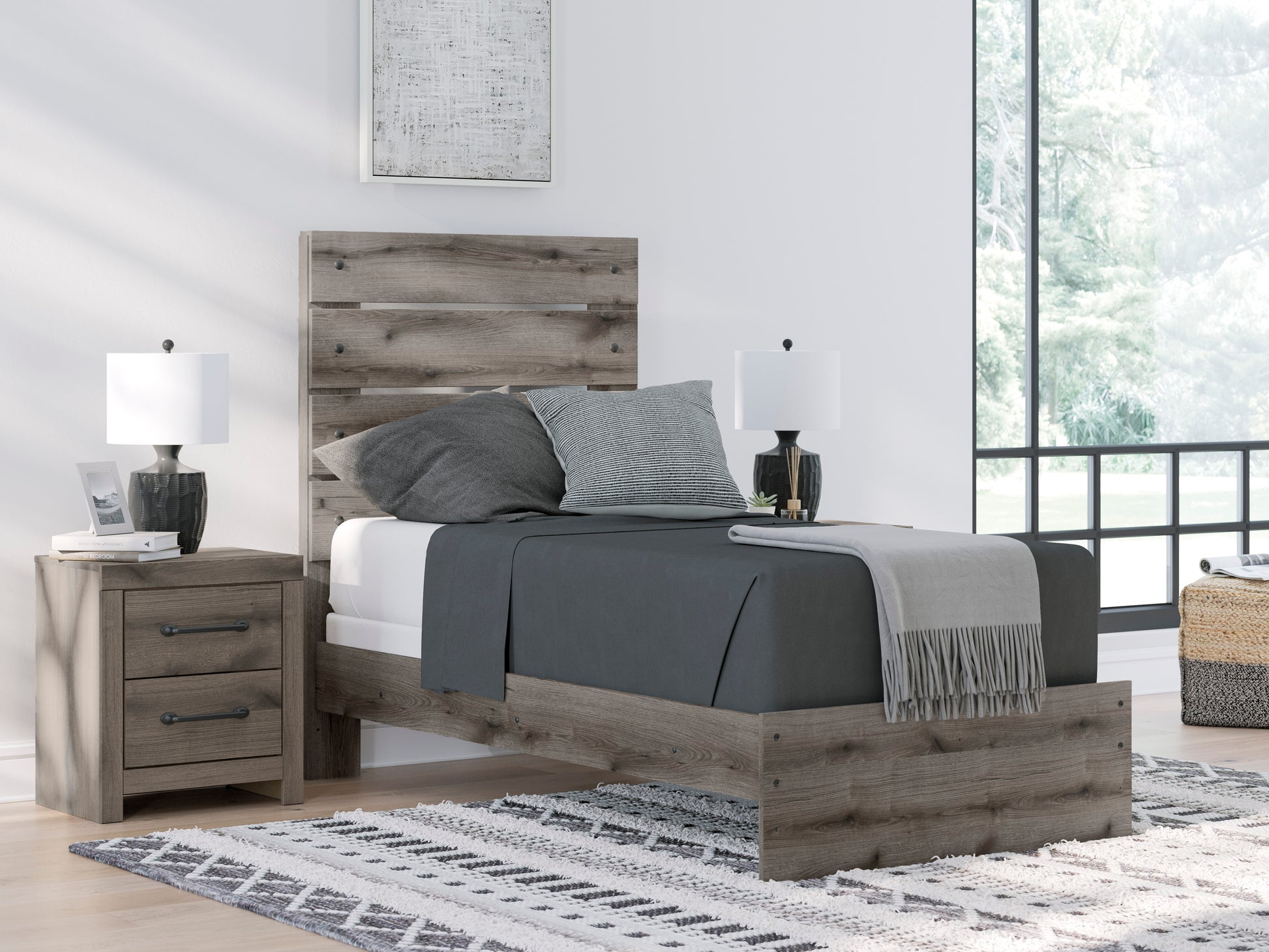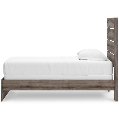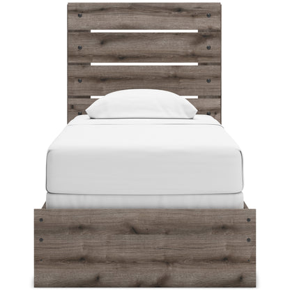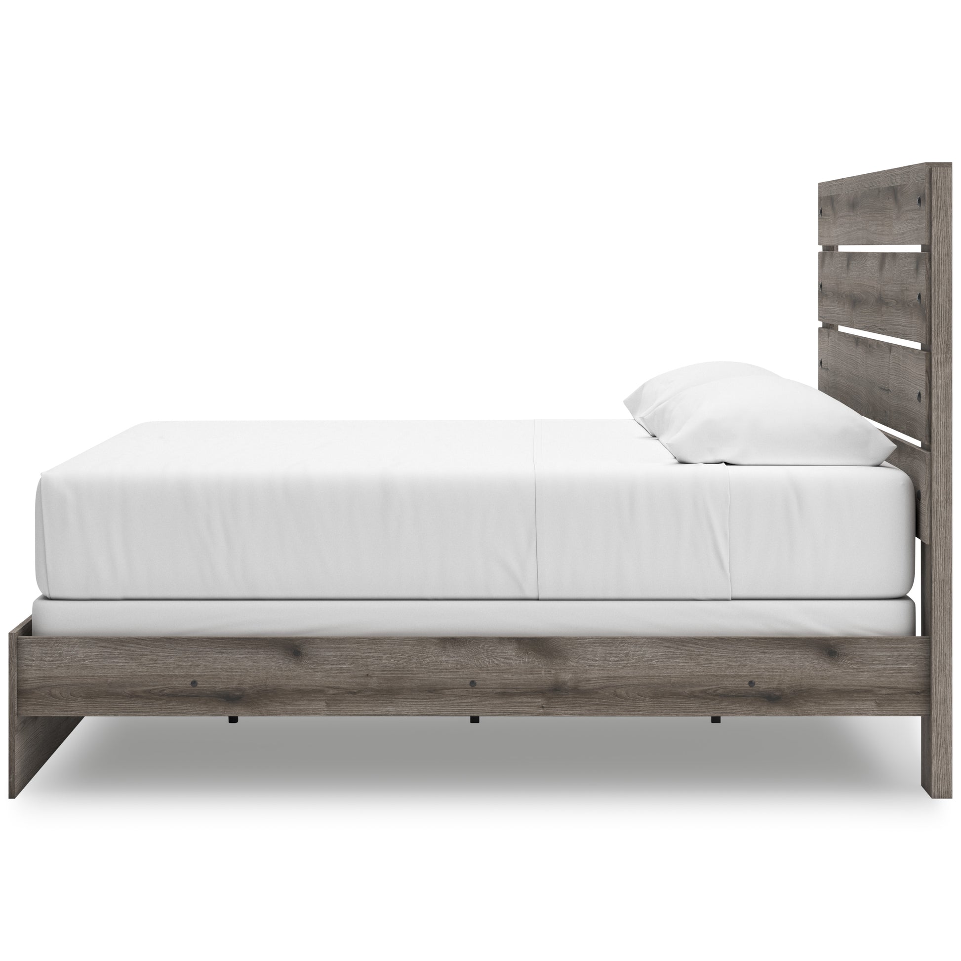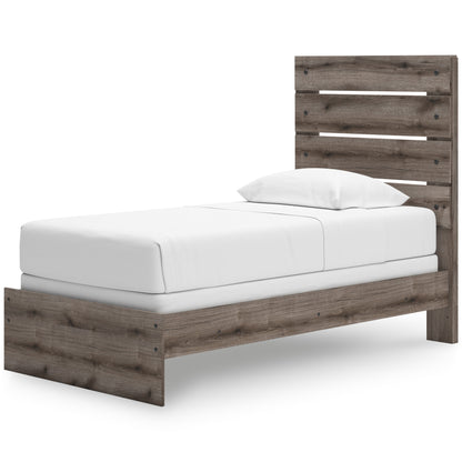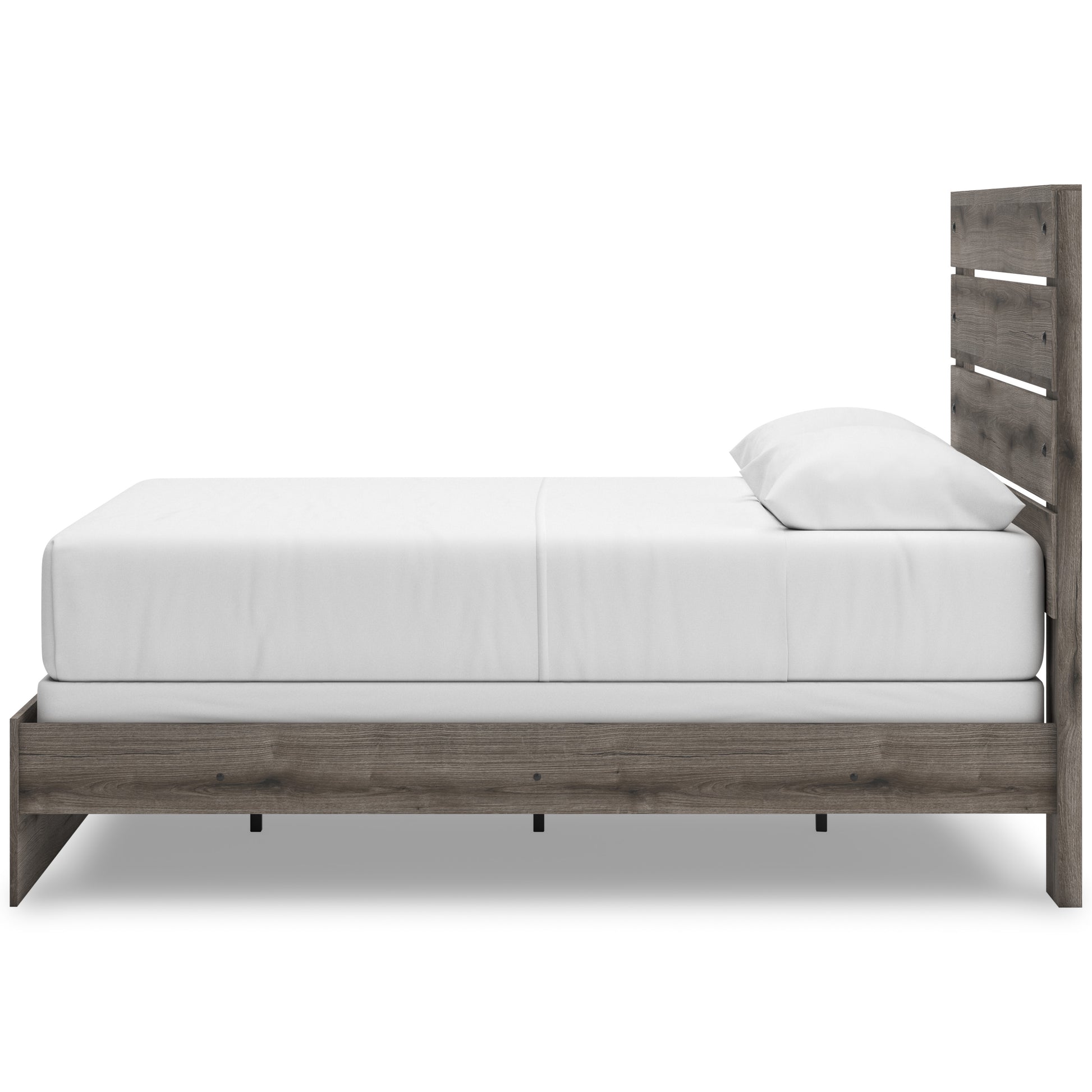 Combining a casual aesthetic with functional flair, this panel bed suits styles from rustic to industrial. The headboard's slatted panel design has an easygoing character that's sure to please. Dressed in a chic weathered gray hue, it brings a charmingly curated vibe to bedtime.