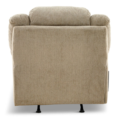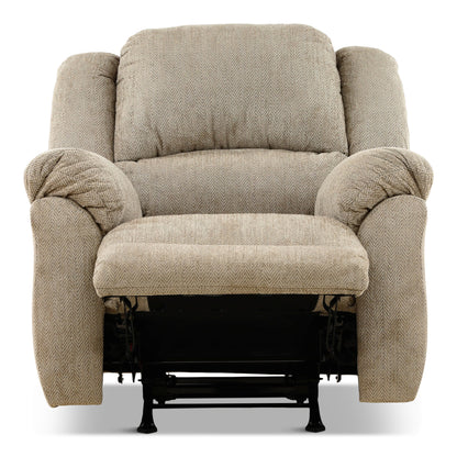 Kick back and relax in style in the Venture rocker recliner. It features plush, pad over chaise seating, solid foam arm pads and is covered in 100% polyester, making it extremely easy to keep clean. The casual contemporary styling of this rocker recliner makes it a versatile chair to go with any design style, or any space where comfortable extra seating may be needed.