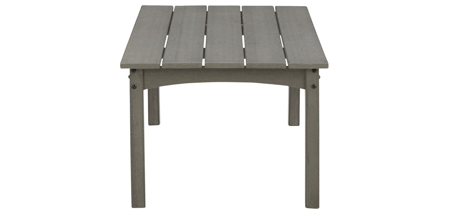 It’s the dawn of a new day for gray. Embrace the style trend with this outdoor coffee table. Crafted of HDPE material that combines the exceptional durability and weather resistance you need with the “wood look” you love, this rectangular outdoor coffee table takes al fresco living to a whole new level. Slatted top infuses a plank-style, farmhouse-inspired touch that naturally sheds rainwater.