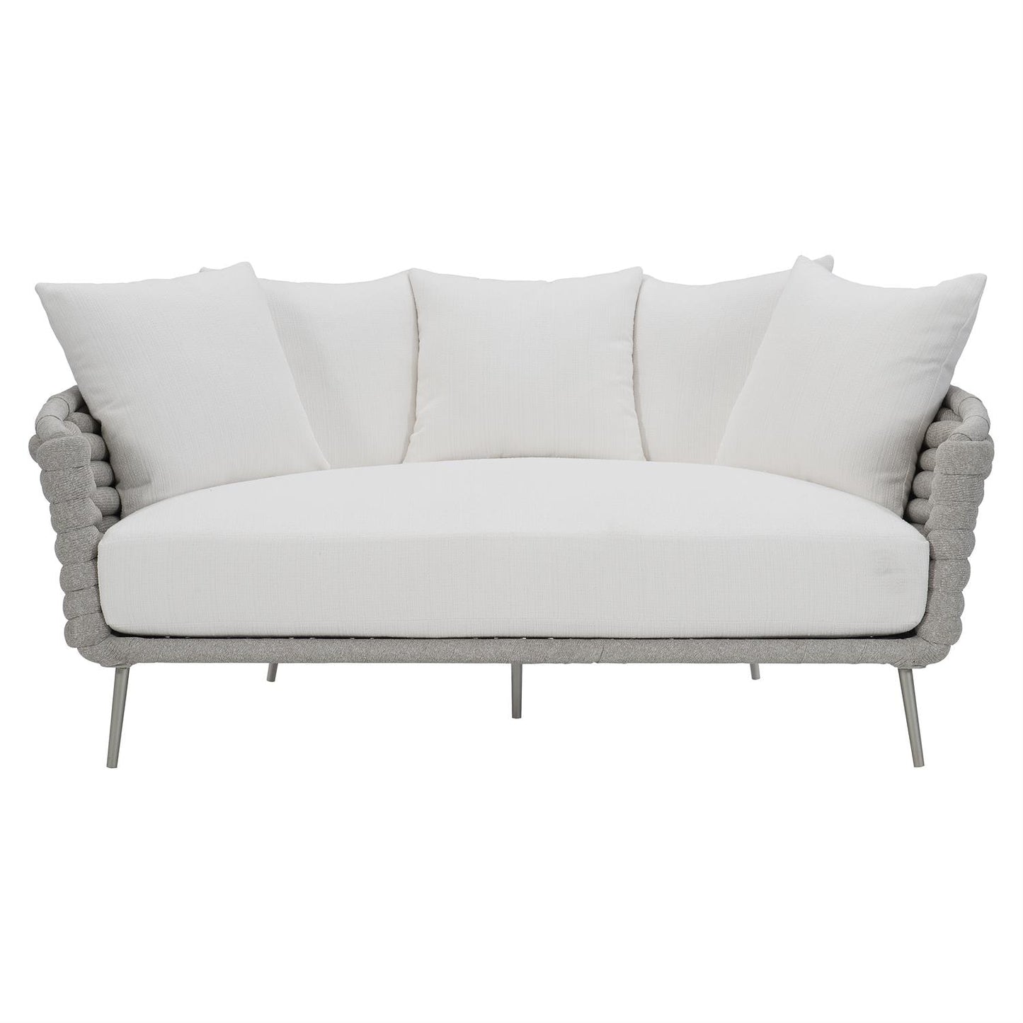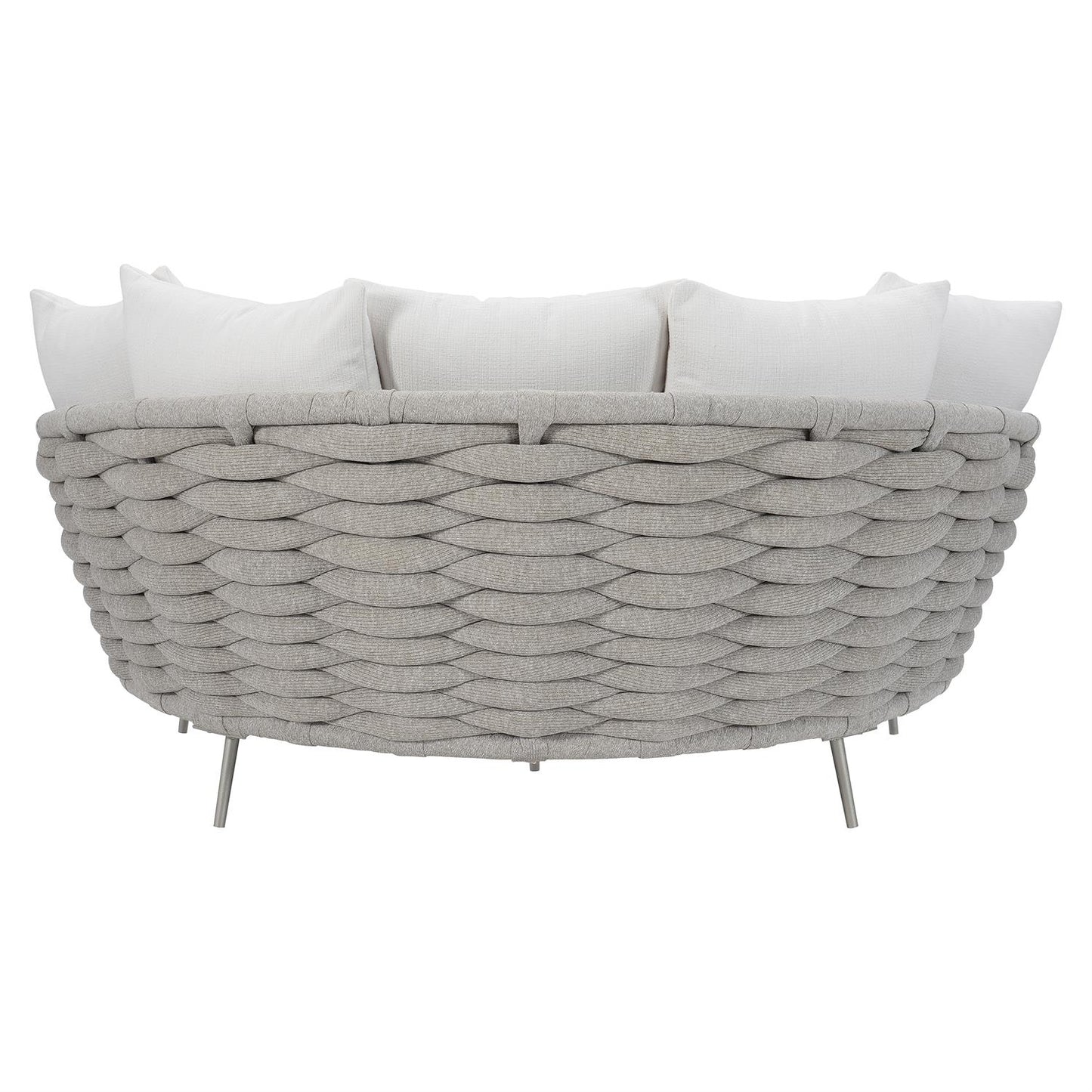 The Wailea daybed is a perfect example of the marriage of style and comfort. A soft-knit woven rope undulates between a powder coated aluminum frame creating an unexpected texture.