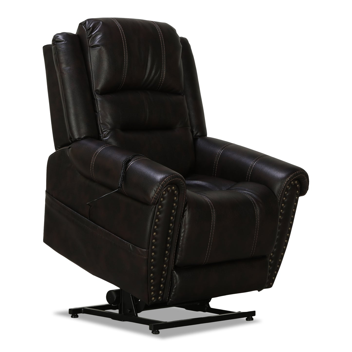 With powerful comfort and a timeless silhouette, the Walsh collection from Flexsteel® brings elegance and traditional style to your home. Power reclining options with independent headrest, lumbar, and leg rest control, and the helpful power-lift option make the Walsh collection your go-to for relaxation and independence. Treat yourself to the delightful style of rich and supple upholstery, large nail head trim, and supportive heavy-thread stitching. From end-of-the-day stress relief to extra-long weekend naps, the Walsh collection has your back. The Walsh brown fabric power lift recliner with power headrest wraps pairs lifting and a supportive frame with elegance and style. With stylish nail head trim, an angular silhouette, and lifting, reclining, and headrest adjustments at the push of a button, your relaxation just got a whole lot better.