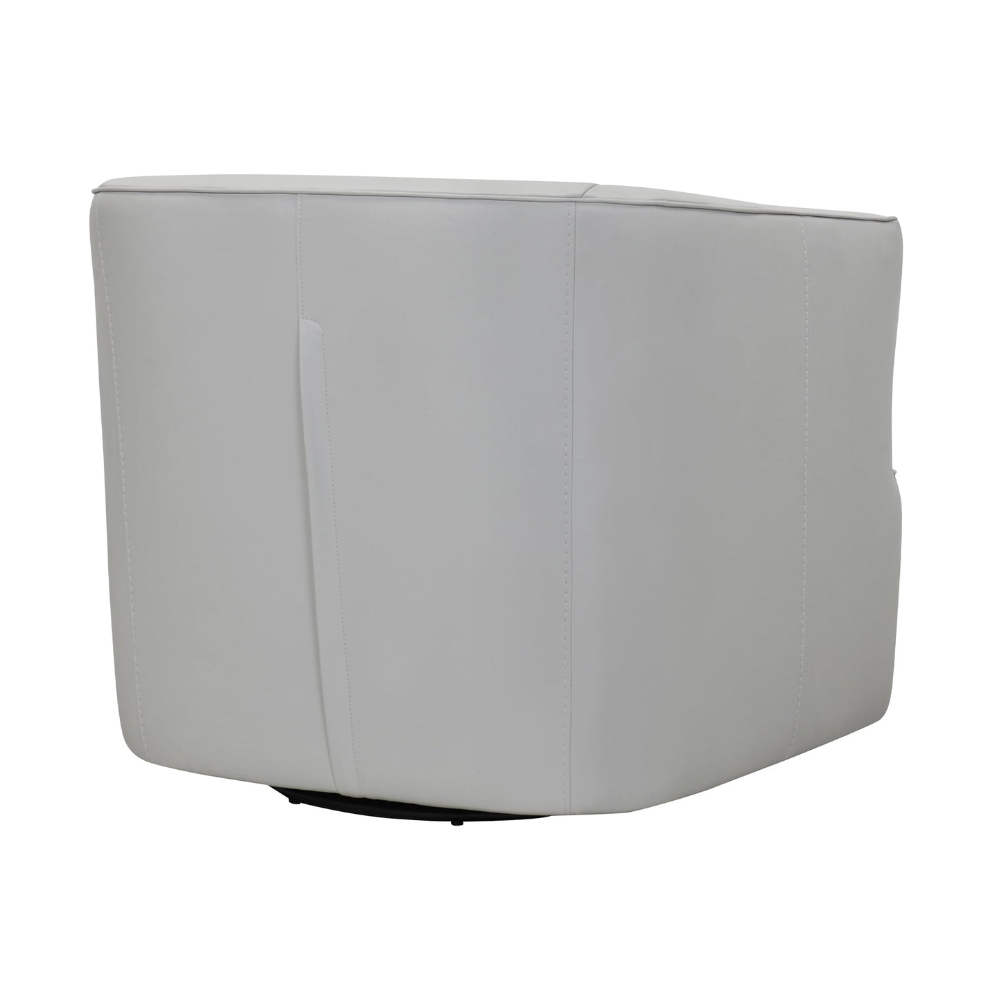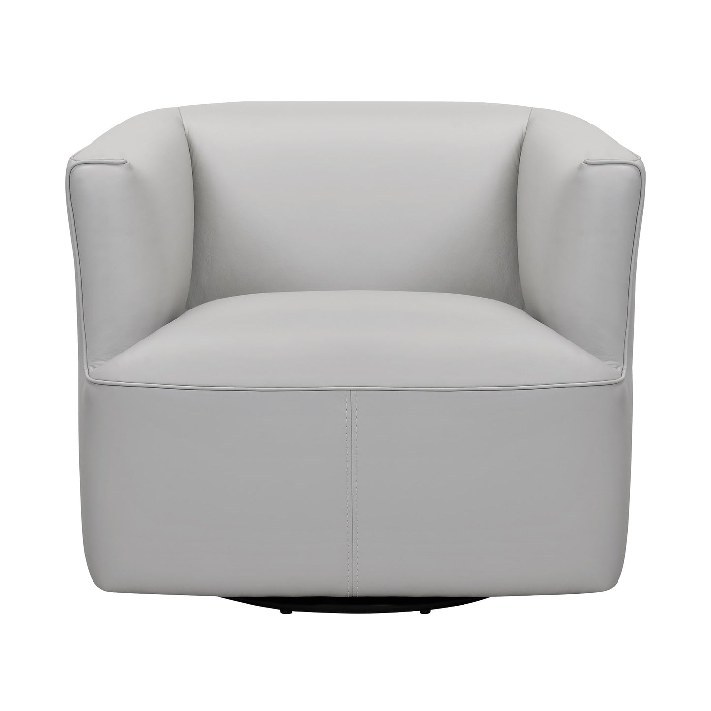 The Armen Living Whitney Contemporary 45-Degree Return Swivel Chair is a brilliant addition to any modern household. The Whitney Swivel Chair is upholstered by hand in ultra-soft, sleek, durable 100% genuine leather. Featuring a rounded back and spacious seat, its metal swivel mechanism base allows you to turn and glide swivel function. The ultra-comfortable foam-padded cushion will make you never want to leave your seat again, leaving you in a constant state of relaxation. This beautiful living room chair also features a sturdy hardwood frame that assures dependability and will give you years of enjoyment. Utilize the Whitney in your living room, bedroom, or home office