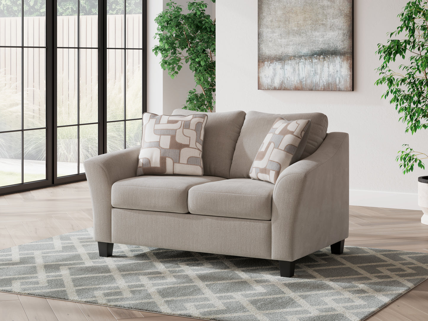 Subtle in color, big on style possibilities. This loveseat is a transitional take on everyday comfort. Its soft-to-the-touch upholstery keeps you cozy as you lounge, and the neutral hue is a perfect canvas for adding your own fashionable flair. Tidying up after kids or pets? It's easy to clean under and between the removable cushions.