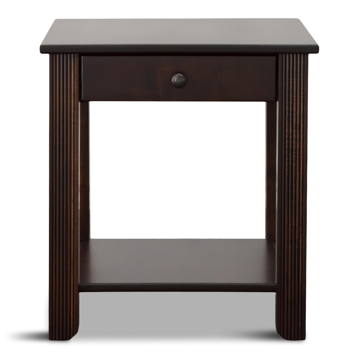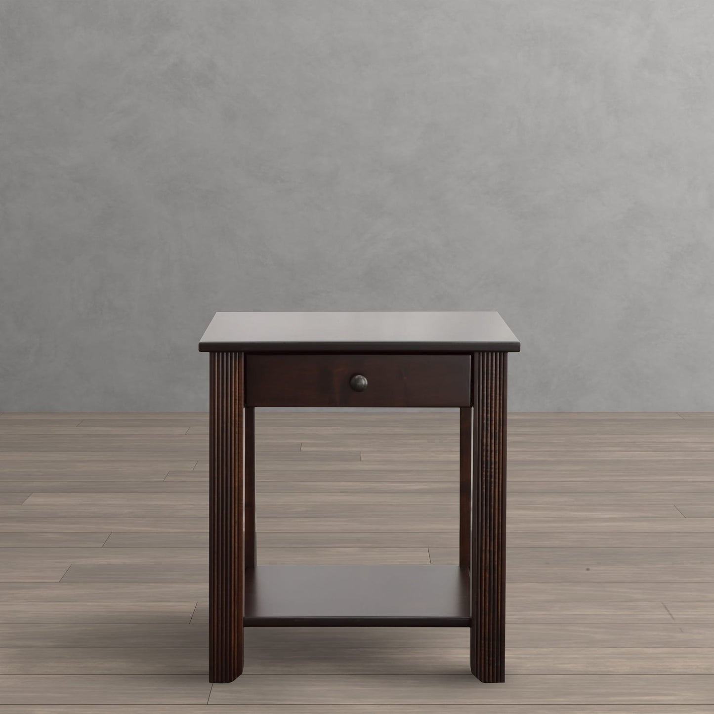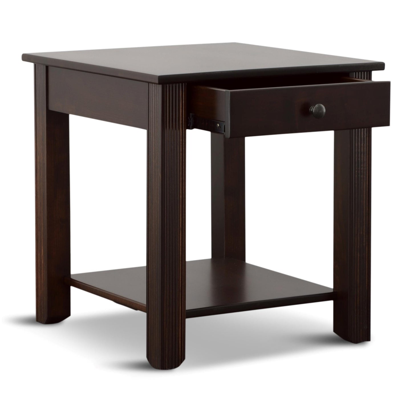 A tobacco finish looks so good on the Windham end table. This table's design is sure to elevate the aesthetic of any room it is in. A fixed shelf provides display space for your favorite whatnots, while a drawer helps keep essentials out of sight.