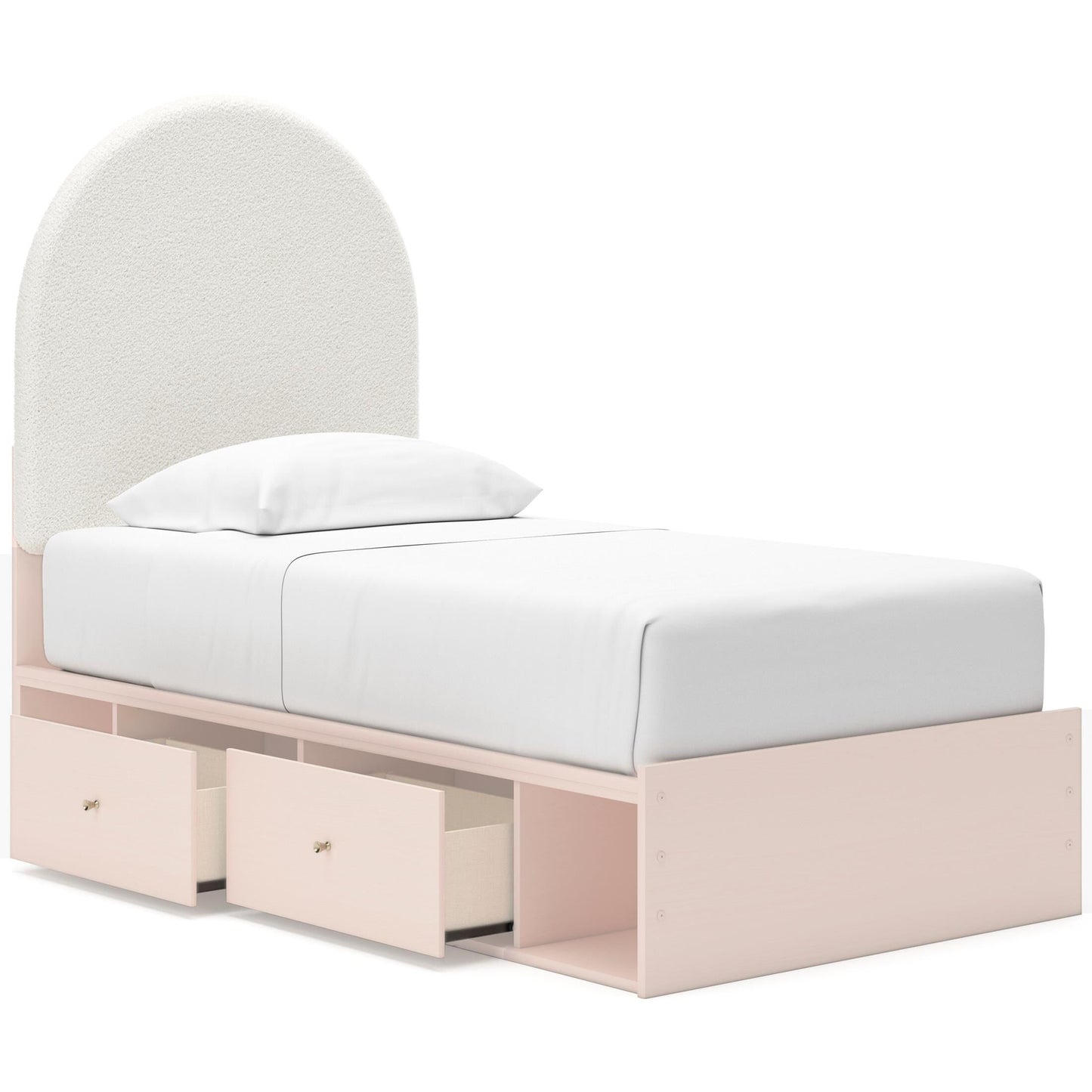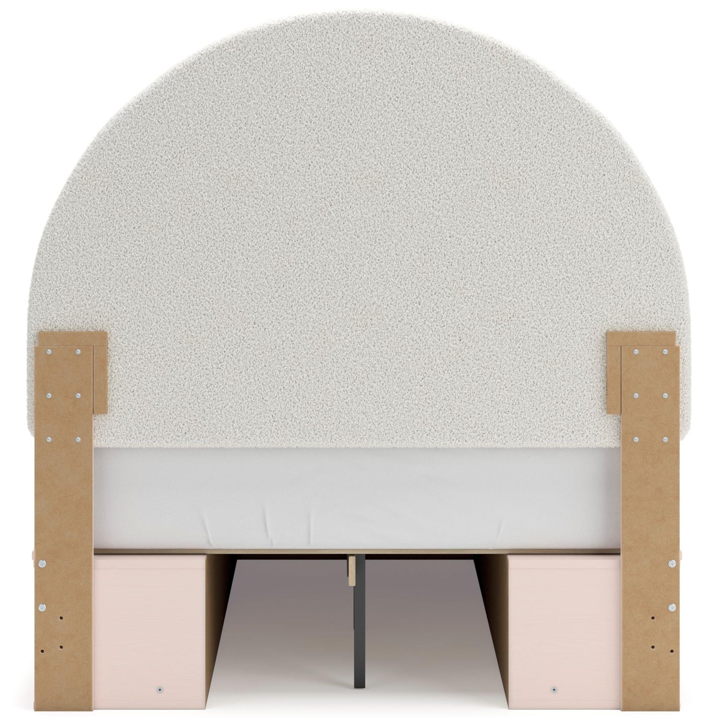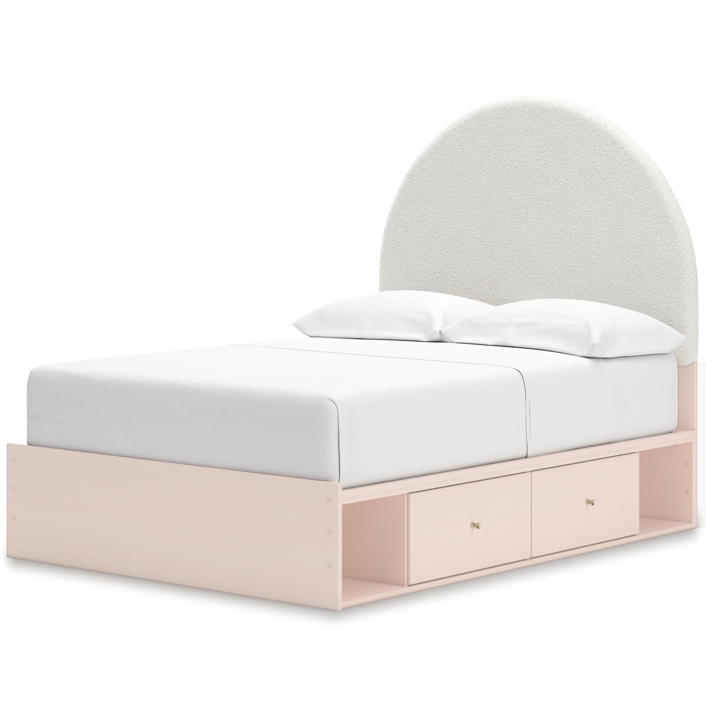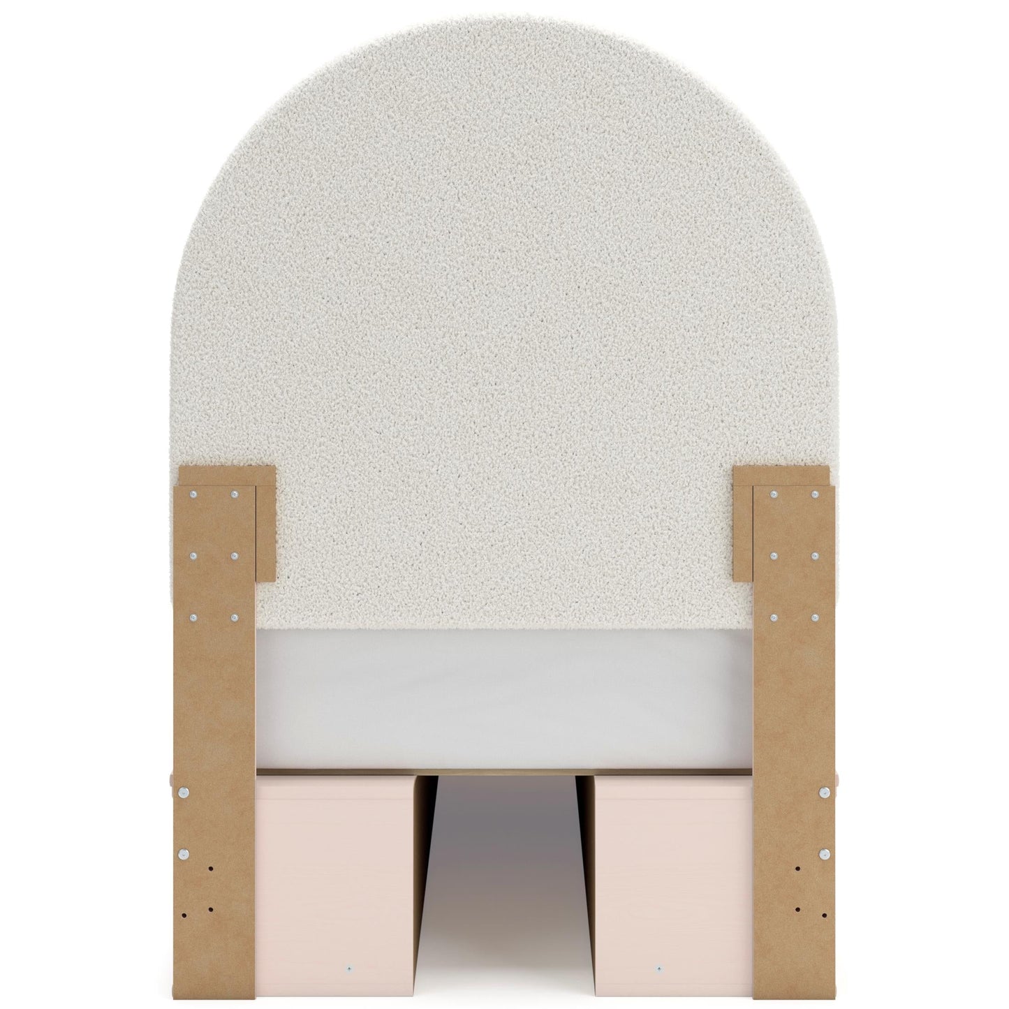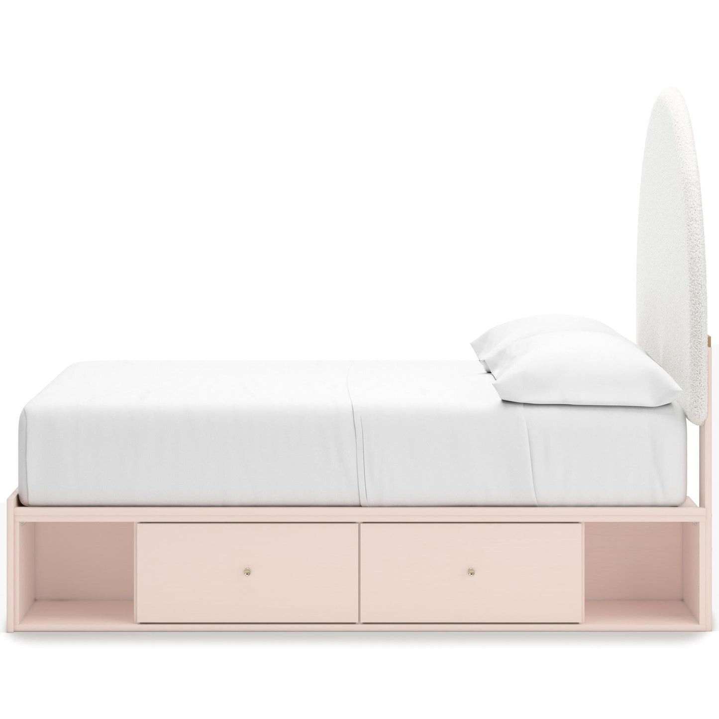 Pretty in pink. This full upholstered panel bed with storage keeps the spirit of your home’s modern aesthetic while suiting all your young one’s needs. Its cozy-cute upholstery and subtle blush finish bring a playful, charming vibe to bedtime. Made for her and styled for you, it’s a lovely addition to a beautifully chic child’s bedroom.