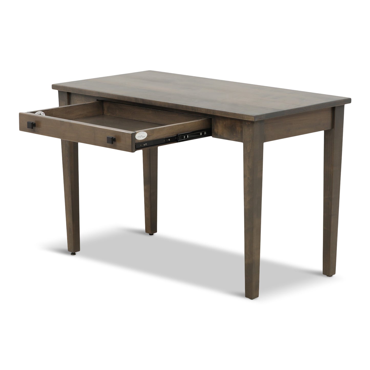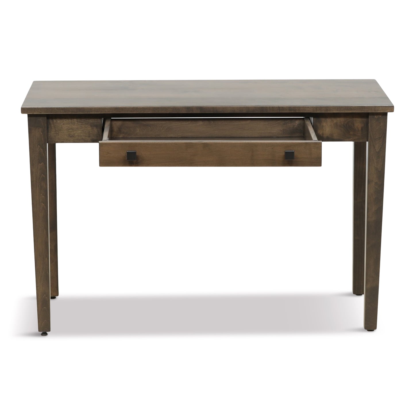 A brown maple finish looks so good on the Urban Shaker writing desk. This desk's design is sure to elevate the aesthetic of any room it is in. A drawer helps keep essentials out of sight.
