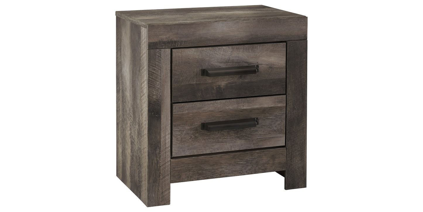 This nightstand is sure to win your heart with its daring designer take on modern rustic. The nightstand's crisp, clean and minimalist-chic profile is enriched with a striking replicated oak grain with thick plank styling and a weathered gray finish for that much more authentic character. Large-scale hooded pulls gracing the flush-mount drawers add such a distinctive twist. Dual USB charger is discreetly placed and mighty handy.