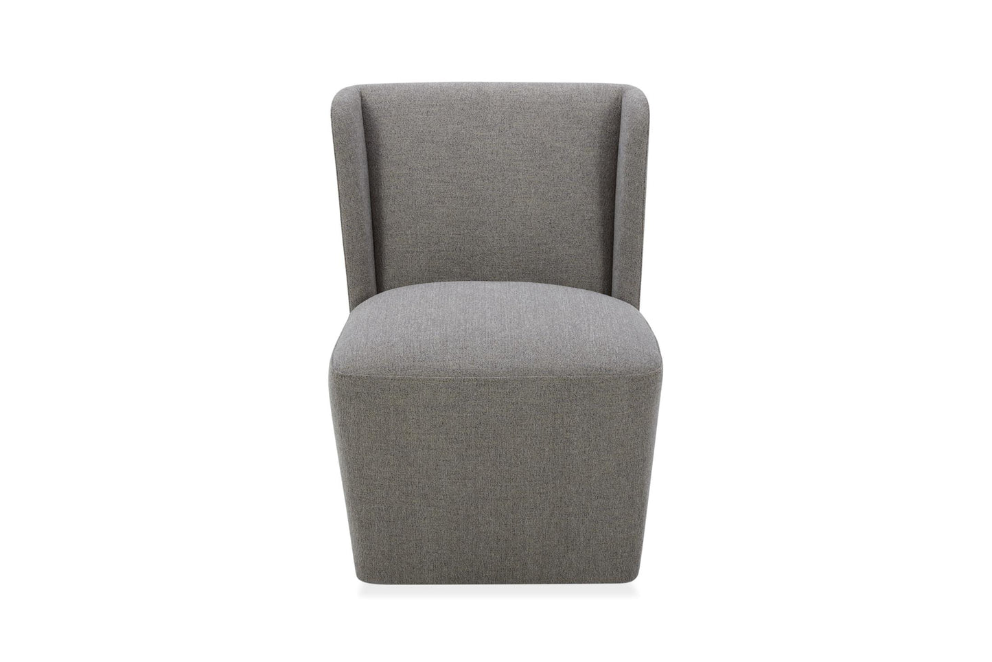 The Yoona Dining Chair features a skirt fully upholstered in a Crypton performance fabric. It features gentle, welcoming curves and caster wheels for easy arranging.